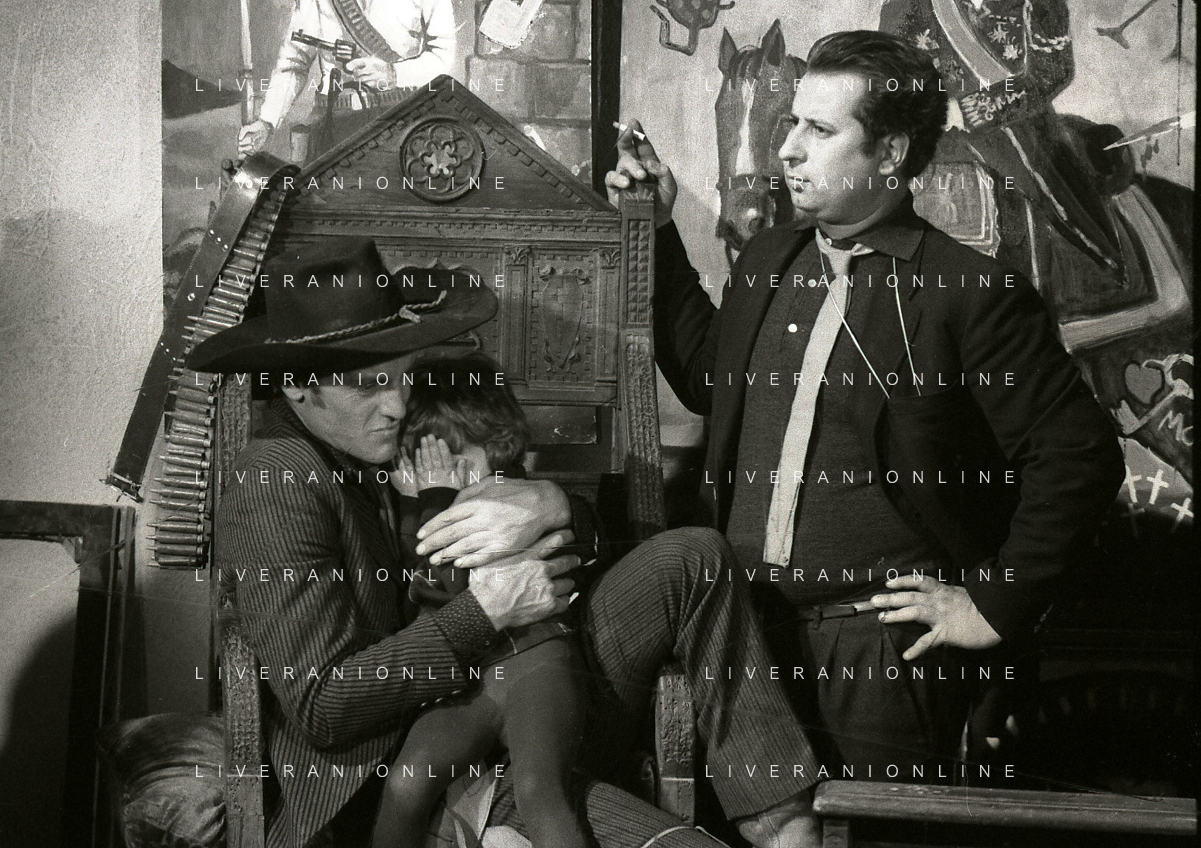 RETROSPETTIVA PHILIPPE LEROY ATTORE NELLA FOTO PHILIPPE LEROY CON LA FIGLIA SUL SET DEL FILM “YANKEE“ A ROMA NELL'ANNO 1967 CON IL REGISTA TINTO BRASS AG ALDO LIVERANI SAS