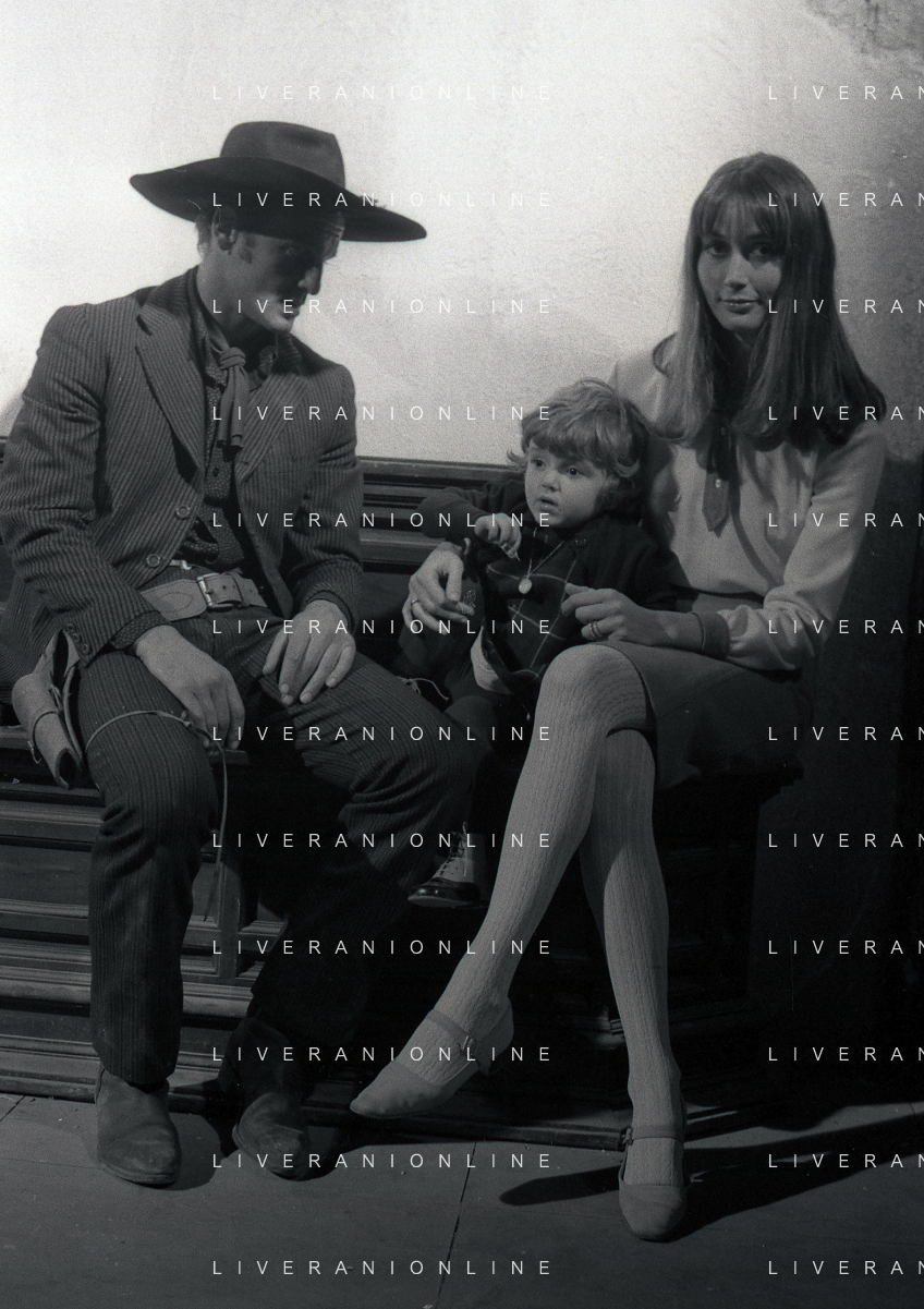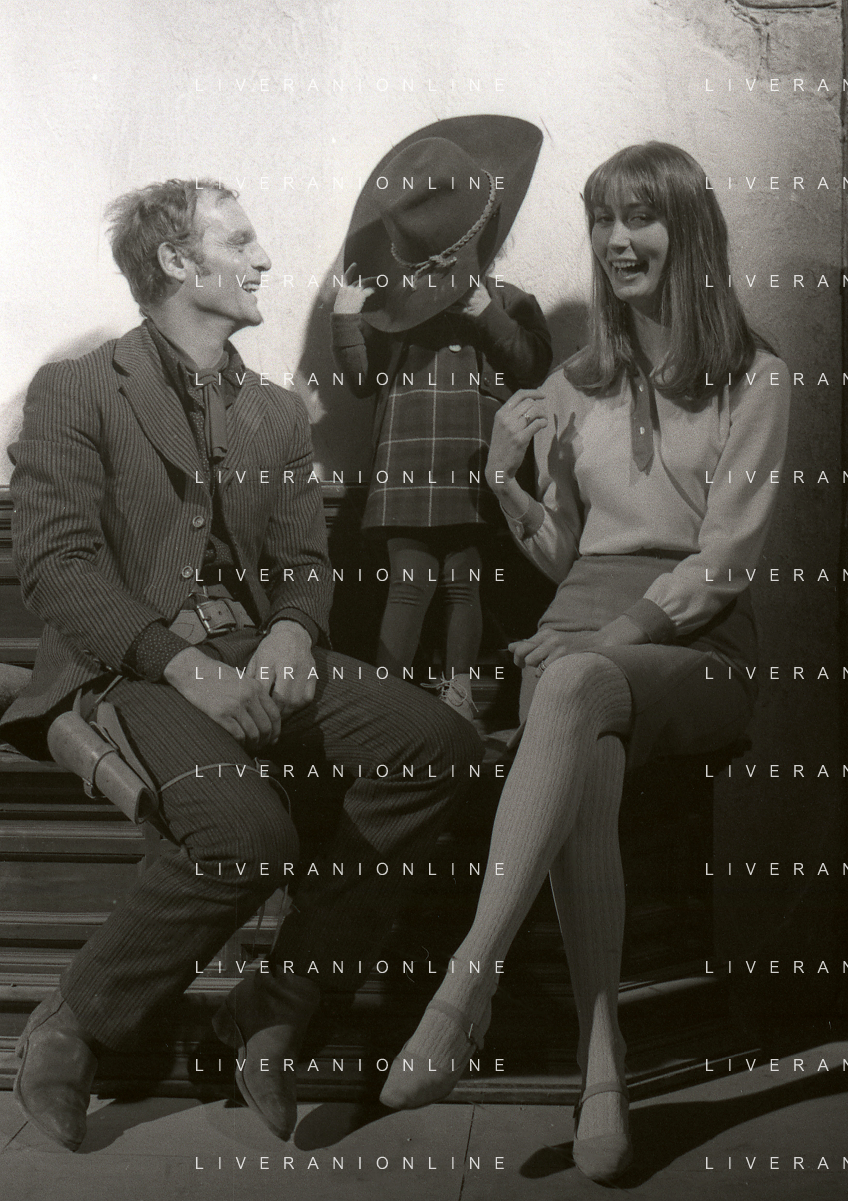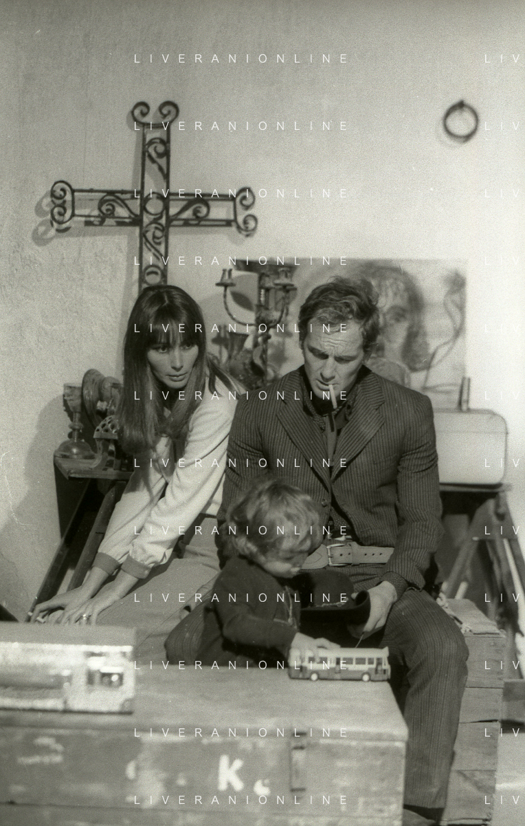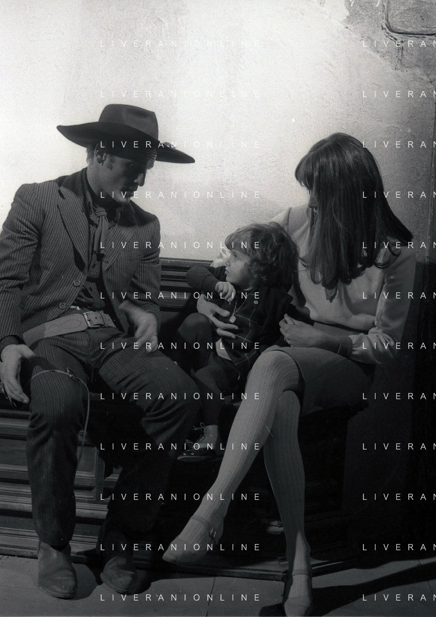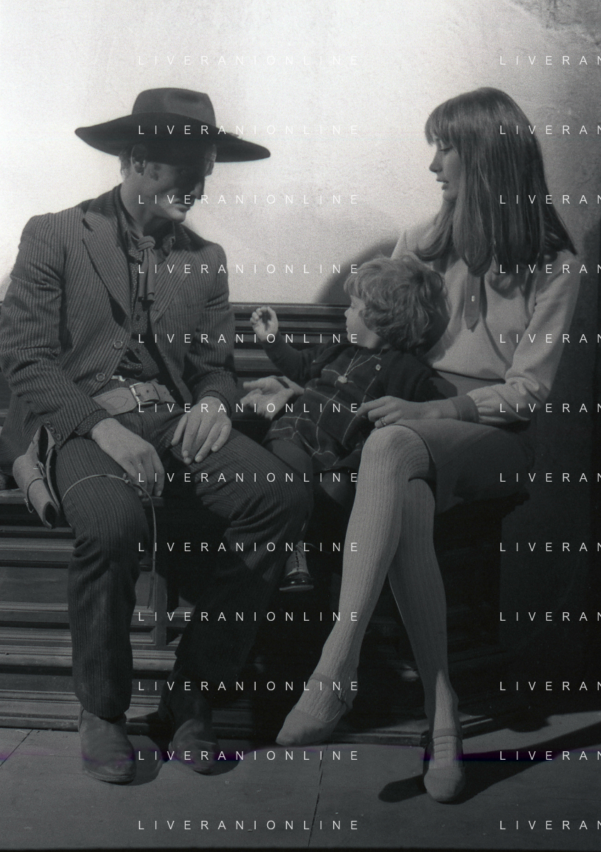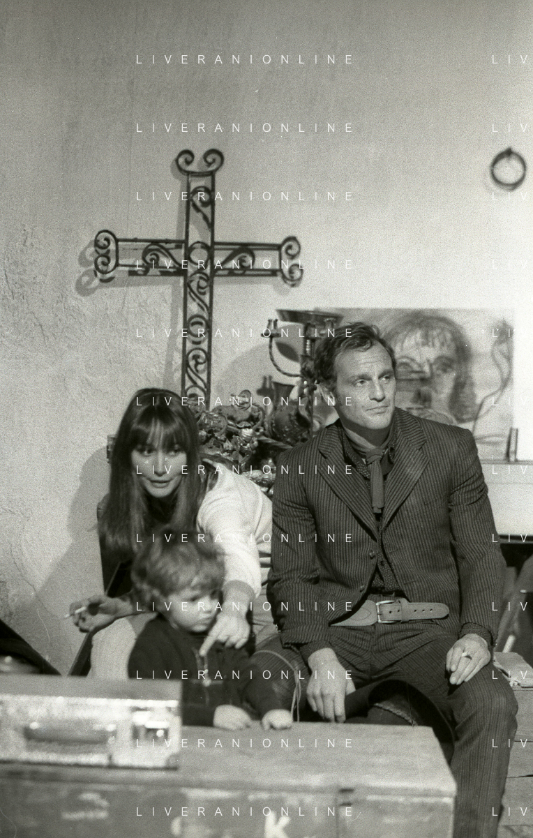 RETROSPETTIVA PHILIPPE LEROY ATTORE NELLA FOTO PHILIPPE LEROY CON LA FIGLIA PHILIPPINE E LA COMPAGNA FRANCOIS LAURENT SUL SET DEL FILM “YANKEE“ A ROMA NELL'ANNO 1967 AG ALDO LIVERANI SAS