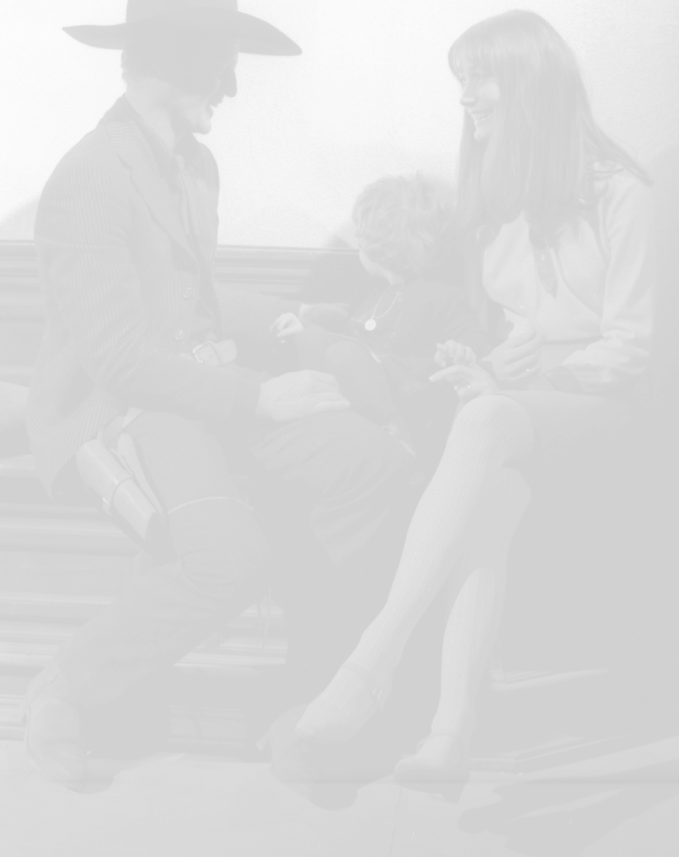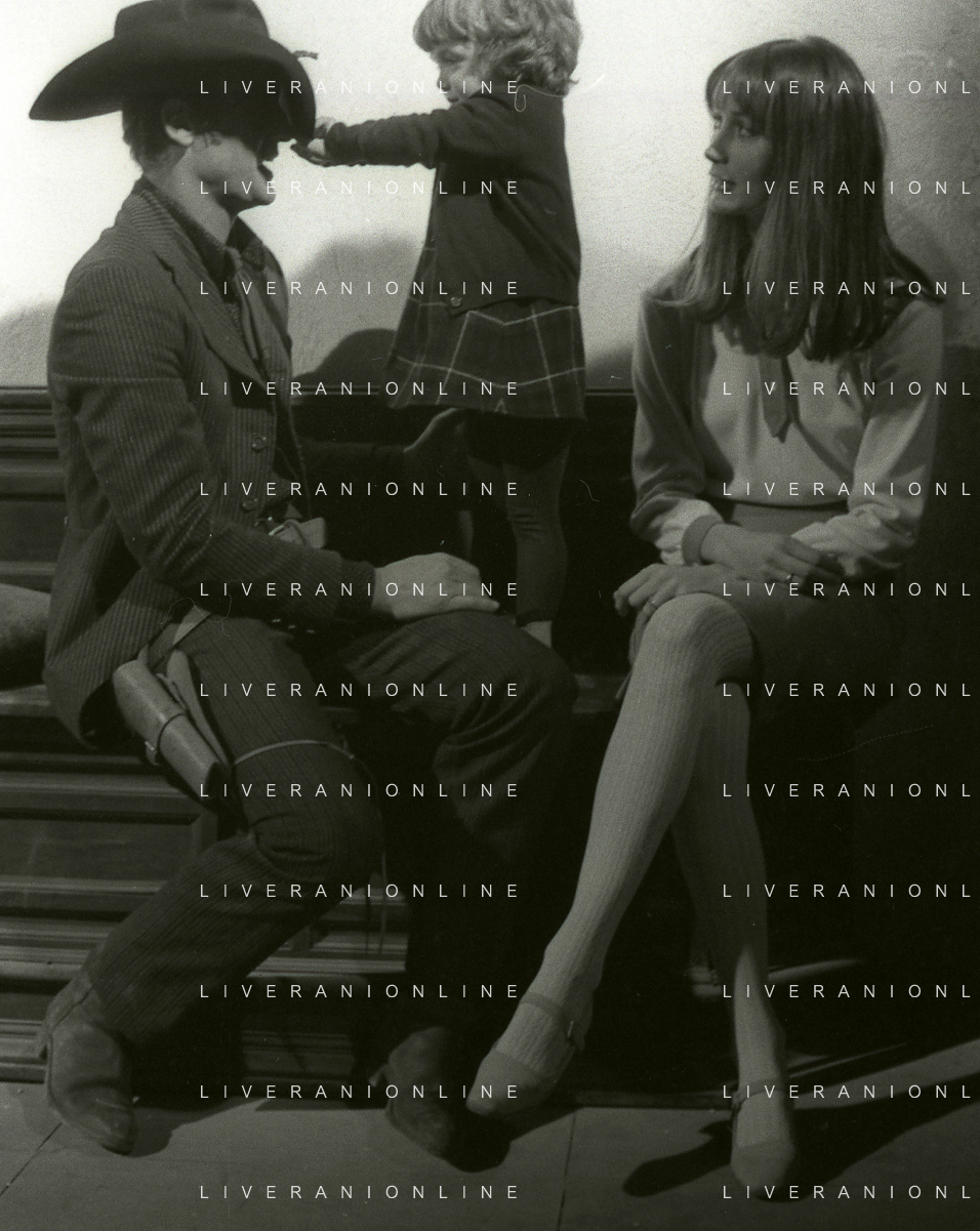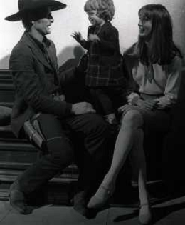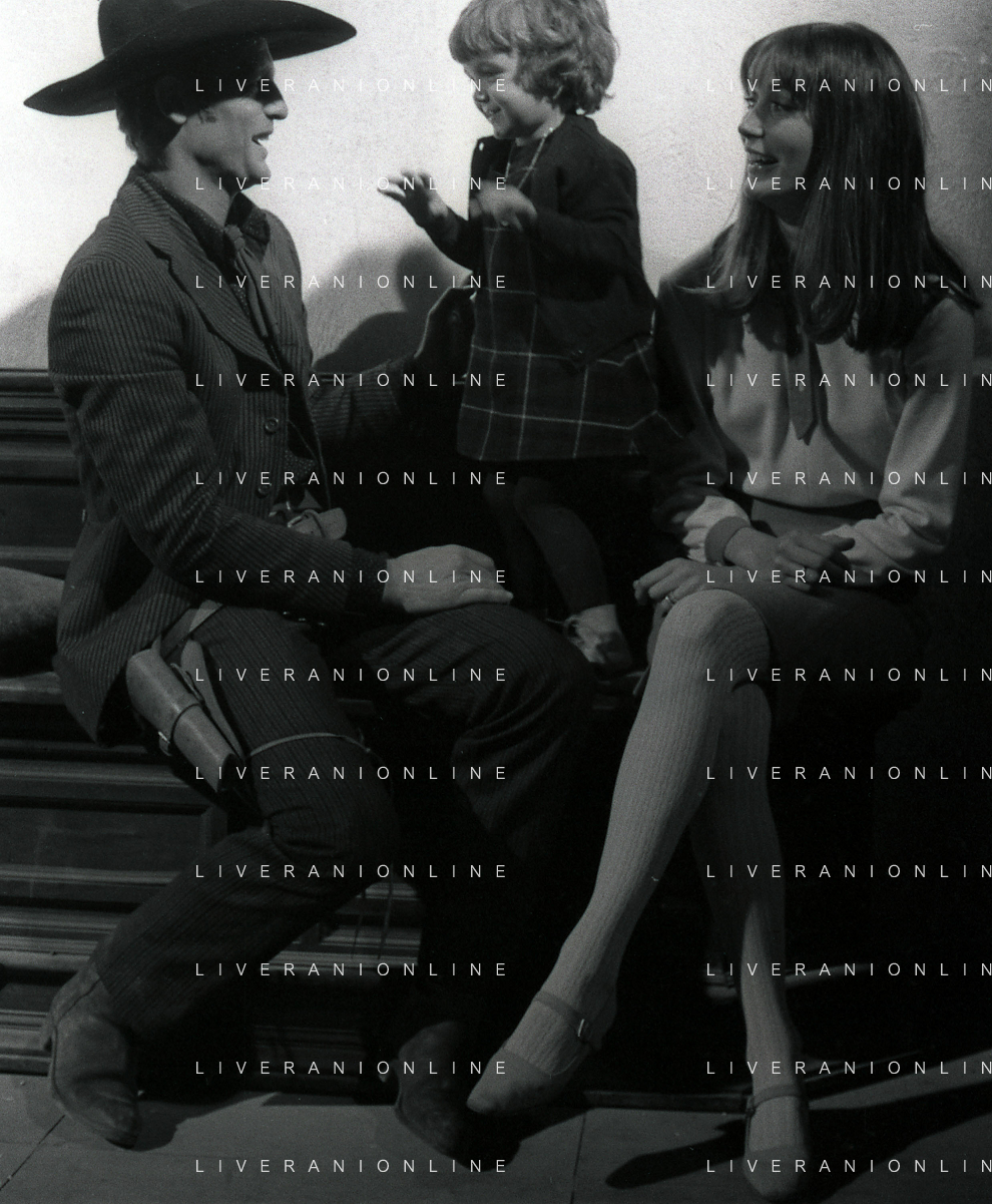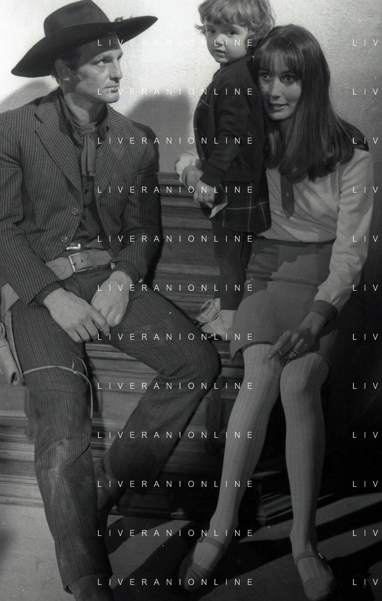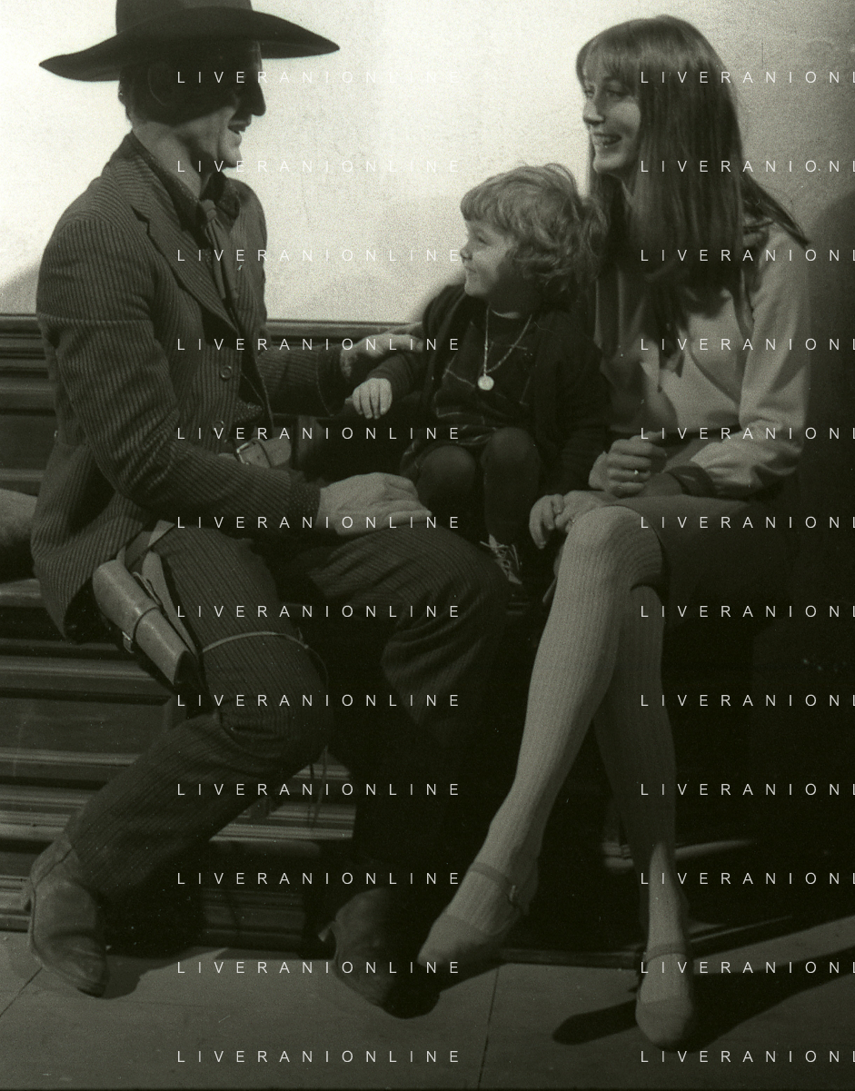 RETROSPETTIVA PHILIPPE LEROY ATTORE NELLA FOTO PHILIPPE LEROY CON LA FIGLIA PHILIPPINE E LA COMPAGNA FRANCOIS LAURENT SUL SET DEL FILM “YANKEE“ A ROMA NELL'ANNO 1967 AG ALDO LIVERANI SAS