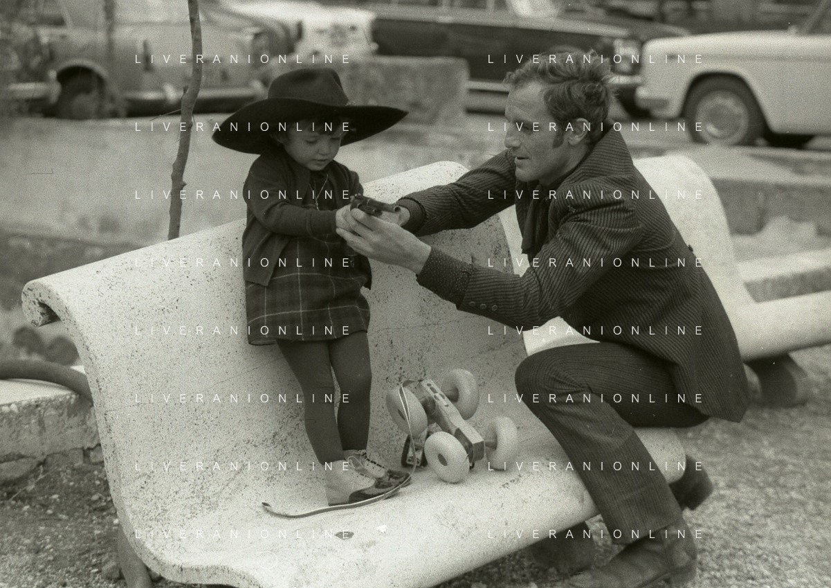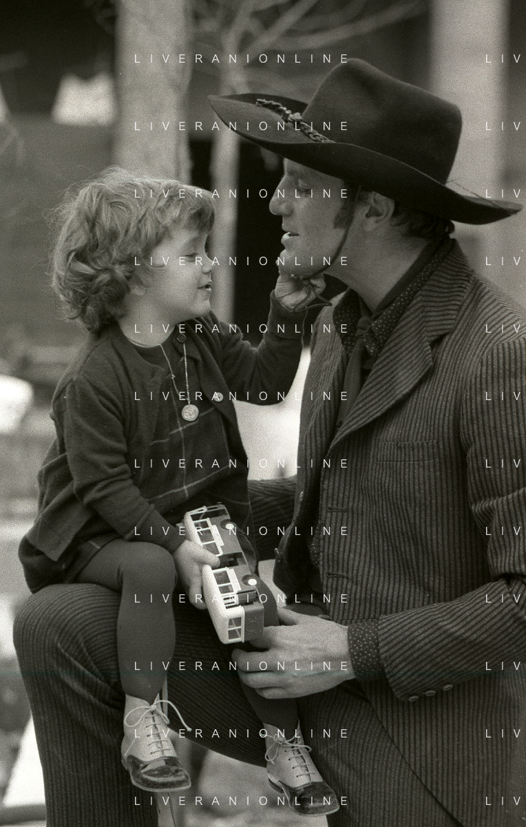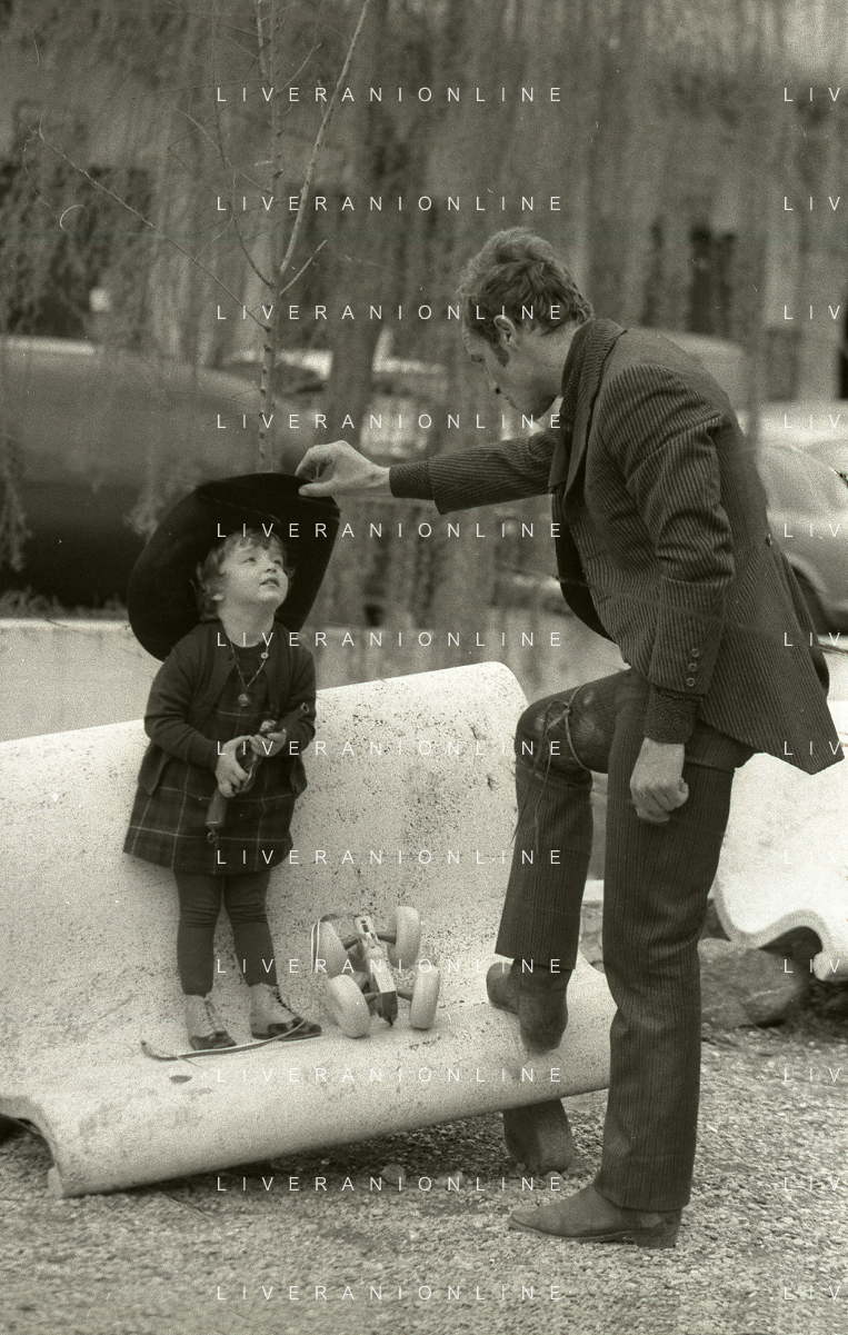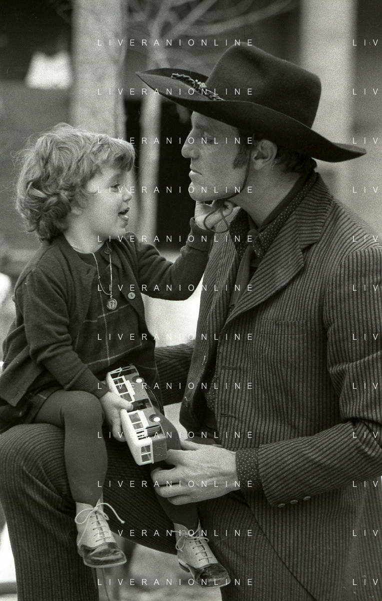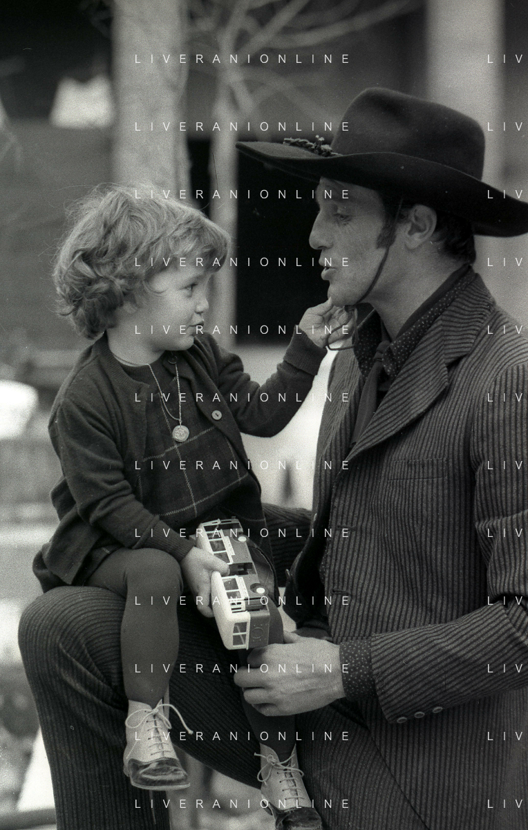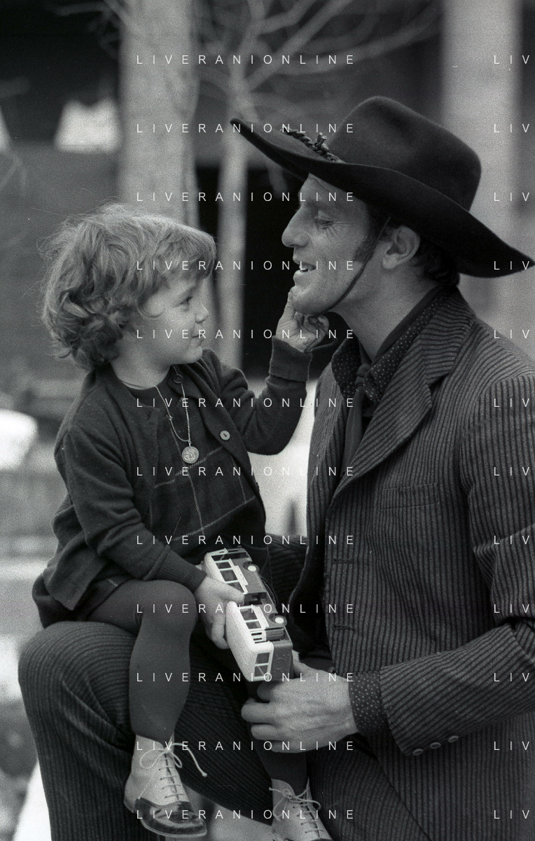 RETROSPETTIVA PHILIPPE LEROY ATTORE NELLA FOTO PHILIPPE LEROY CON LA FIGLIA PHILIPPINE SUL SET DEL FILM “YANKEE“ A ROMA NELL'ANNO 1967 AG ALDO LIVERANI SAS