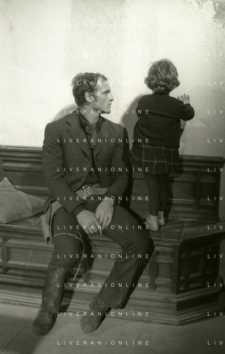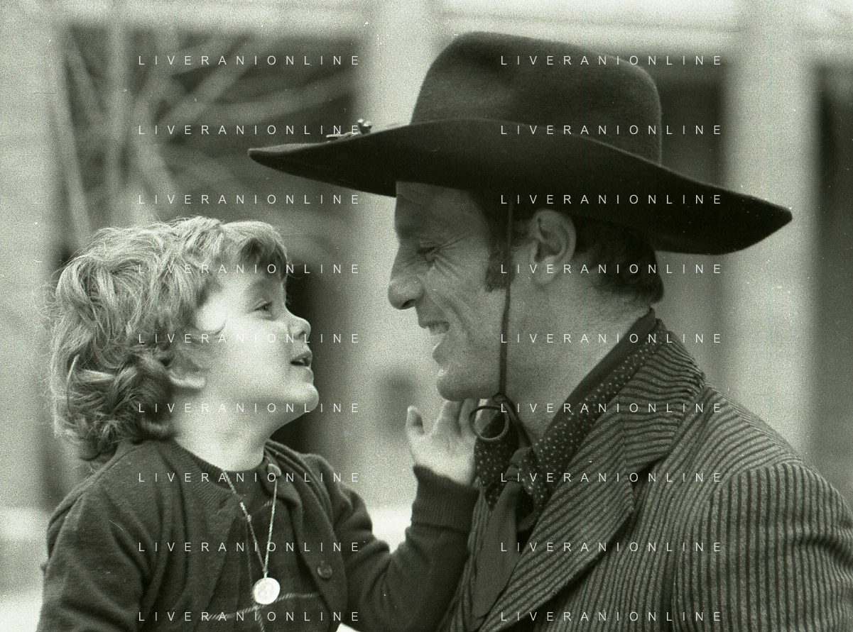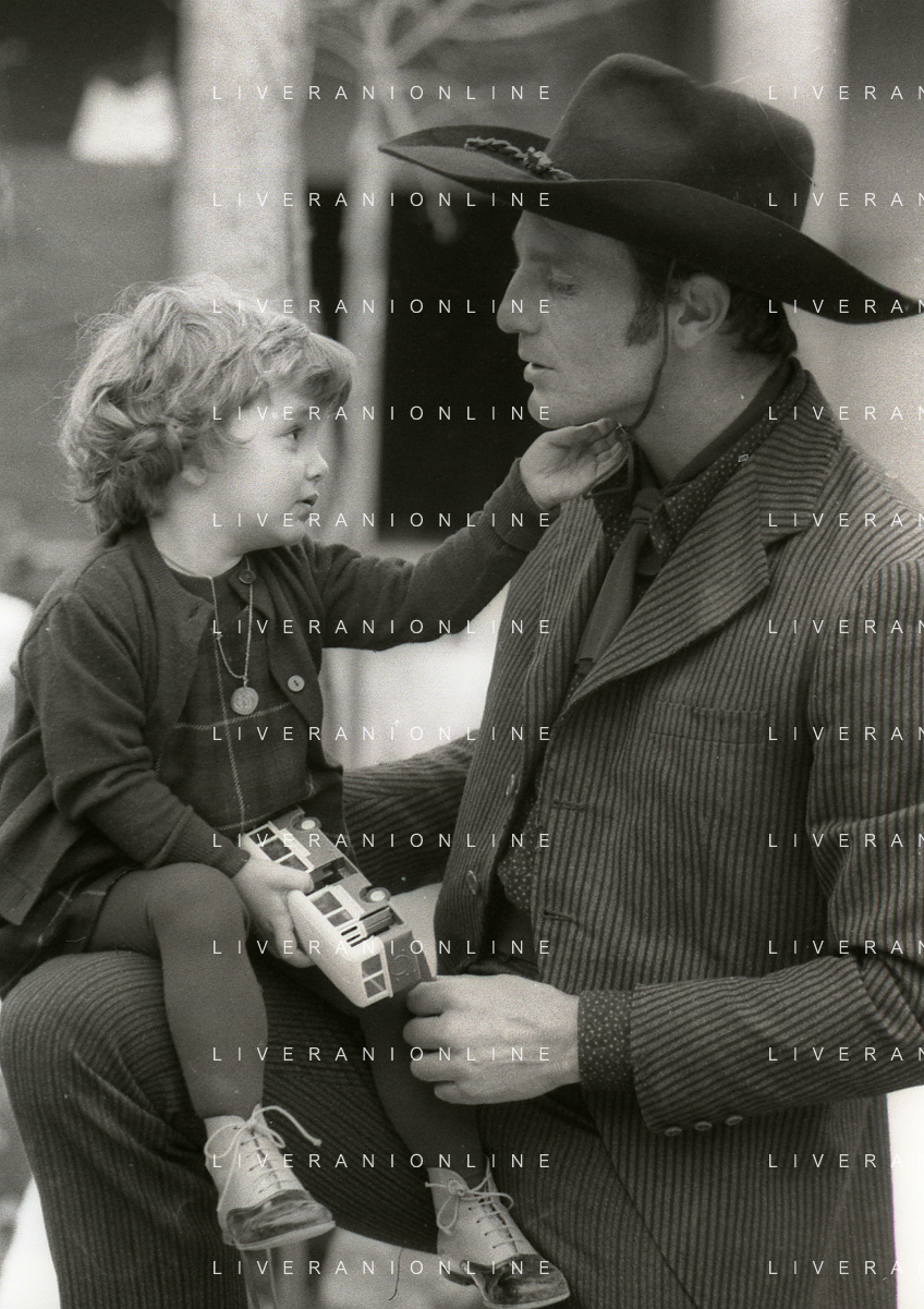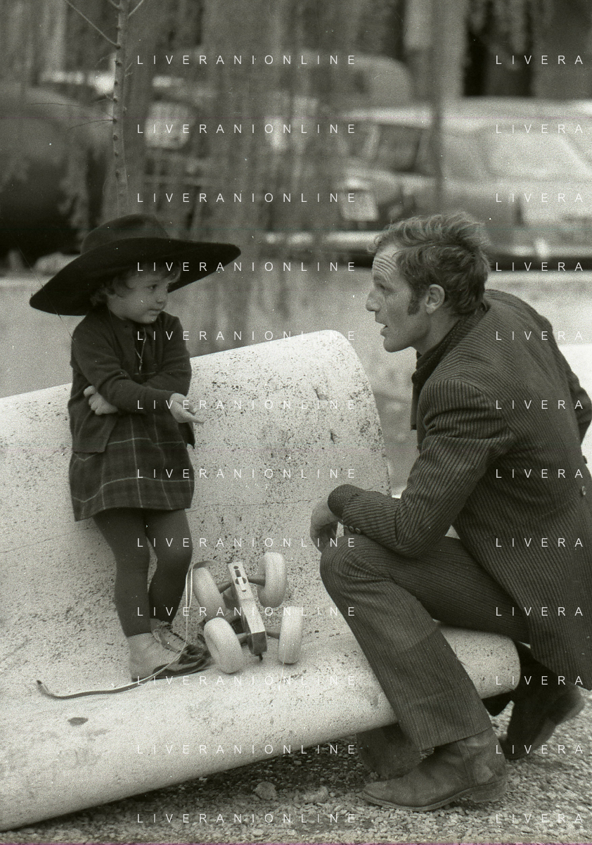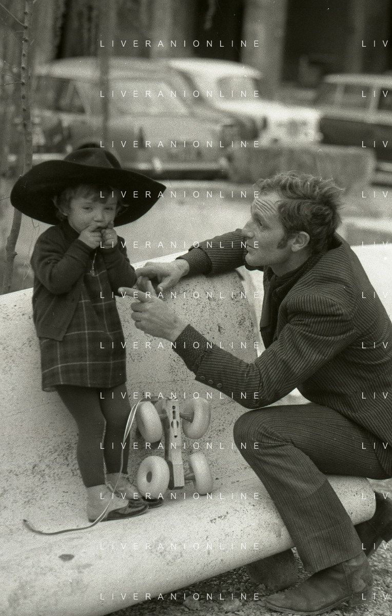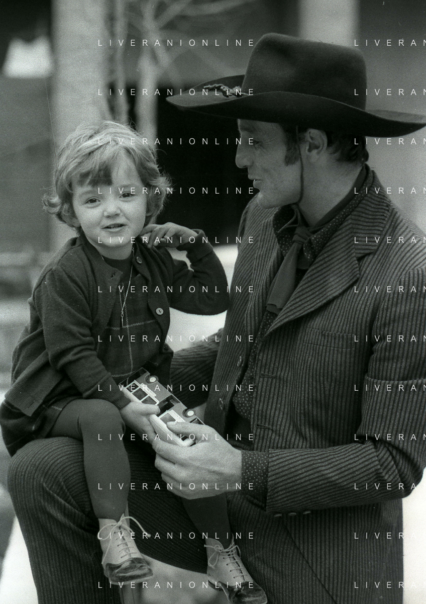 RETROSPETTIVA PHILIPPE LEROY ATTORE NELLA FOTO PHILIPPE LEROY CON LA FIGLIA PHILIPPINE SUL SET DEL FILM “YANKEE“ A ROMA NELL'ANNO 1967 AG ALDO LIVERANI SAS