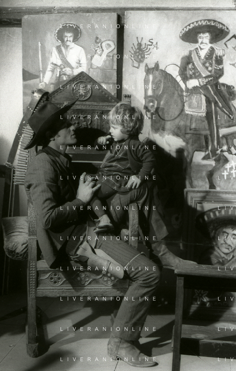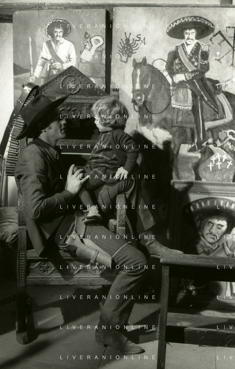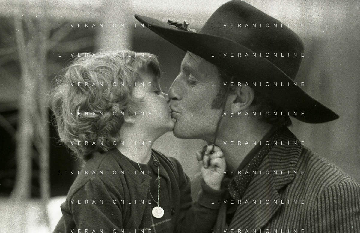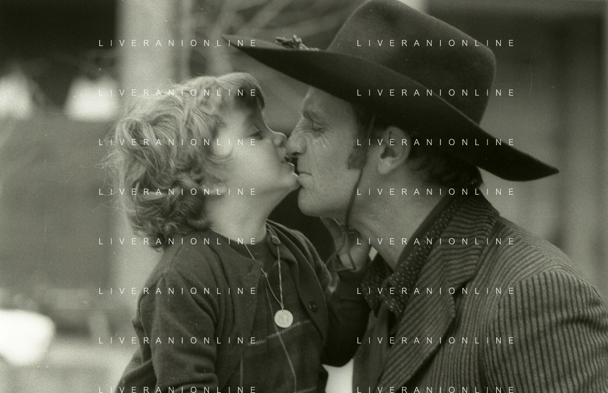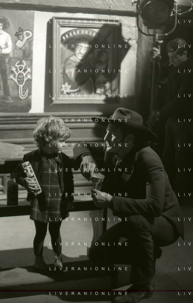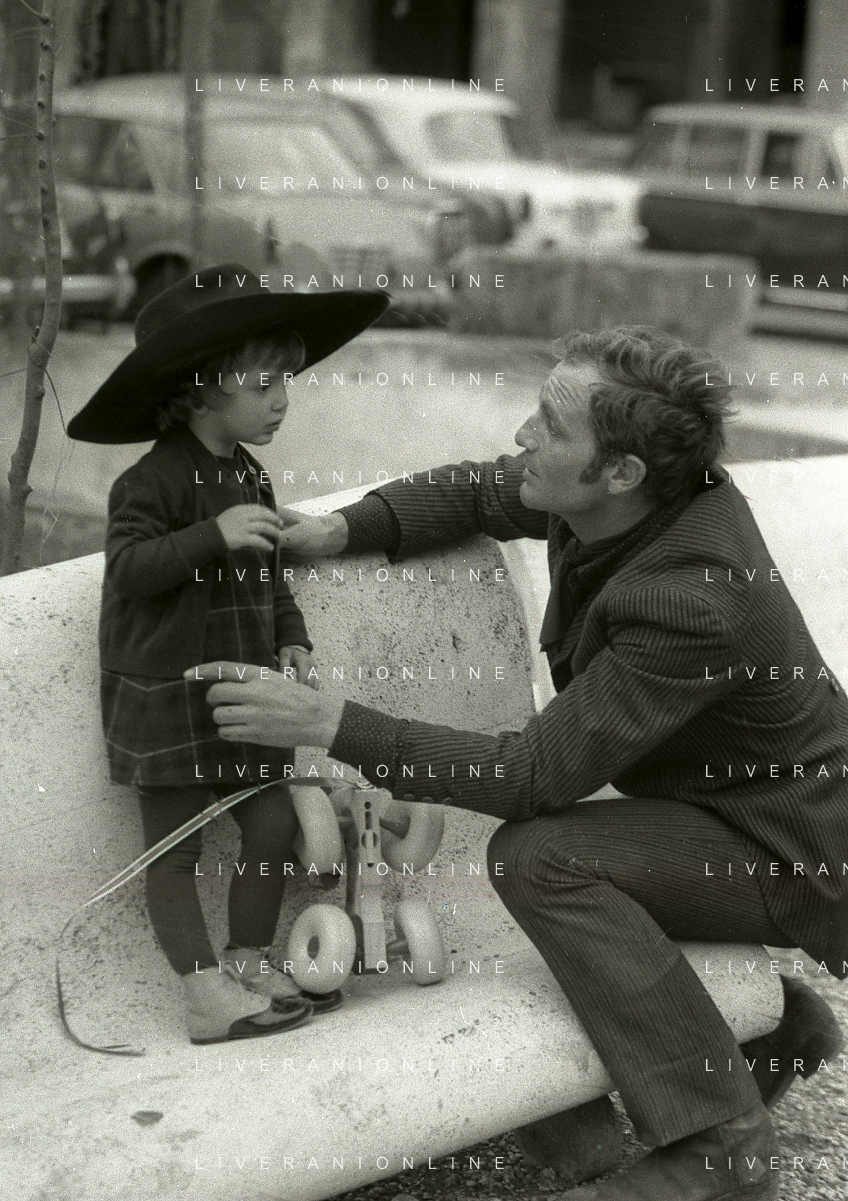 RETROSPETTIVA PHILIPPE LEROY ATTORE NELLA FOTO PHILIPPE LEROY CON LA FIGLIA PHILIPPINE SUL SET DEL FILM “YANKEE“ A ROMA NELL'ANNO 1967 AG ALDO LIVERANI SAS