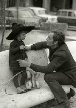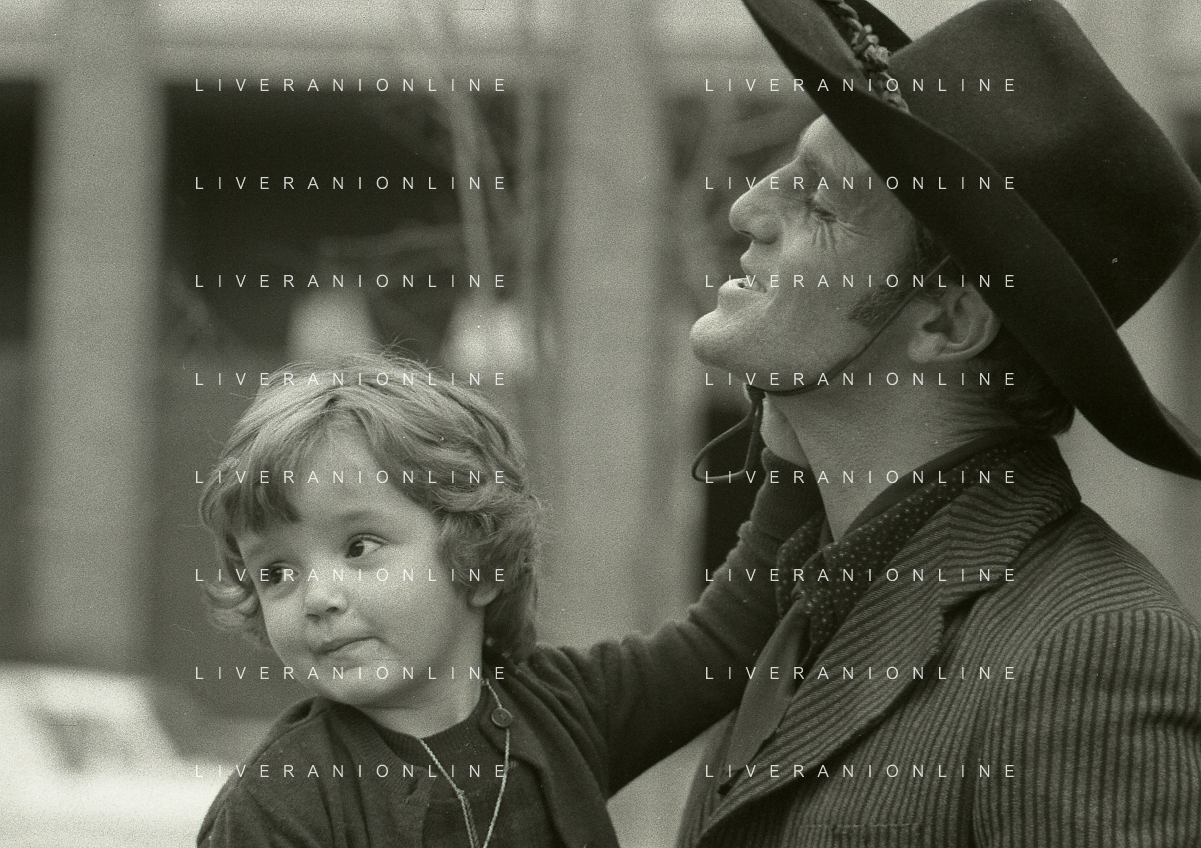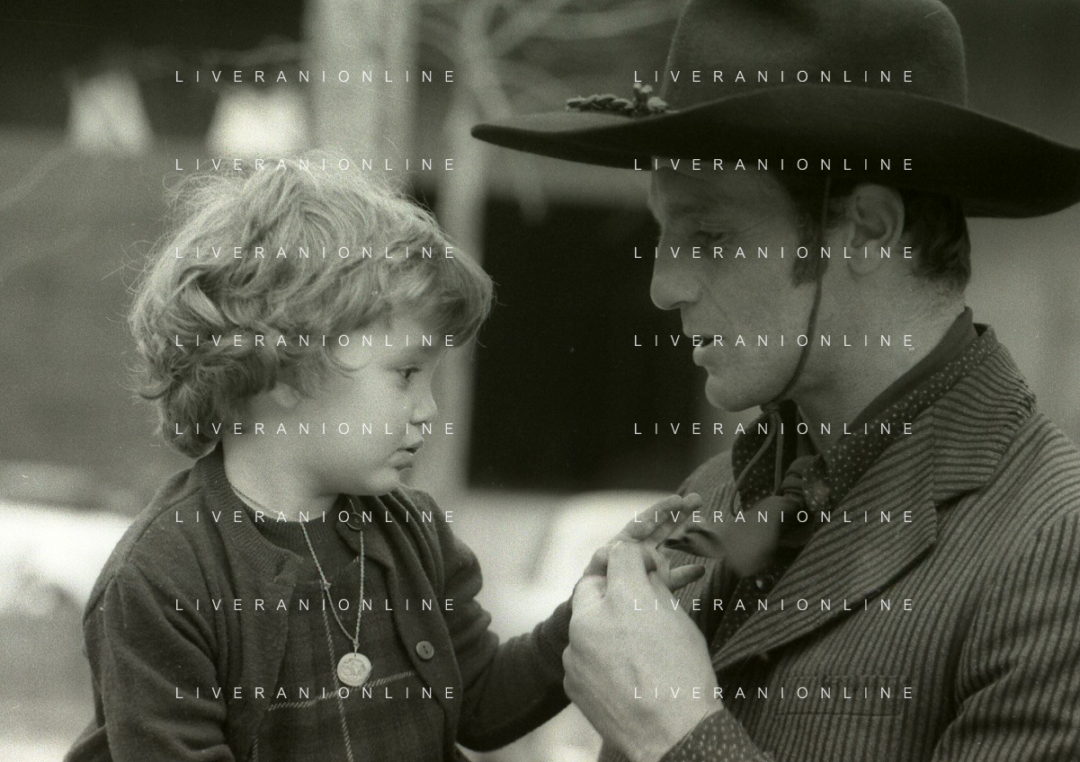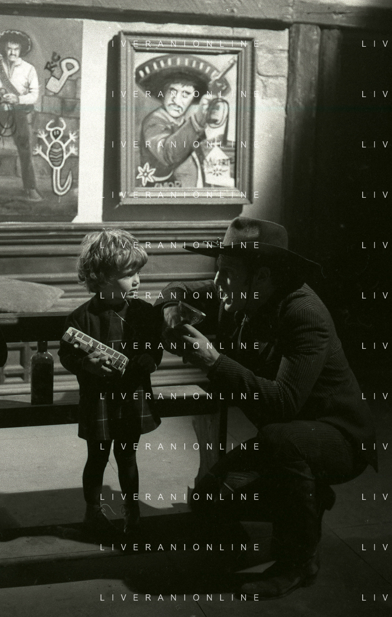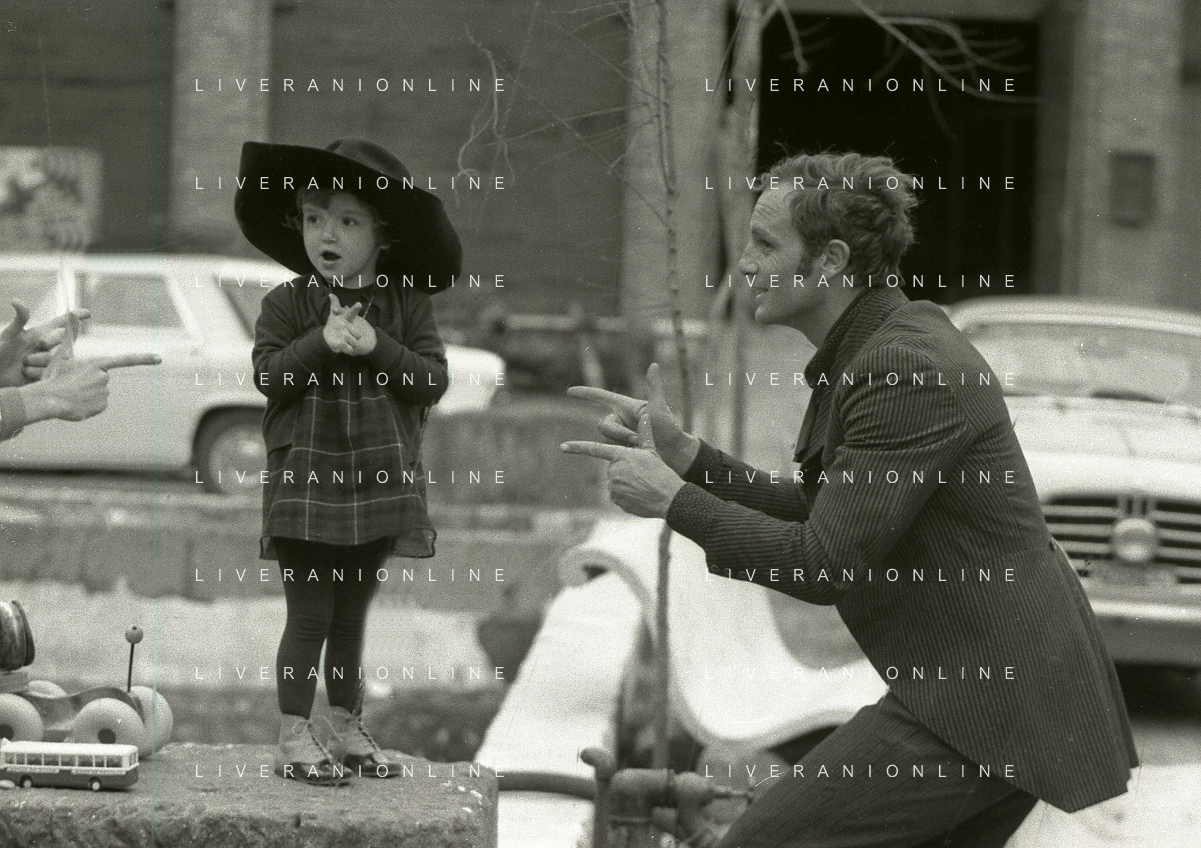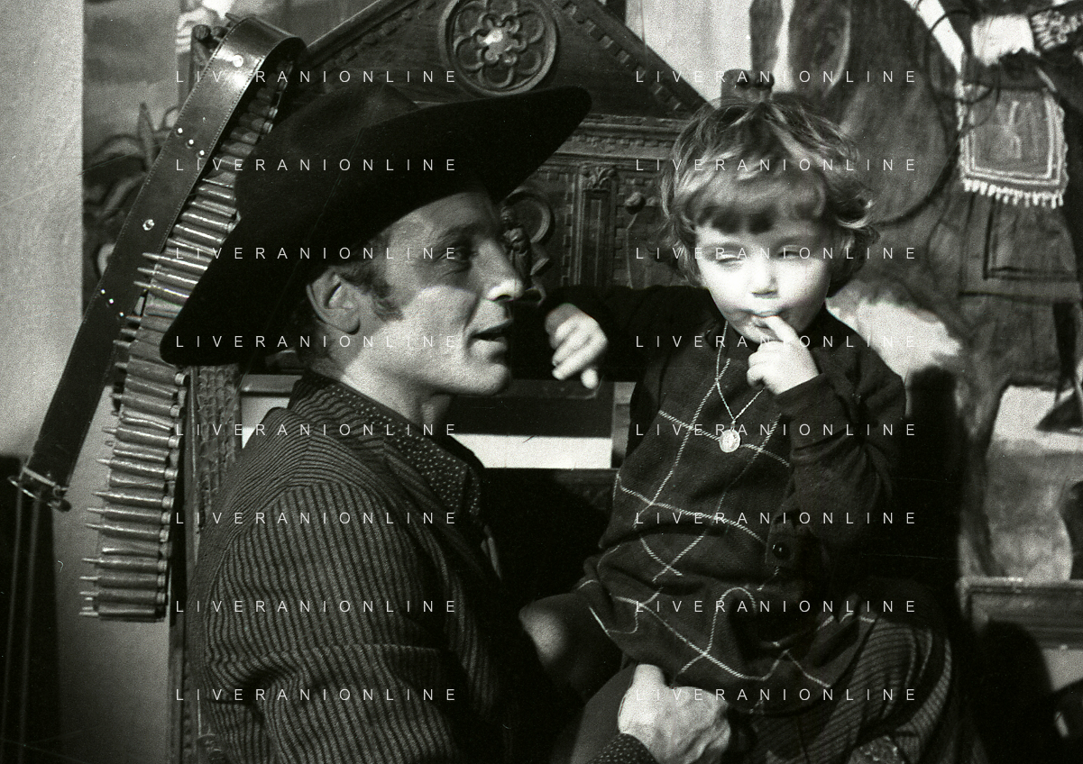 RETROSPETTIVA PHILIPPE LEROY ATTORE NELLA FOTO PHILIPPE LEROY CON LA FIGLIA PHILIPPINE SUL SET DEL FILM “YANKEE“ A ROMA NELL'ANNO 1967 AG ALDO LIVERANI SAS