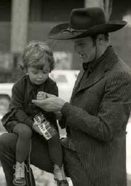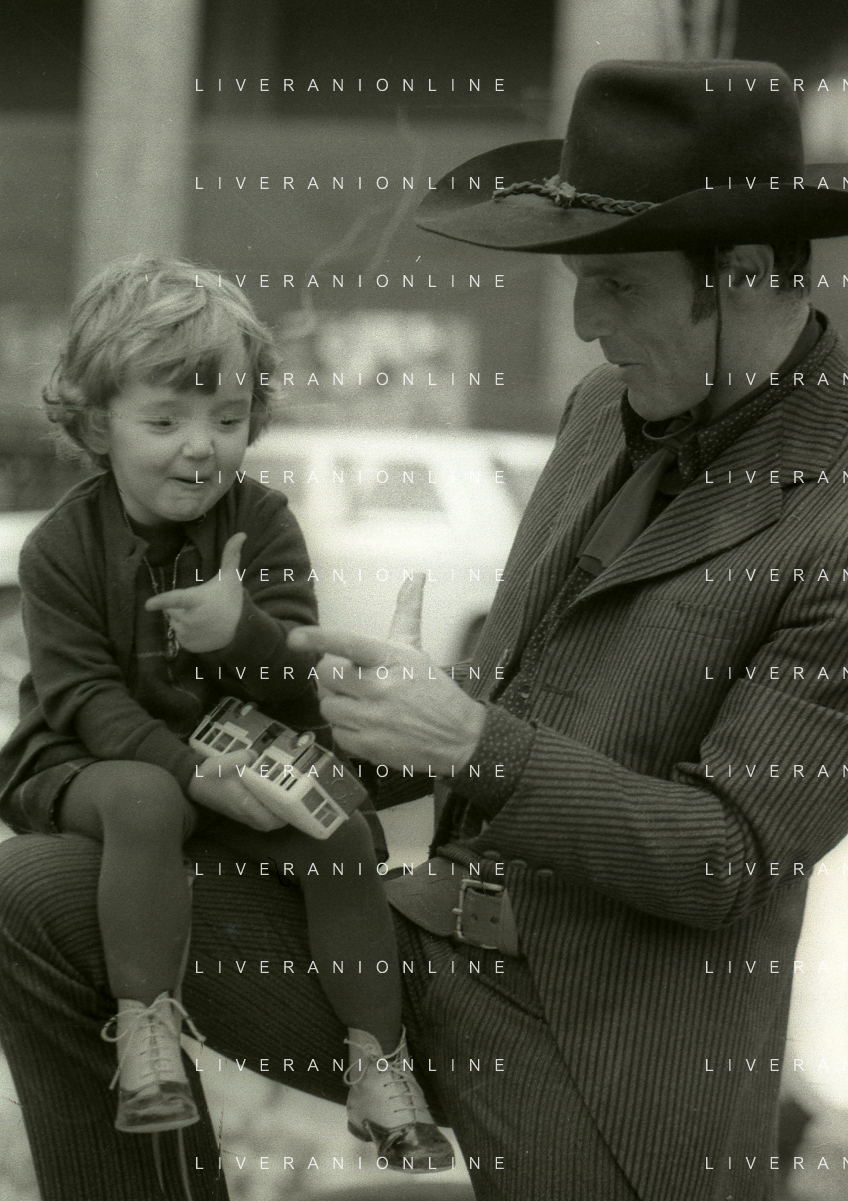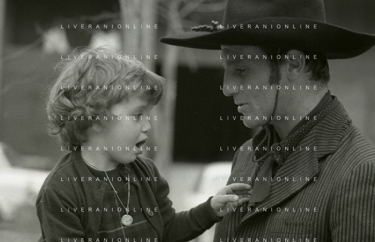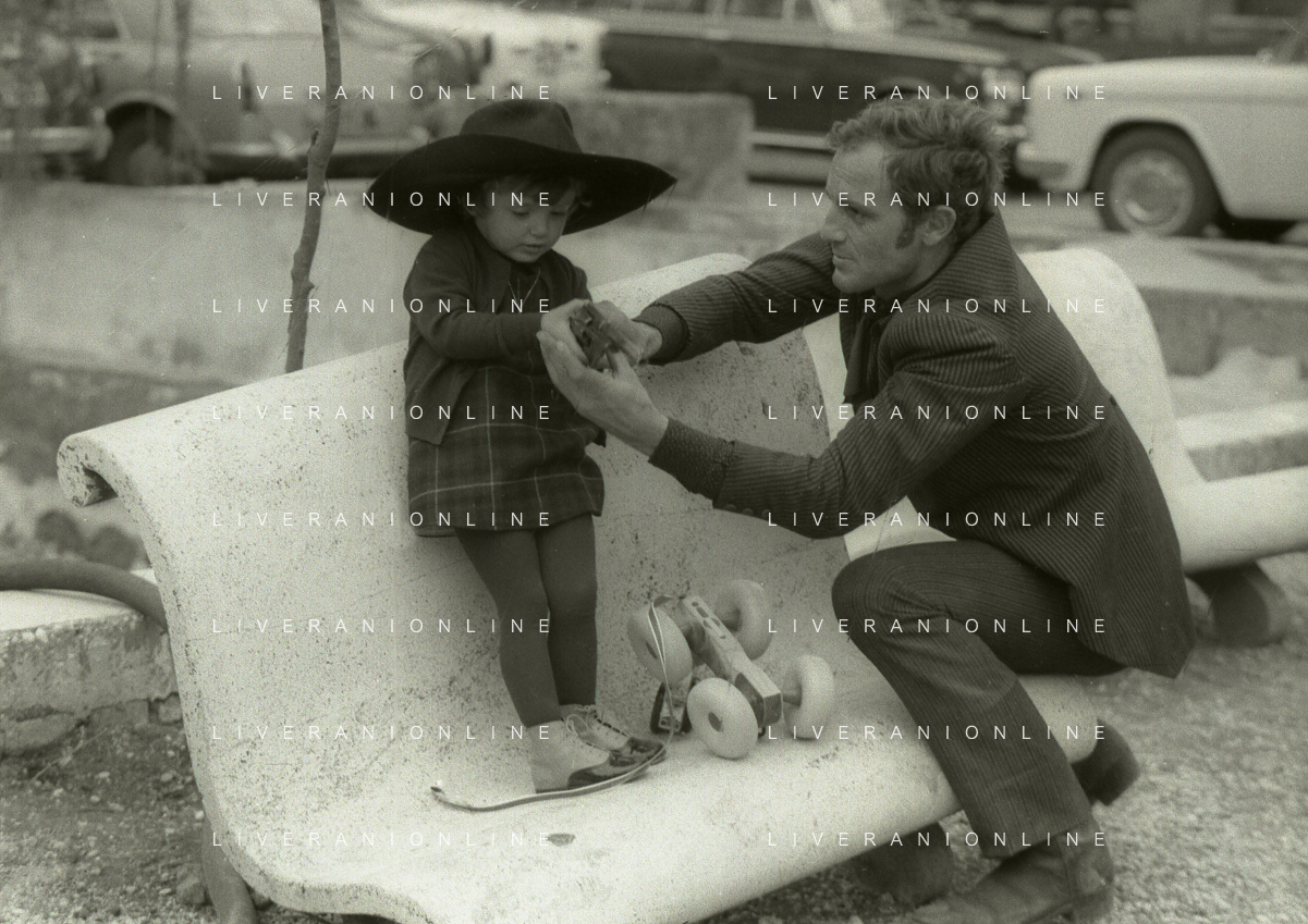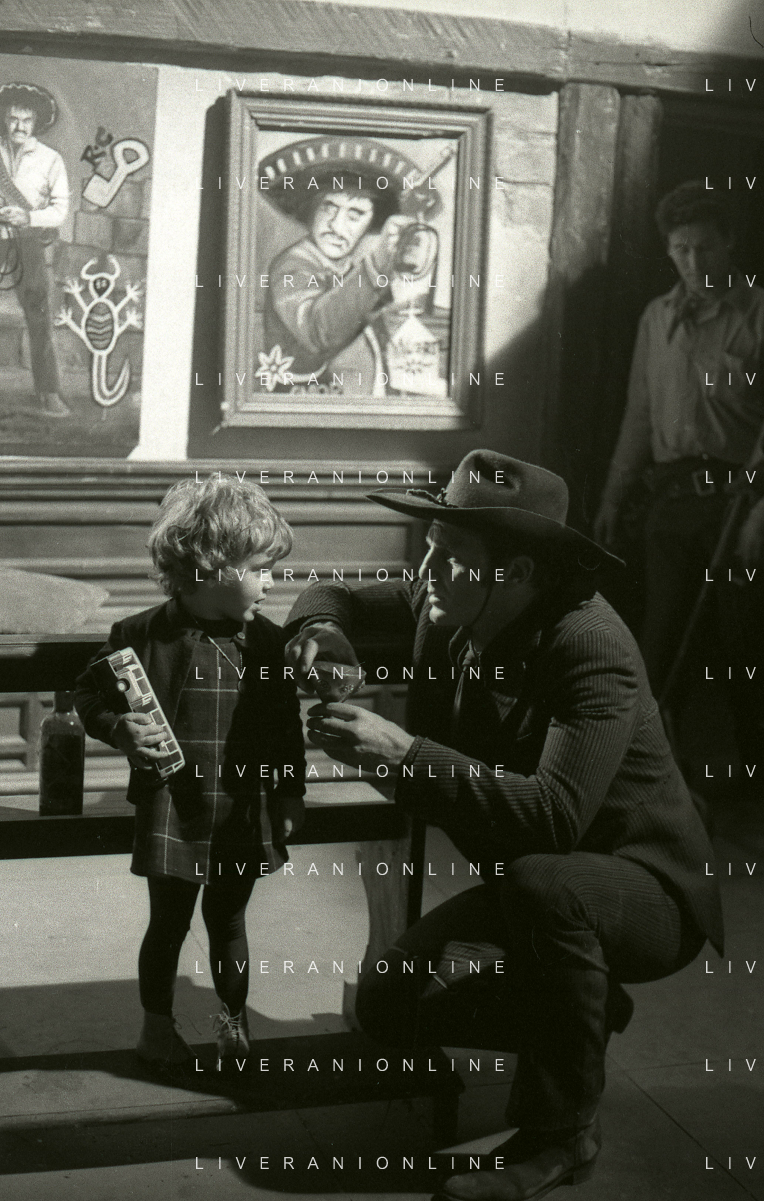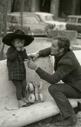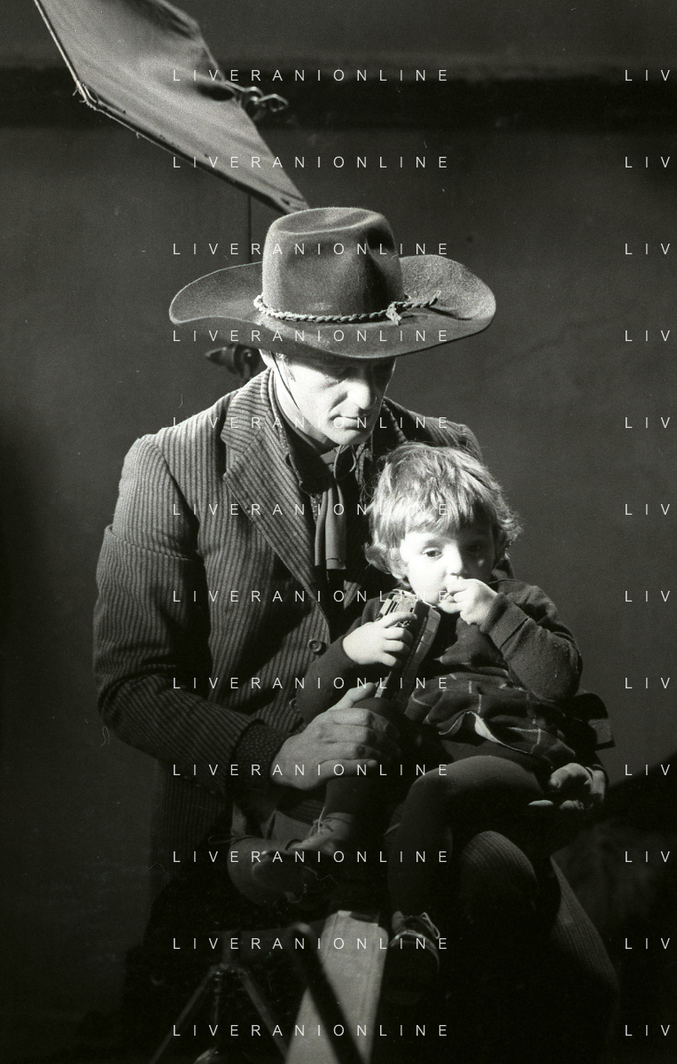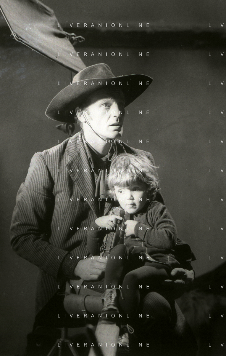RETROSPETTIVA PHILIPPE LEROY ATTORE NELLA FOTO PHILIPPE LEROY CON LA FIGLIA PHILIPPINE SUL SET DEL FILM “YANKEE“ A ROMA NELL'ANNO 1967 AG ALDO LIVERANI SAS