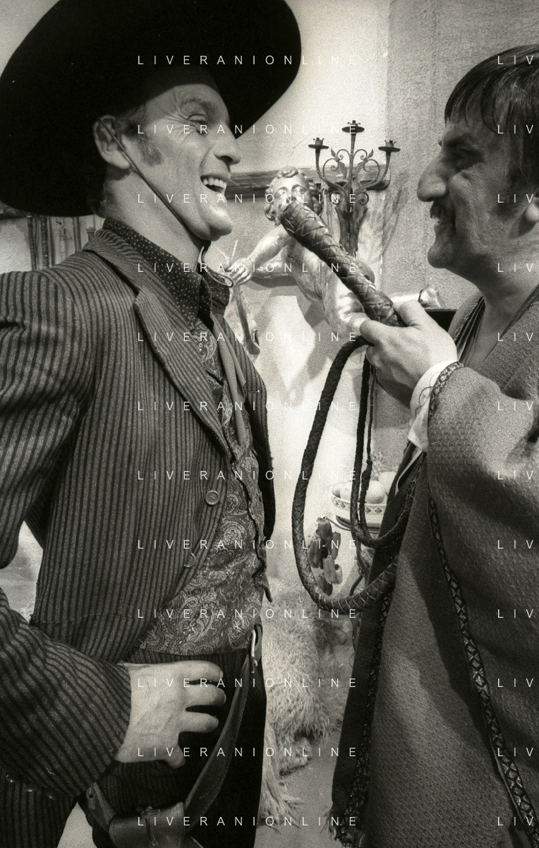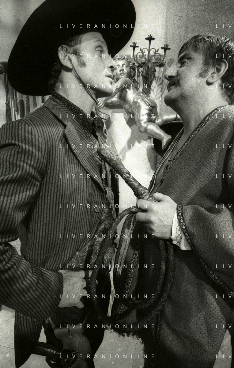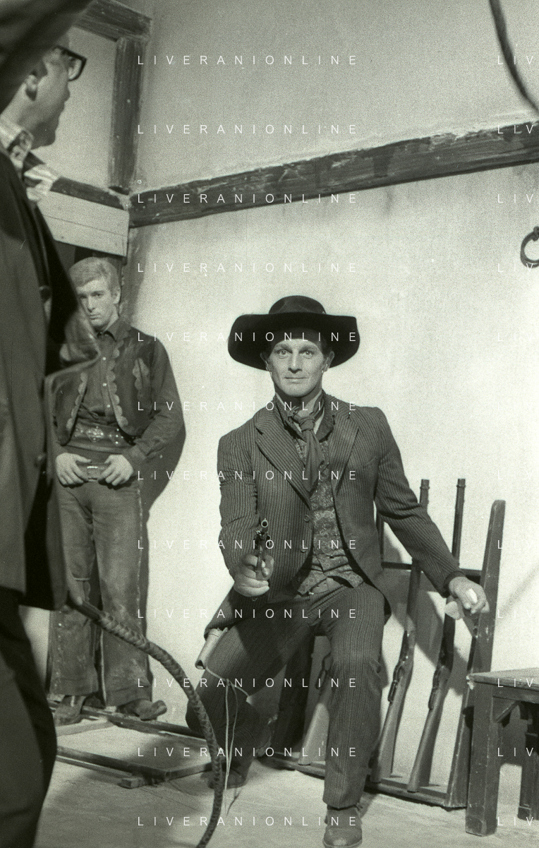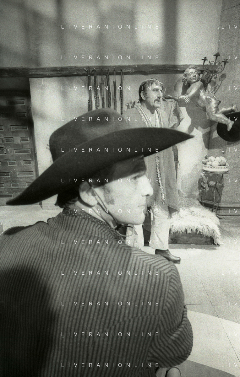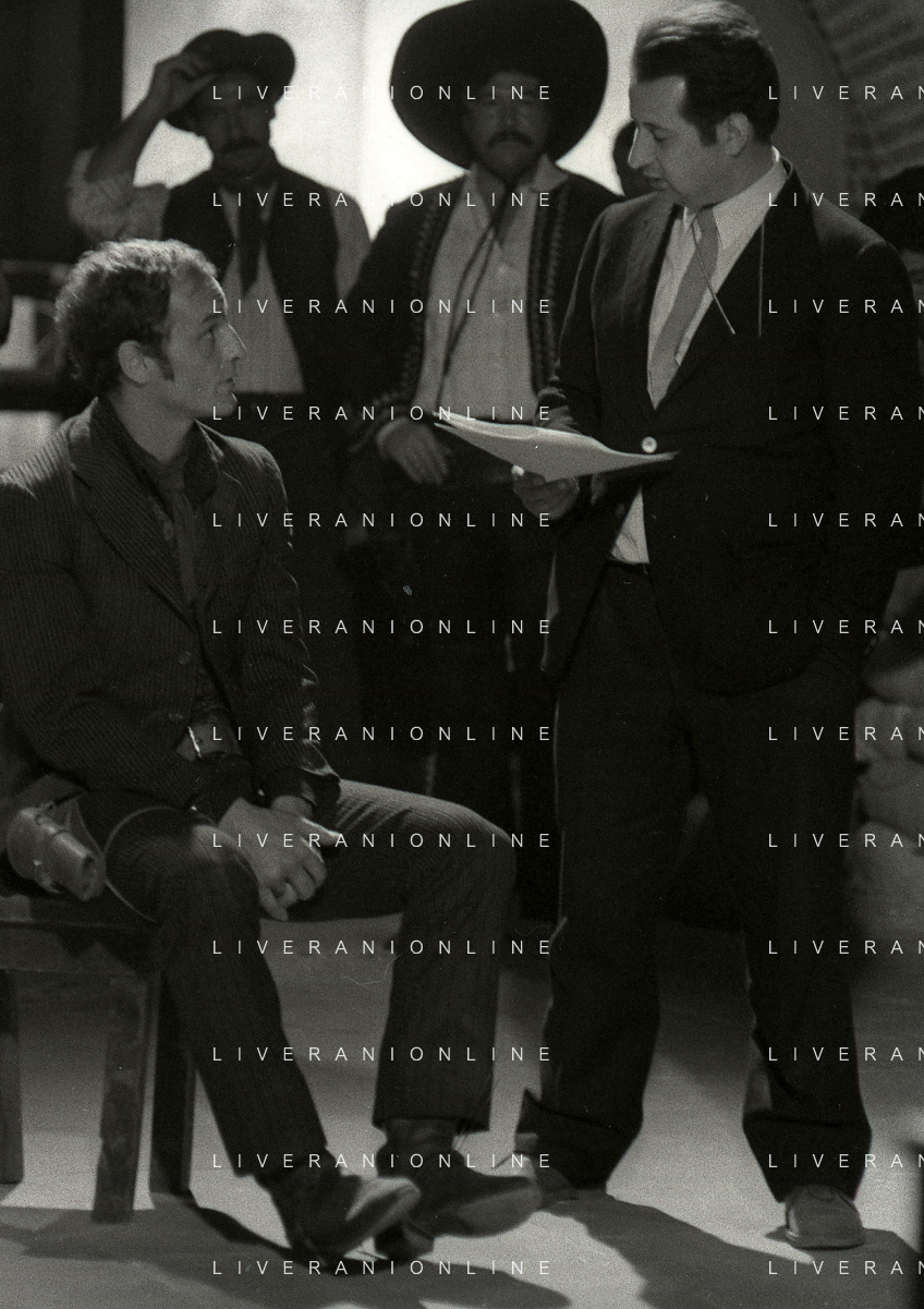 RETROSPETTIVA PHILIPPE LEROY ATTORE NELLA FOTO PHILIPPE LEROY SUL SET DEL FILM “YANKEE“ A ROMA NELL'ANNO 1967 CON IL REGISTA TINTO BRASS AG ALDO LIVERANI SAS