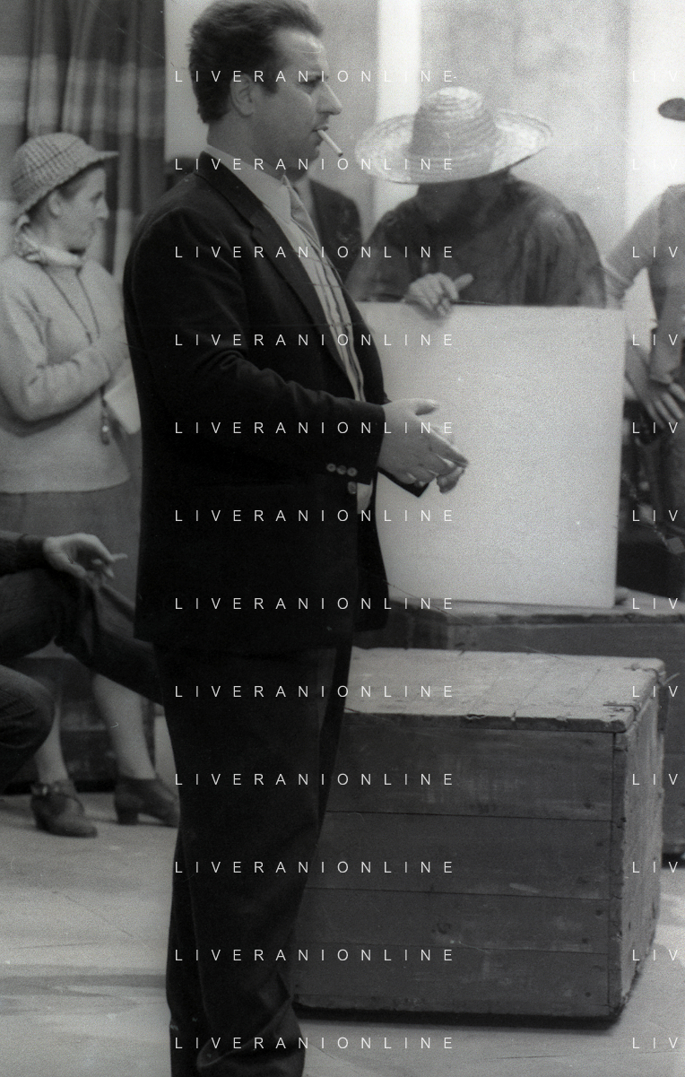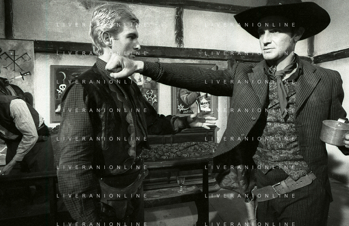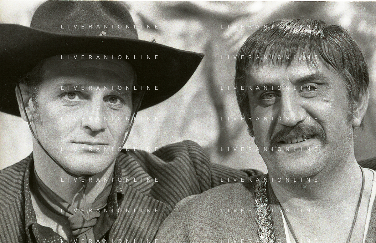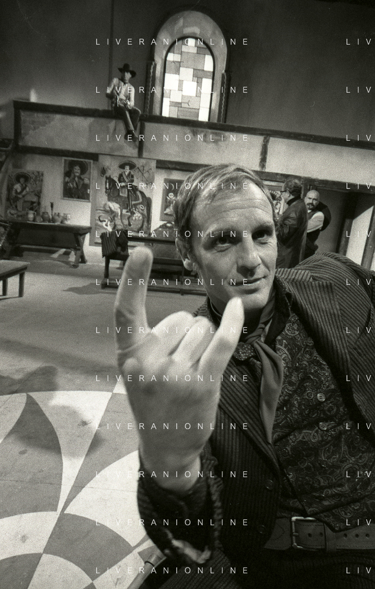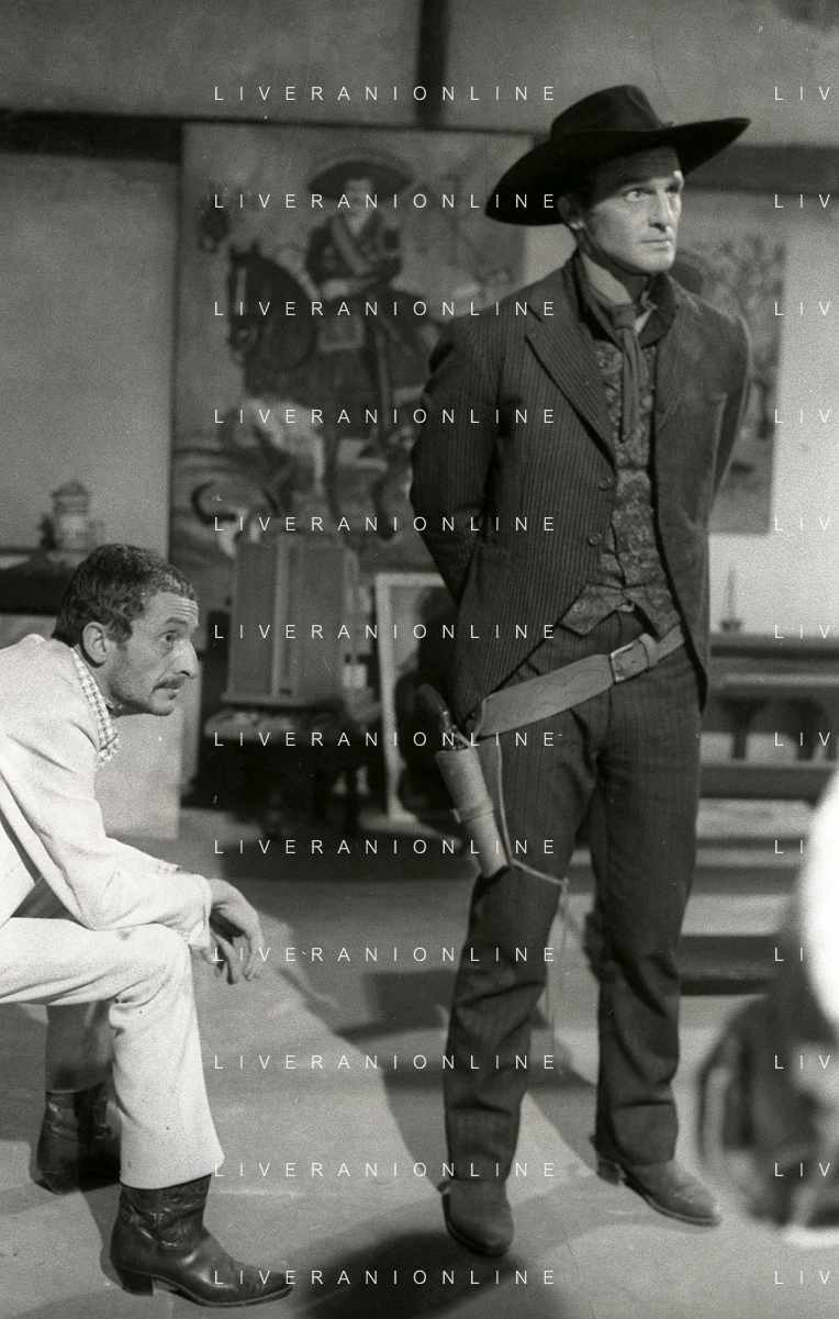 RETROSPETTIVA PHILIPPE LEROY ATTORE NELLA FOTO PHILIPPE LEROY SUL SET DEL FILM “YANKEE“ A ROMA NELL'ANNO 1967 CON IL REGISTA TINTO BRASS AG ALDO LIVERANI SAS