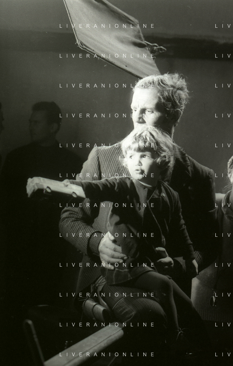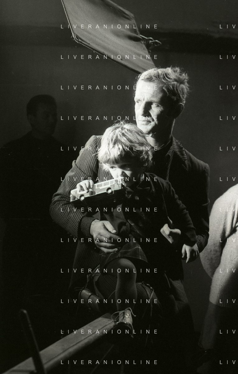 RETROSPETTIVA PHILIPPE LEROY ATTORE NELLA FOTO PHILIPPE LEROY E LA FIGLIA SUL SET DEL FILM “YANKEE“ A ROMA NELL'ANNO 1967 CON IL REGISTA TINTO BRASS AG ALDO LIVERANI SAS