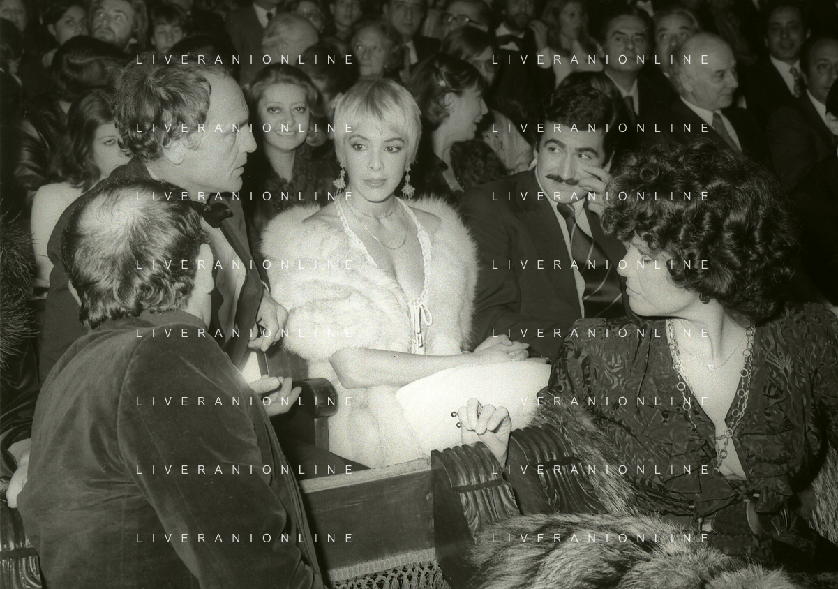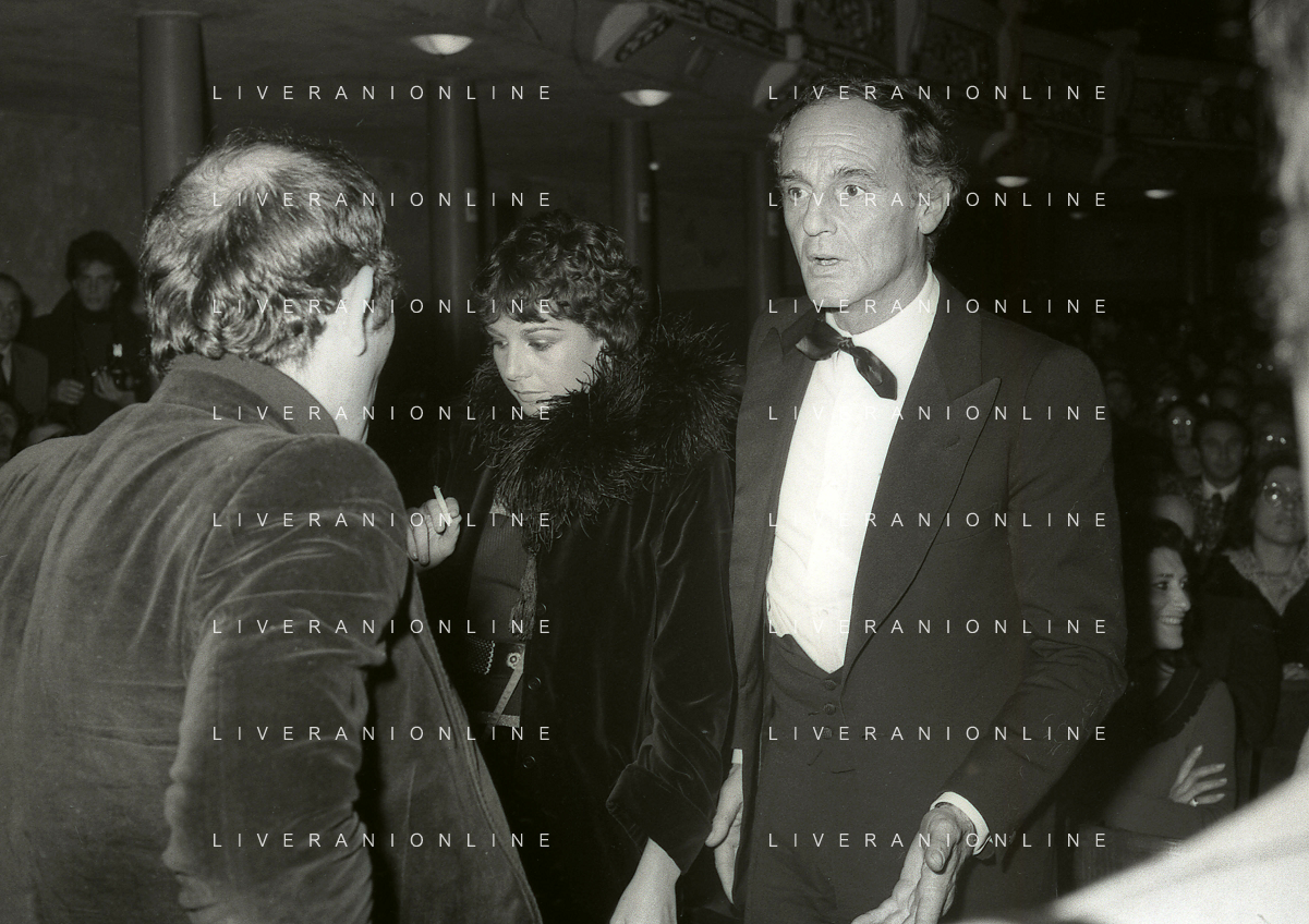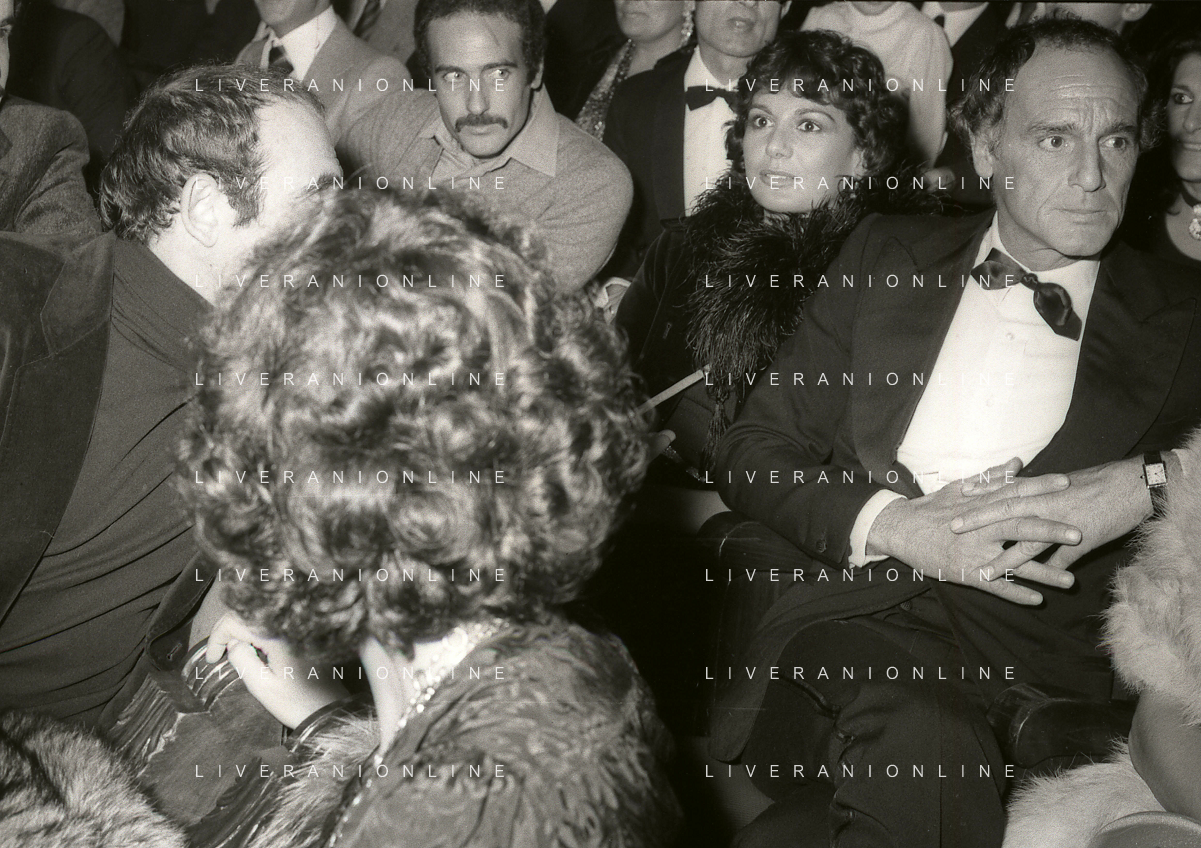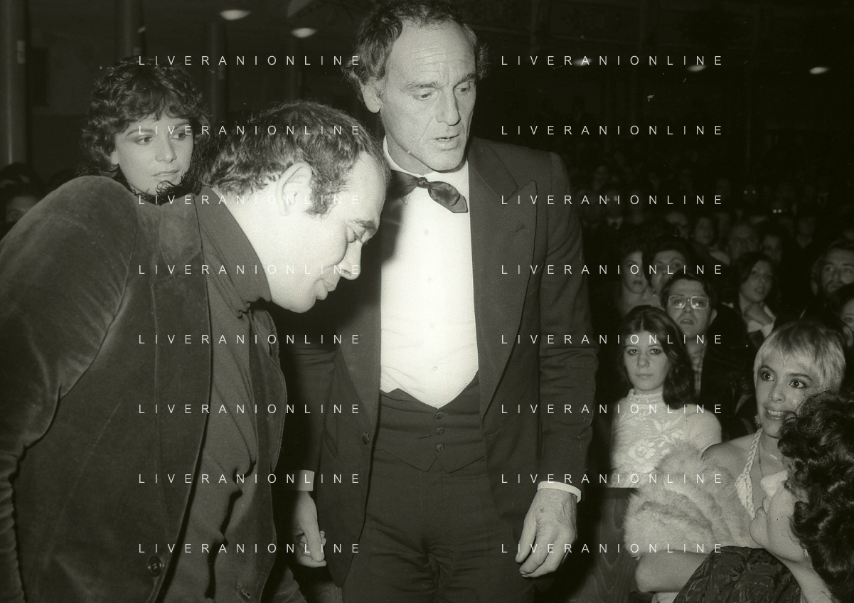 RETROSPETTIVA PHILIPPE LEROY ATTORE NELLA FOTO PHILIPPE LEROY AL PREMIO RODOLFO VALENTINO NELL'ANNO 1975 CON PASQUALE SQUITIERI E CLAUDIA CARDINALE AG ALDO LIVERANI SAS
