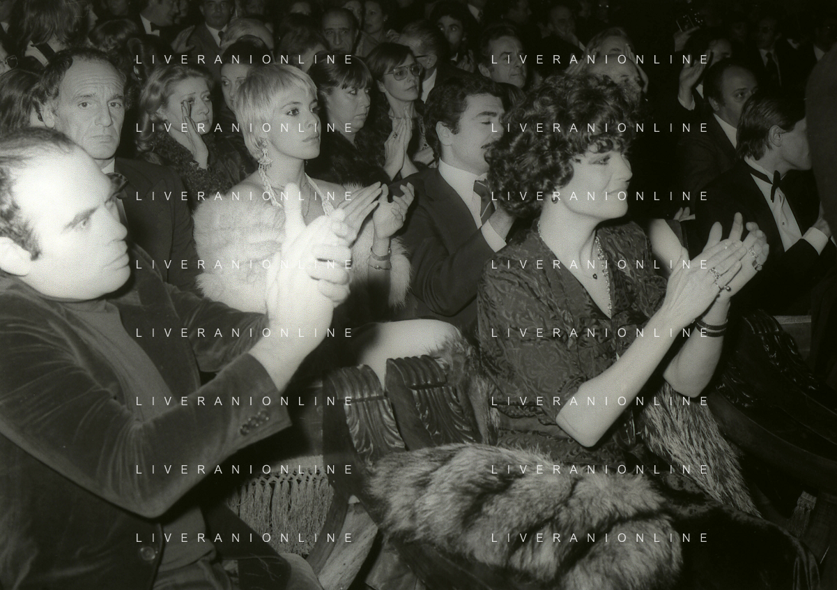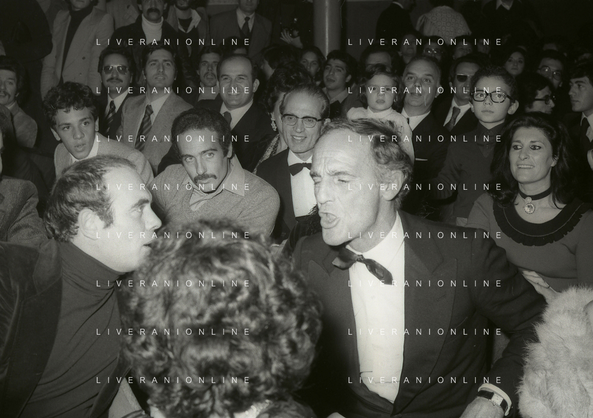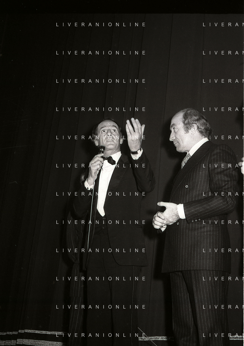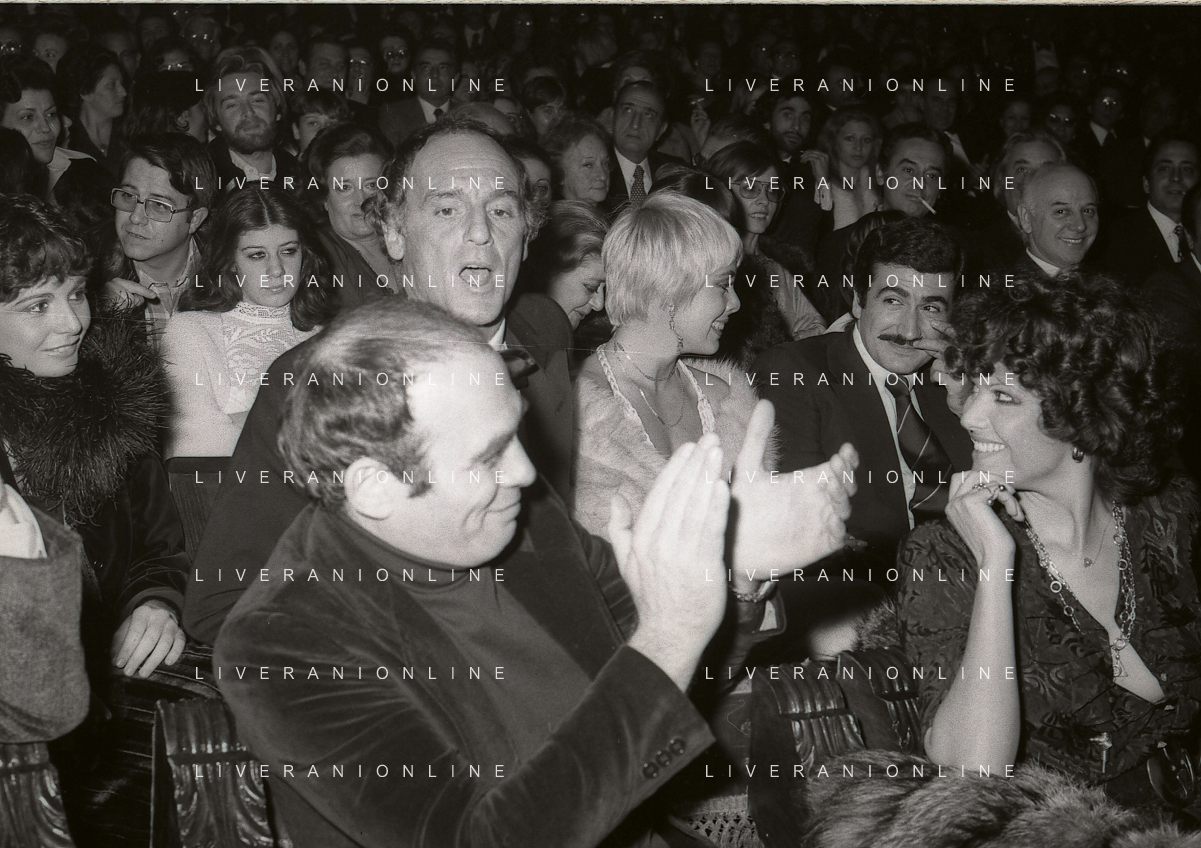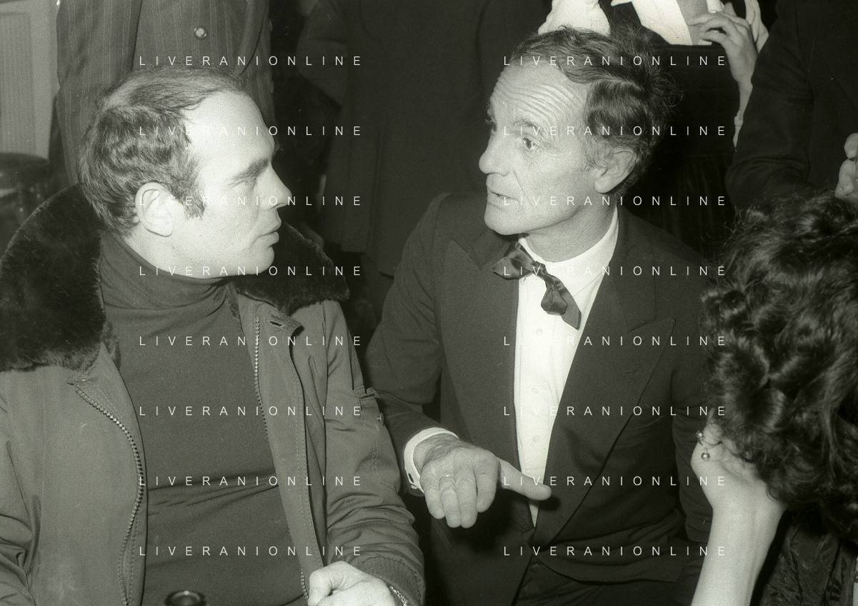 RETROSPETTIVA PHILIPPE LEROY ATTORE NELLA FOTO PHILIPPE LEROY AL PREMIO RODOLFO VALENTINO NELL'ANNO 1975 CON PASQUALE SQUITIERI E CLAUDIA CARDINALE AG ALDO LIVERANI SAS
