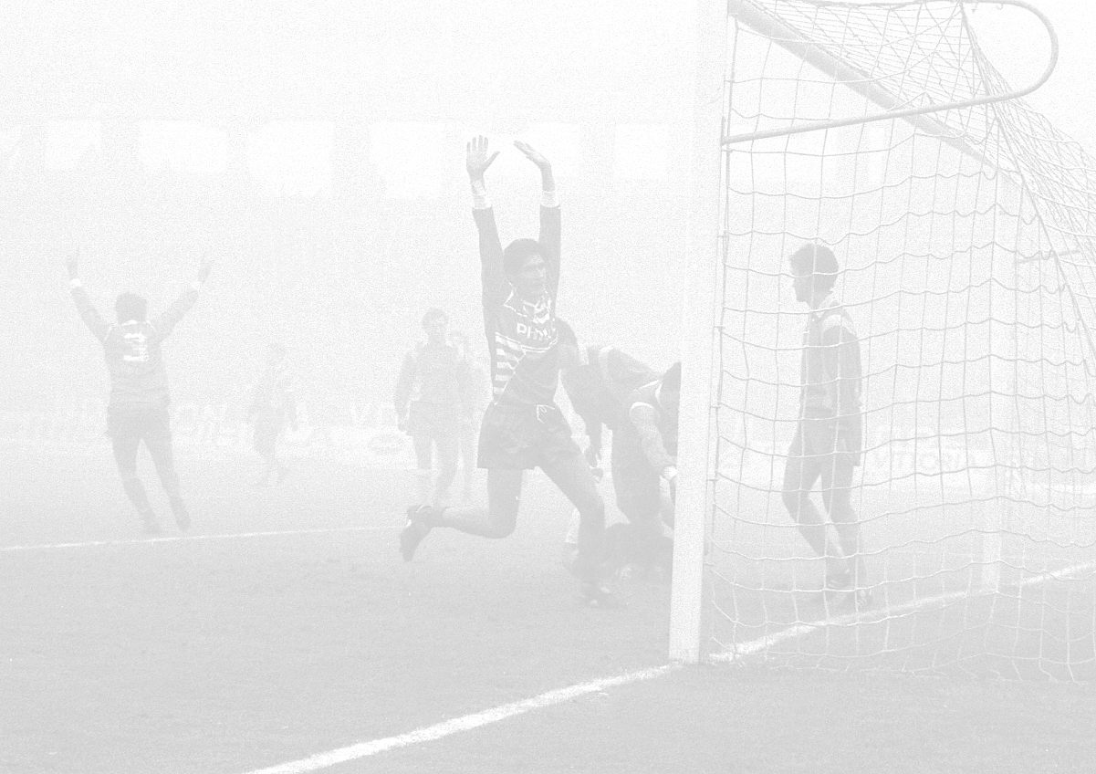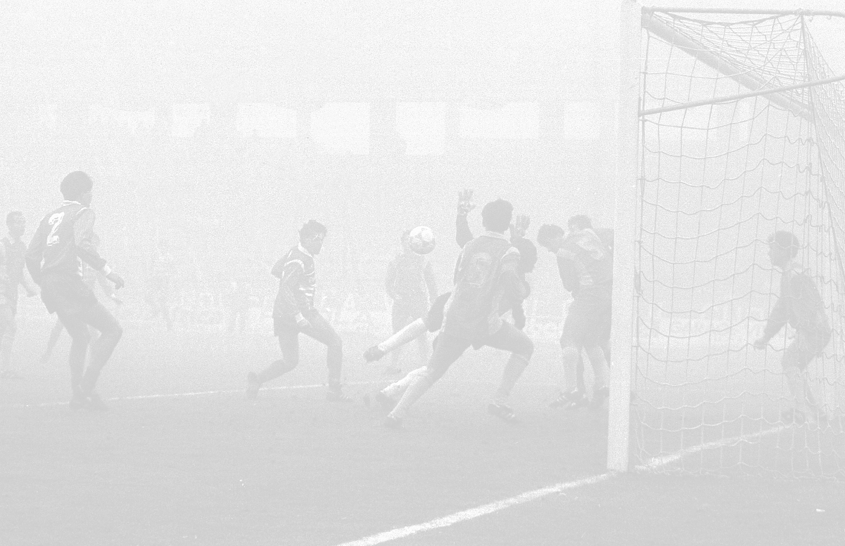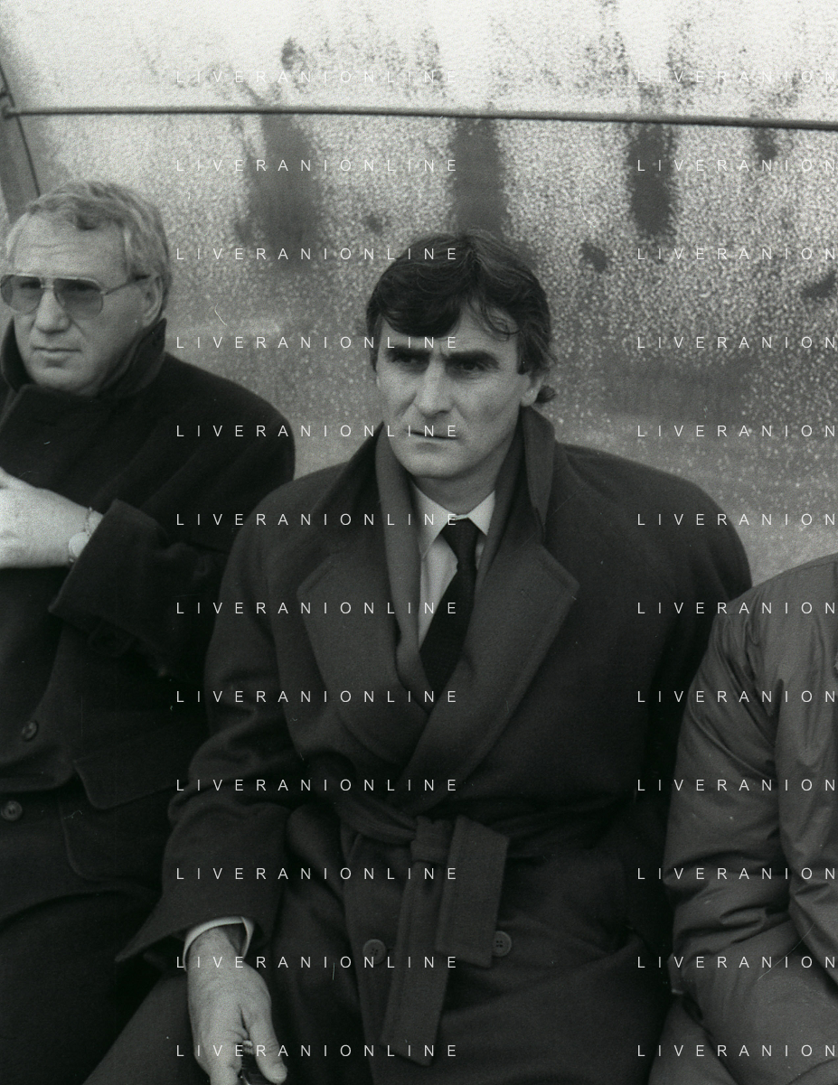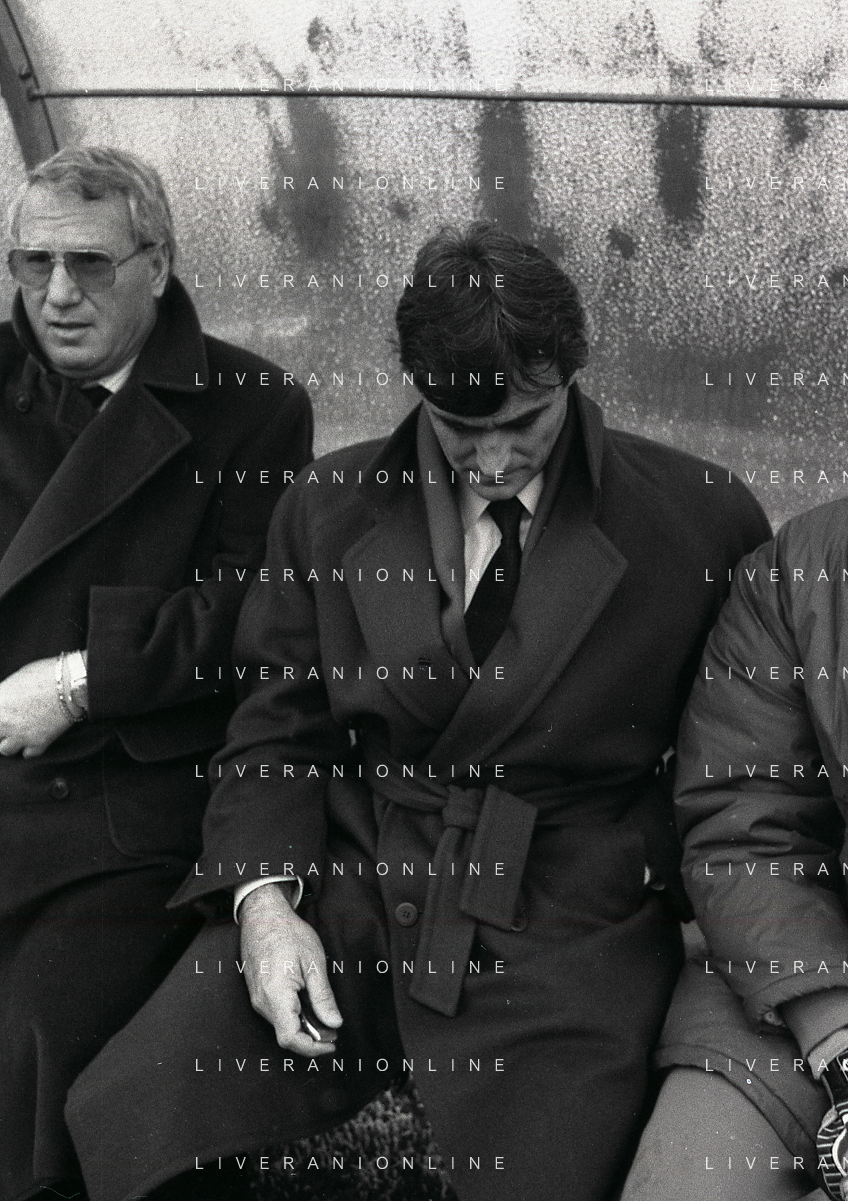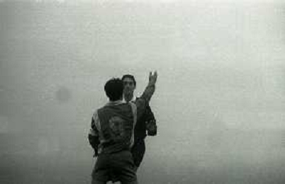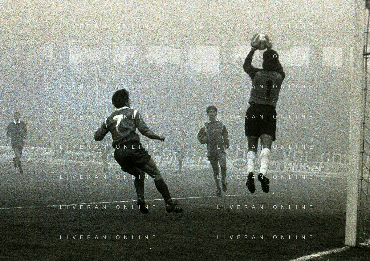 08-01-1989 MONZA CAMPIONATO DI CALCIO SERIE B MONZA-LICATA 4-0 NELLA FOTO L'ARBITRO ROBERT BOGGI CON GIUSEPPE ROMA IN MEZZO ALLA NEBBIA AG ALDO LIVERANI SAS