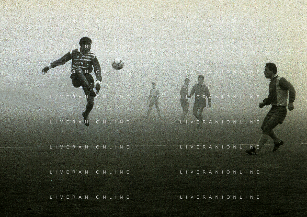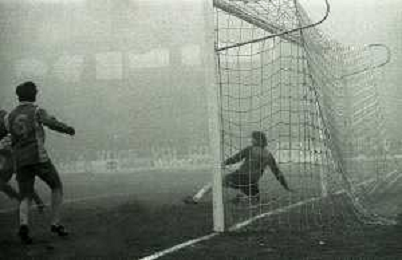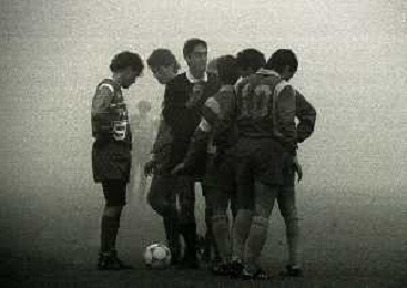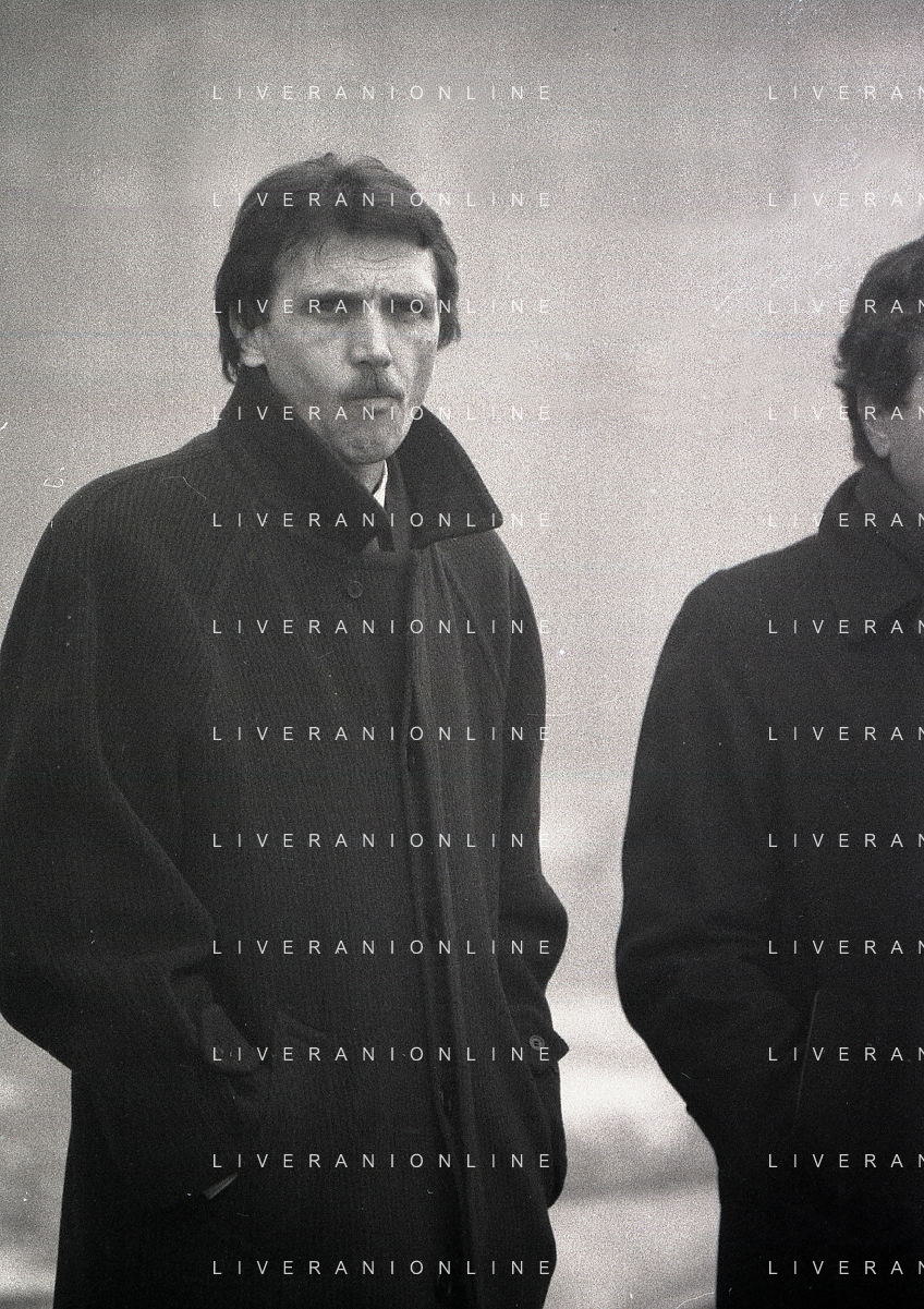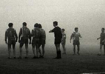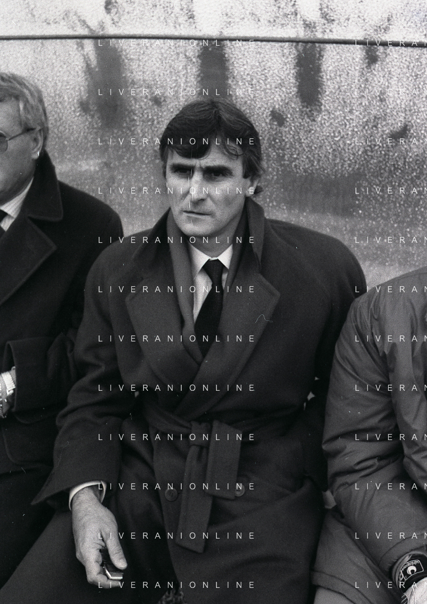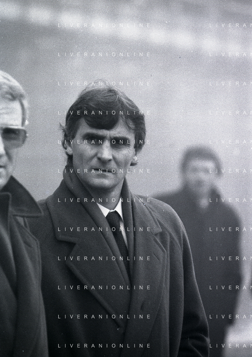 08-01-1989 MONZA CAMPIONATO DI CALCIO SERIE B MONZA-LICATA 4-0 NELLA FOTO L'ARBITRO ROBERT BOGGI CON GIUSEPPE ROMA IN MEZZO ALLA NEBBIA AG ALDO LIVERANI SAS
