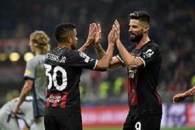 Junior Messias (Milan) e Olivier Giroud (Milan) esultano dopo il gol del 4 a 0 Milan vs Salisburgo Milano 02-11-2022 Stadio Giuseppe Meazza - San Siro UEFA Champions League fase a gironi gruppo E - 6a giornata foto Roberto Garavaglia/ag. Aldo Liverani sas/ AGENZIA ALDO LIVERANI SAS