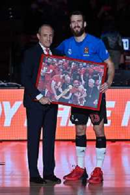 TVRG omaggio a Sergio Rodriguez (Real Madrid), da SX Kyle Hines (Olimpia Milano) e Sergio Rodriguez (Real Madrid) EA7 Emporio Armani Milano vs Real Madrid Assago (MI) 03-11-2022 Mediolanum Forum Turkish Airlines Euroleague 6a giornata regular season foto Roberto Garavaglia/ag. Aldo Liverani sas / AGENZIA ALDO LIVERANI SAS