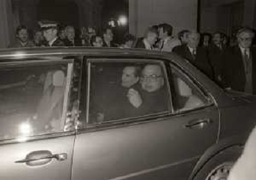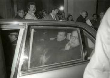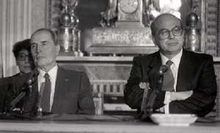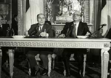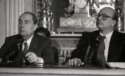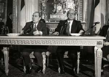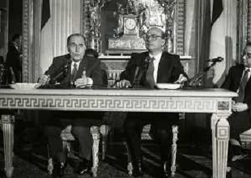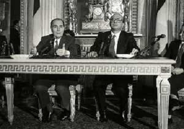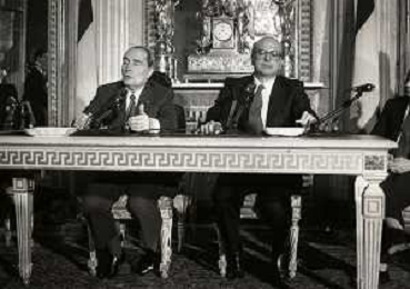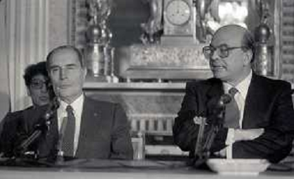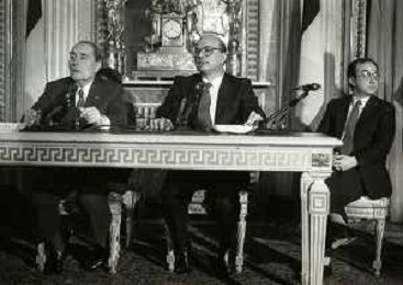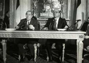 21-02-1984 MILANO INCONTRO BILATERALE ITALIA-FRANCIA CON ON BETTINO CRAXI E FRANCOIS MITTERAND MELLA FOTO LA CONFERENZA STAMPA DI FRANCOIS MITTERAND E BETTINO CRAXI AG ALDO LIVERANI SAS