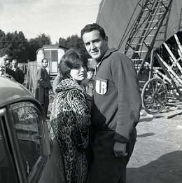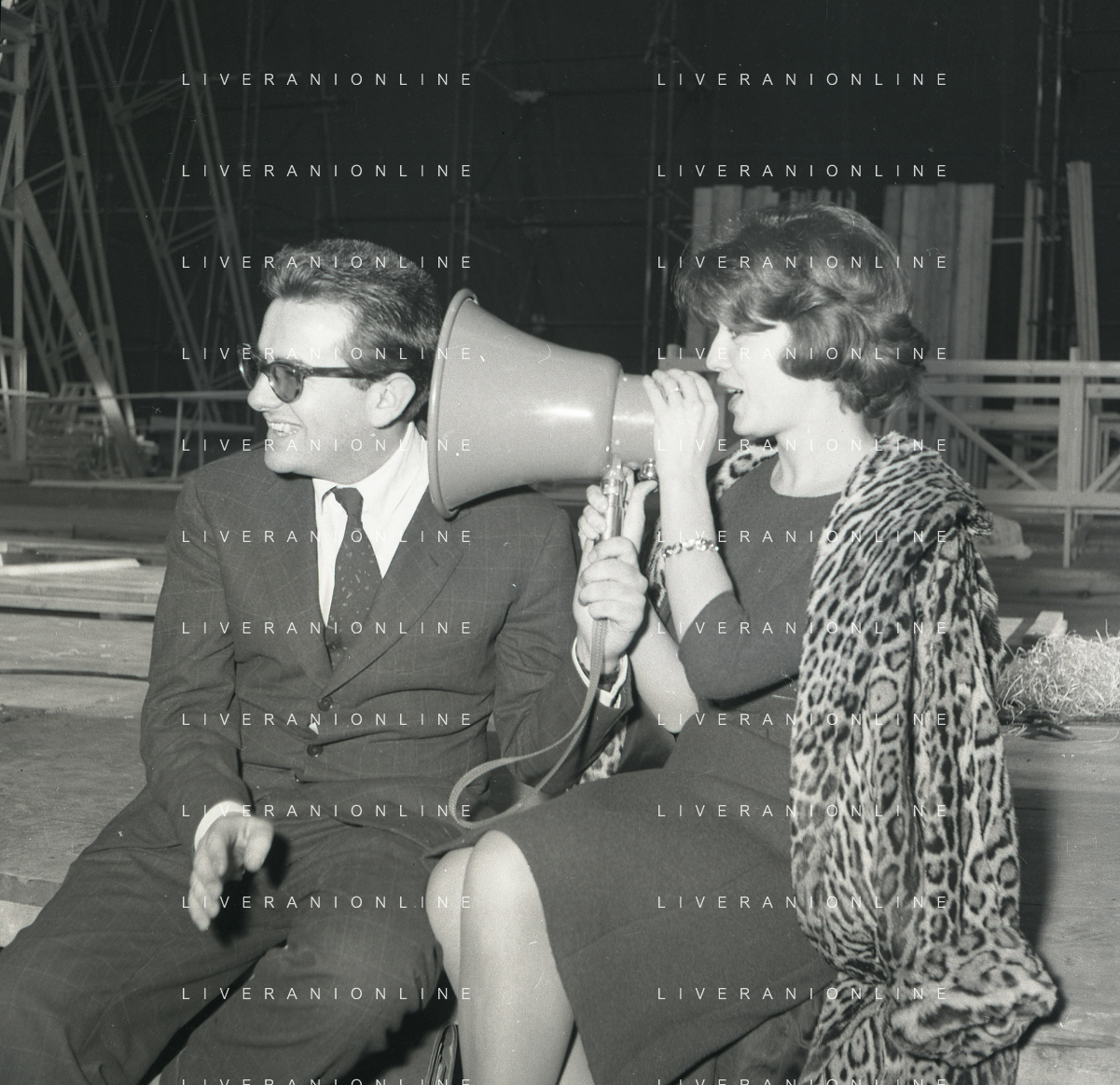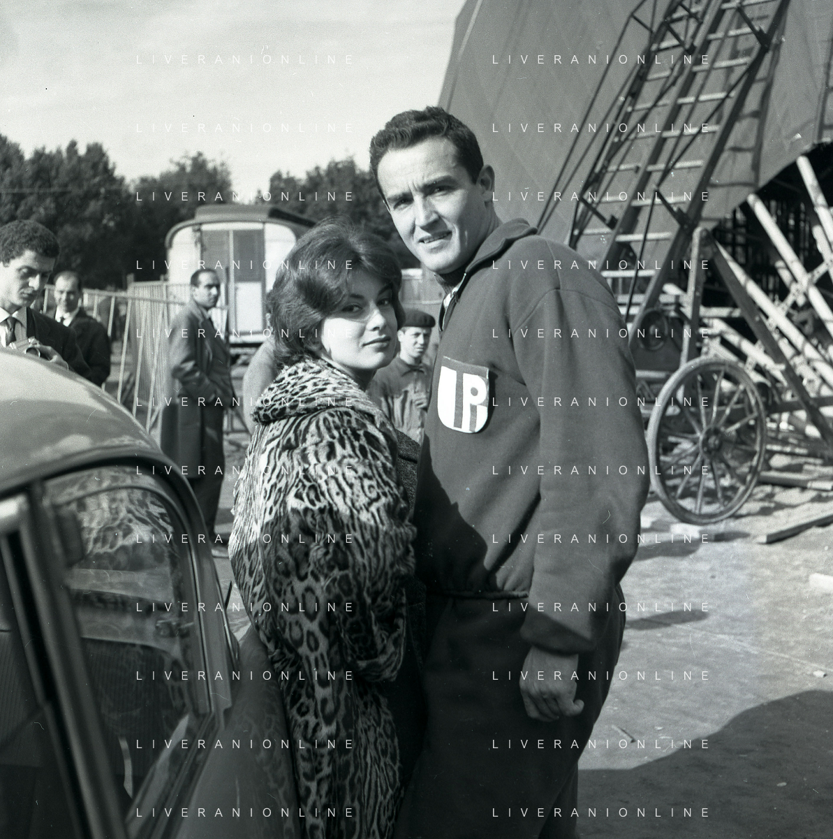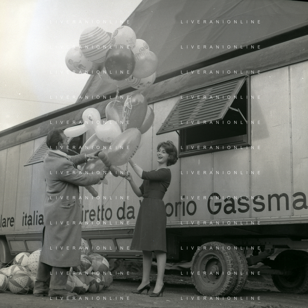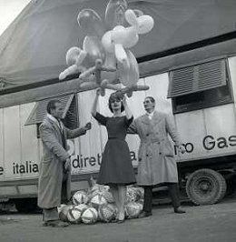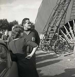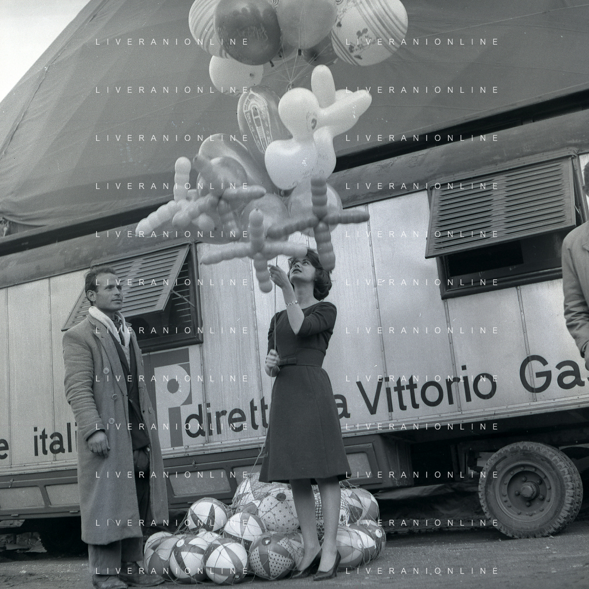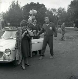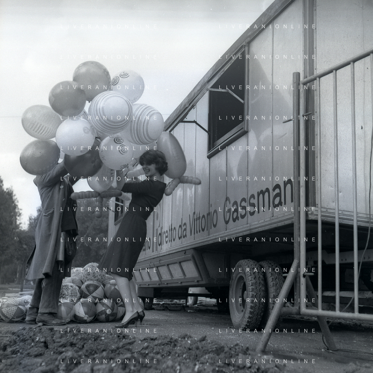 1960 ROMA -PARCO DEI DAINI IL TEATRO CIRCO POPOLARE DI VITTORIO GASSMAN NELLA FOTO ANNA MARIA FERRERO CON VITTORIO GASSMAN FOTO SANDRO VESPASIANI-AG ALDO LIVERANI SAS