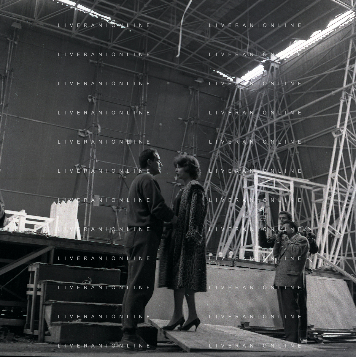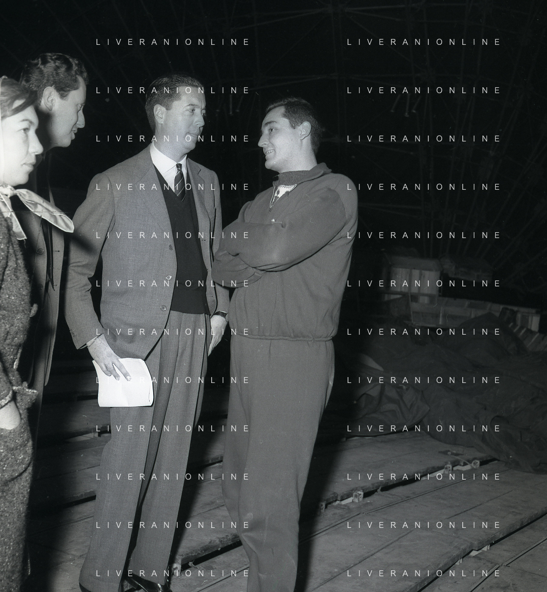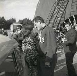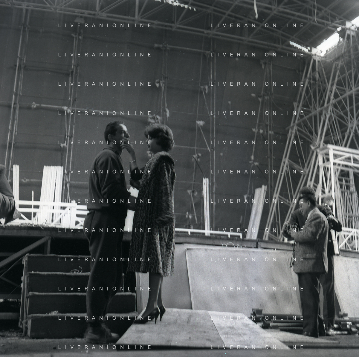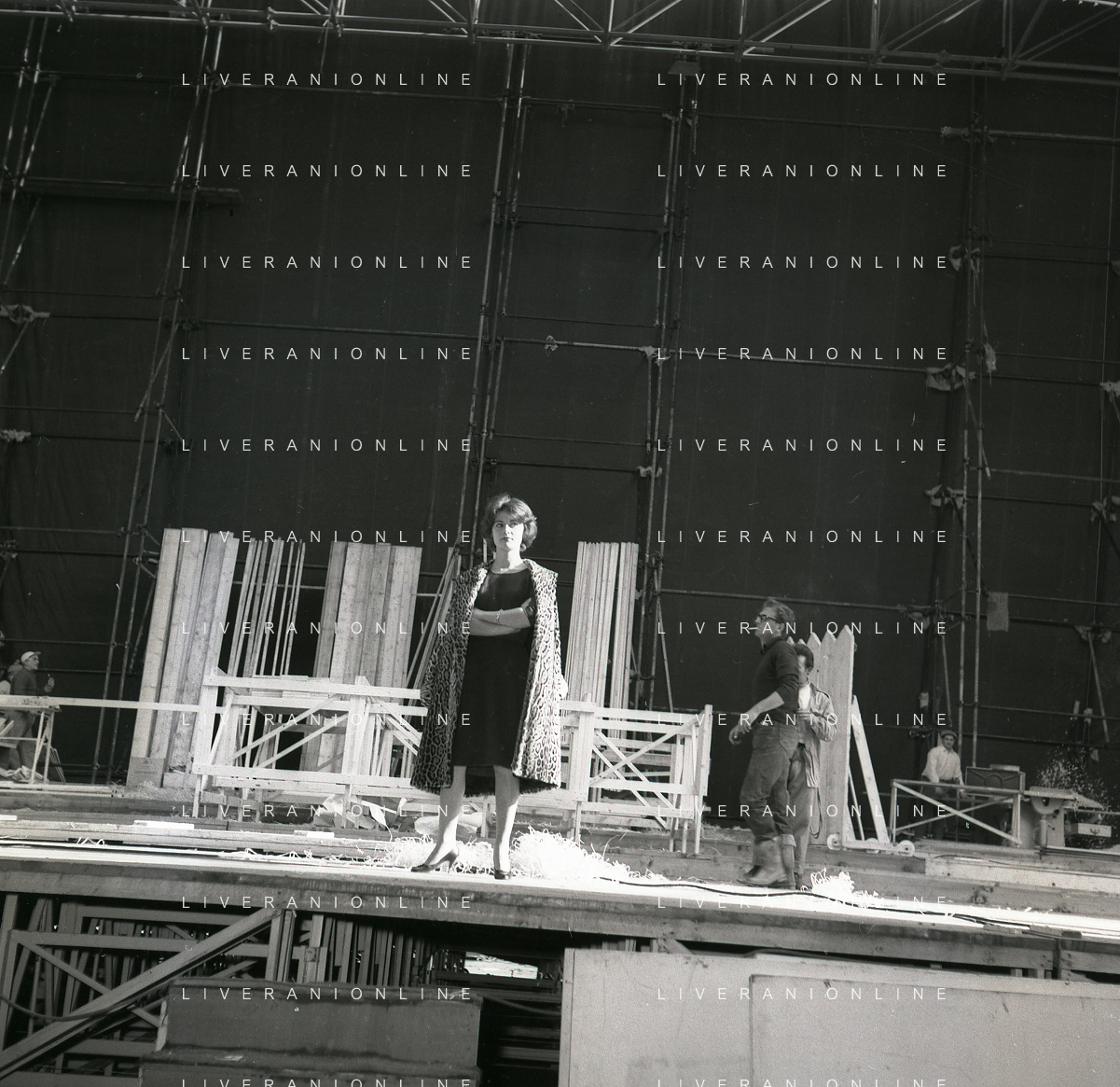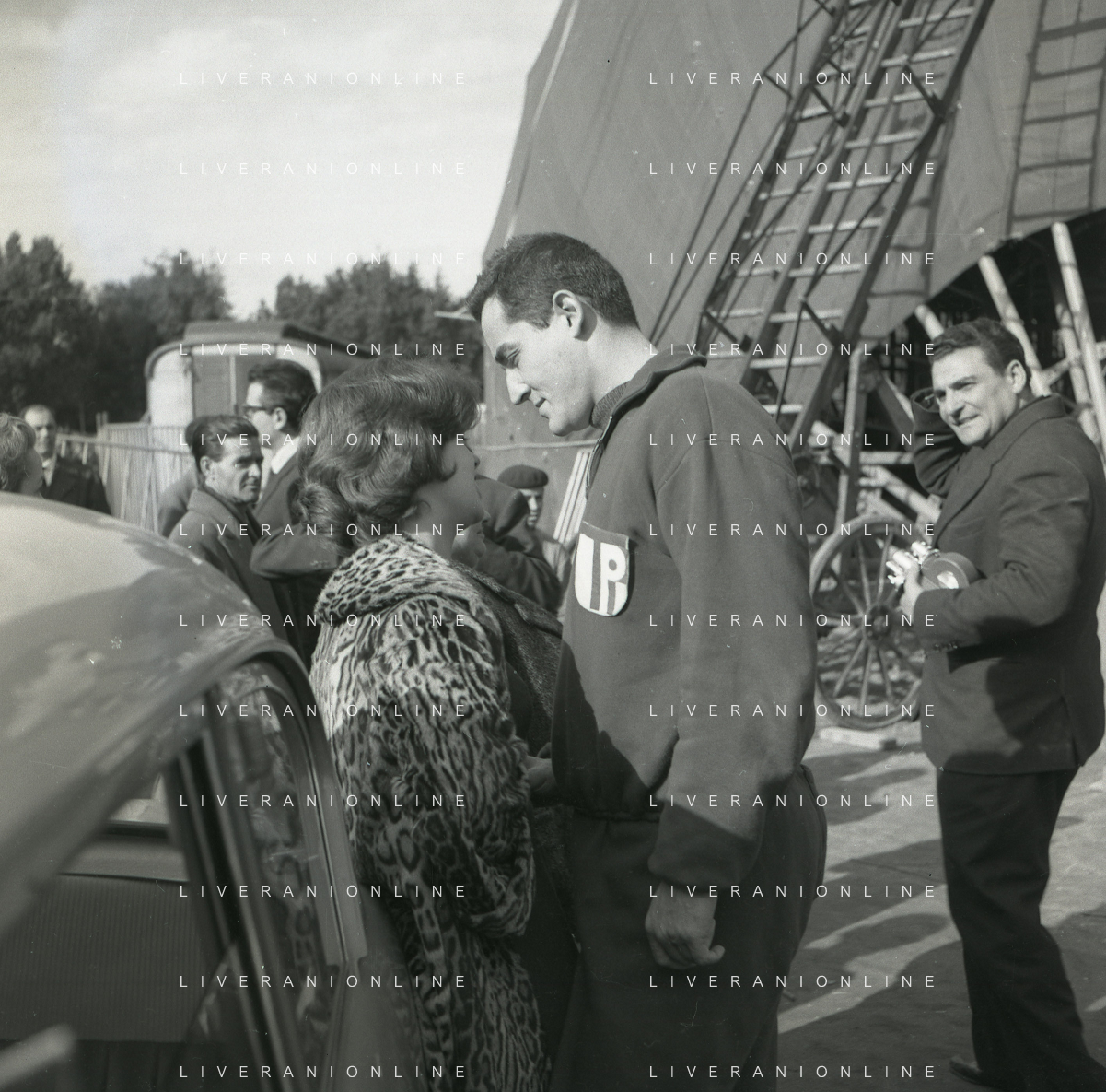 1960 ROMA -PARCO DEI DAINI IL TEATRO CIRCO POPOLARE DI VITTORIO GASSMAN NELLA FOTO ANNA MARIA FERRERO CON VITTORIO GASSMAN FOTO SANDRO VESPASIANI-AG ALDO LIVERANI SAS