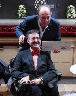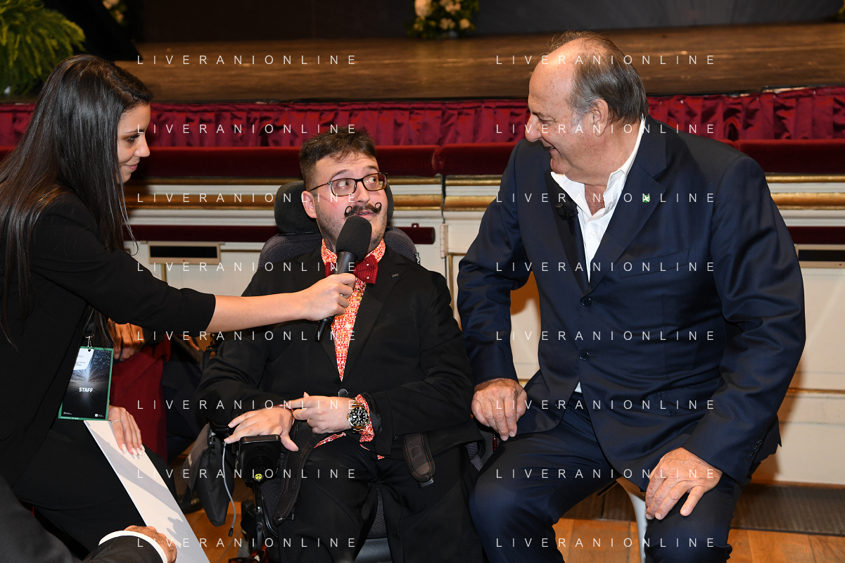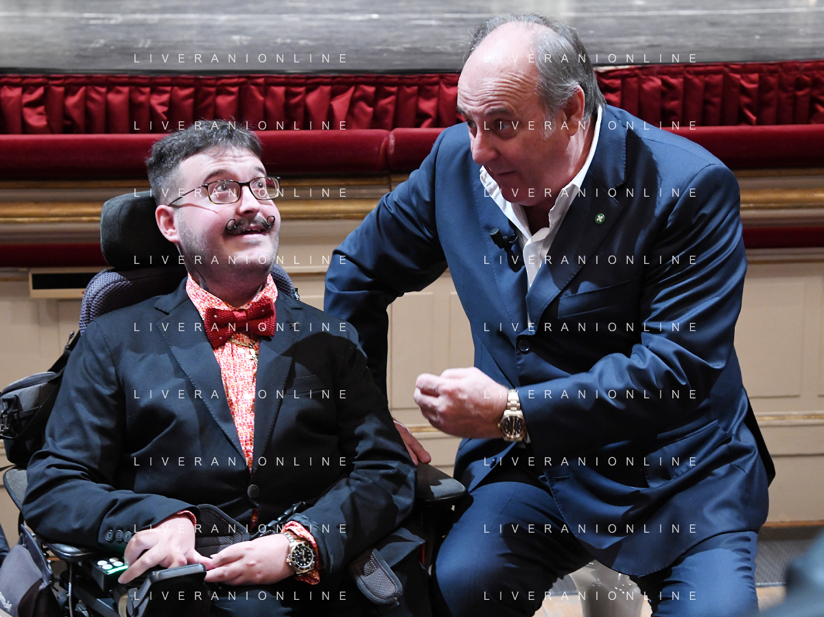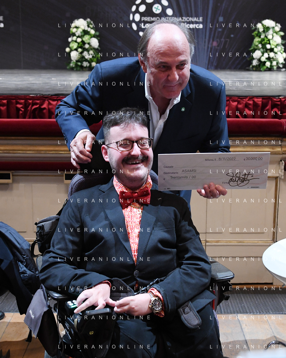 TVRG Giornata della Ricerca nella foto Simone Pedersoli SX e Jerry Scotti DX Milano 08-11-2022 Presso il Teatro alla Scala ha avuto luogo la Giornata della Ricerca con la consegna del premio internazionale Lombardia e' Ricerca foto agenzia Aldo Liverani sas / AGENZIA ALDO LIVERANI SAS