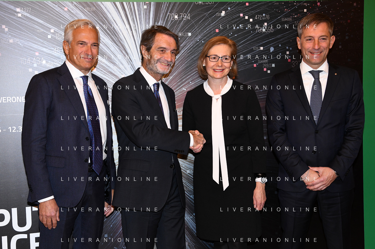 TVRG Giornata della Ricerca nella foto da SX Paolo Veronesi, Attilio Fontana, Rosalind Picard e Fabrizio Sala Milano 08-11-2022 Presso il Teatro alla Scala ha avuto luogo la Giornata della Ricerca con la consegna del premio internazionale Lombardia e' Ricerca foto agenzia Aldo Liverani sas / AGENZIA ALDO LIVERANI SAS