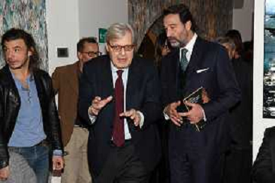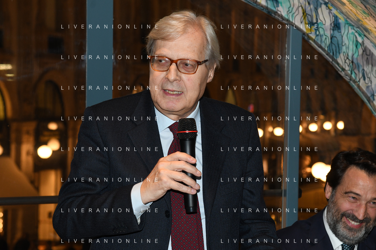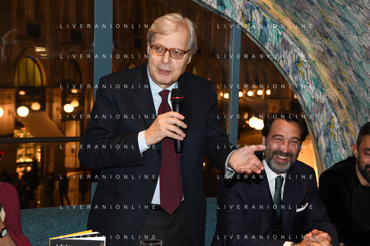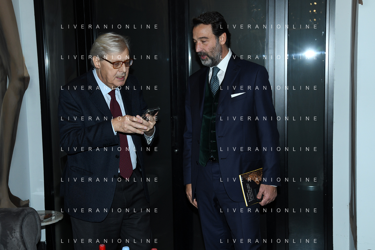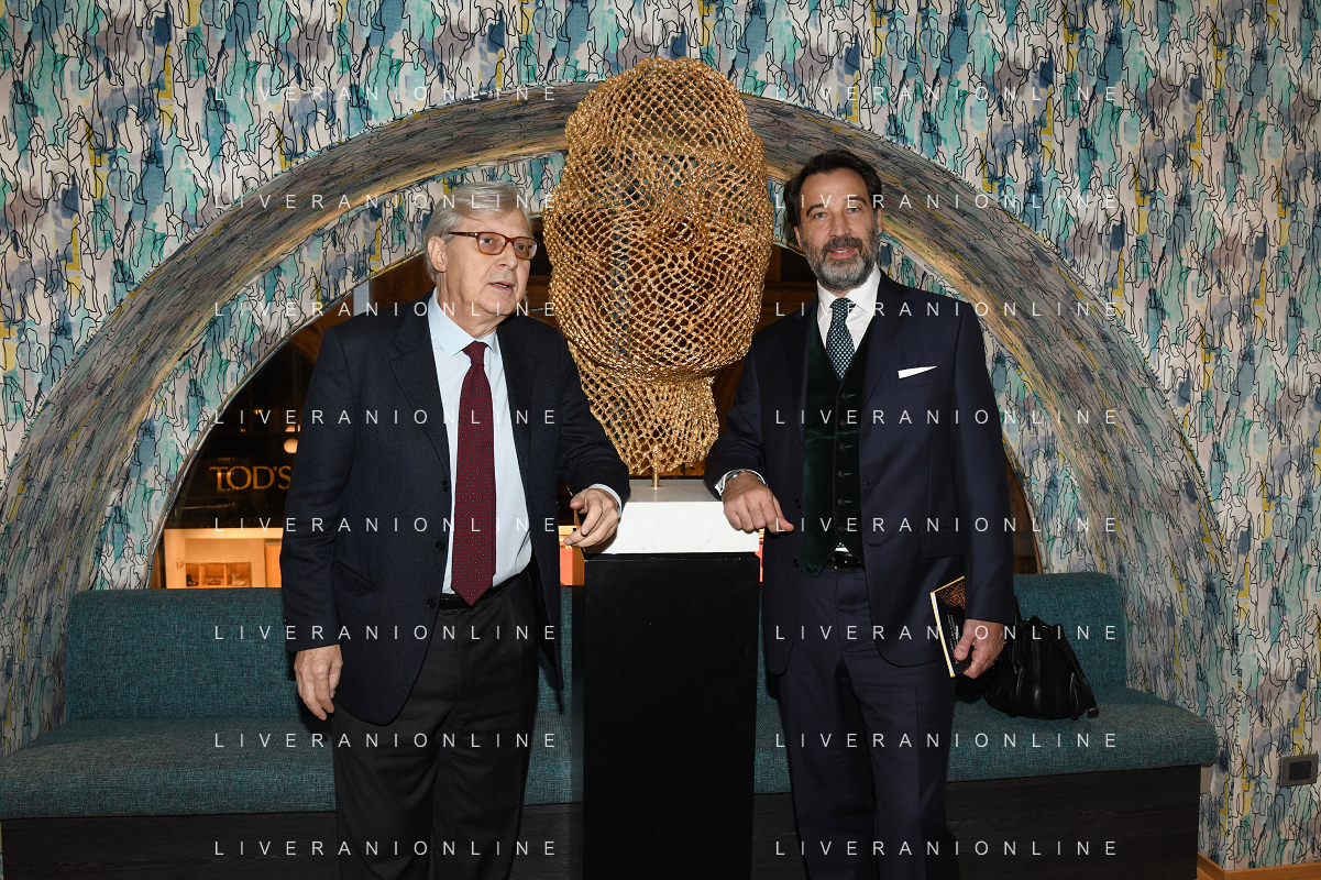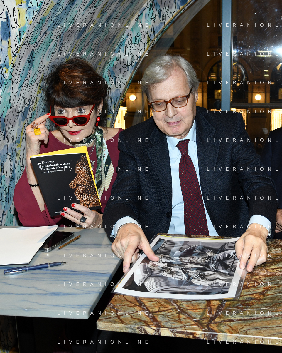 TVRG Mostra Jo Endoro nella foto Vittorio Sgarbi e sulla DX Jo Endoro Milano 16-11-2022 Inaugurazione presso la Galleria Vik di via Silvio Pellico della mostra Jo Endoro il miracolo della scultura ovvero being or nothingness foto Roberto Garavaglia/ag. Aldo Liverani sas / AGENZIA ALDO LIVERANI SAS