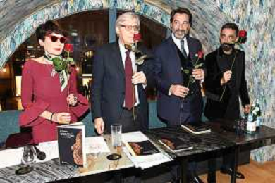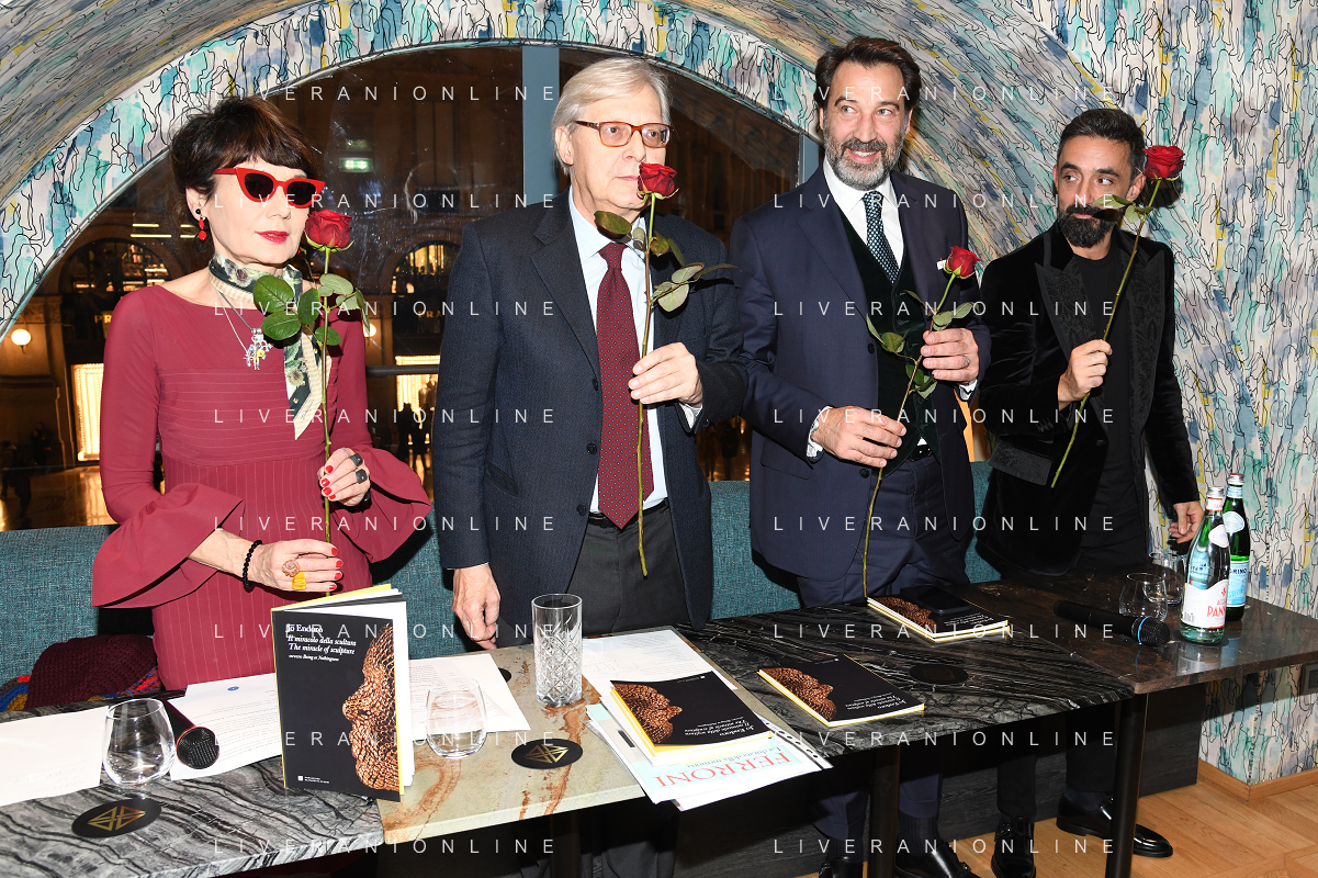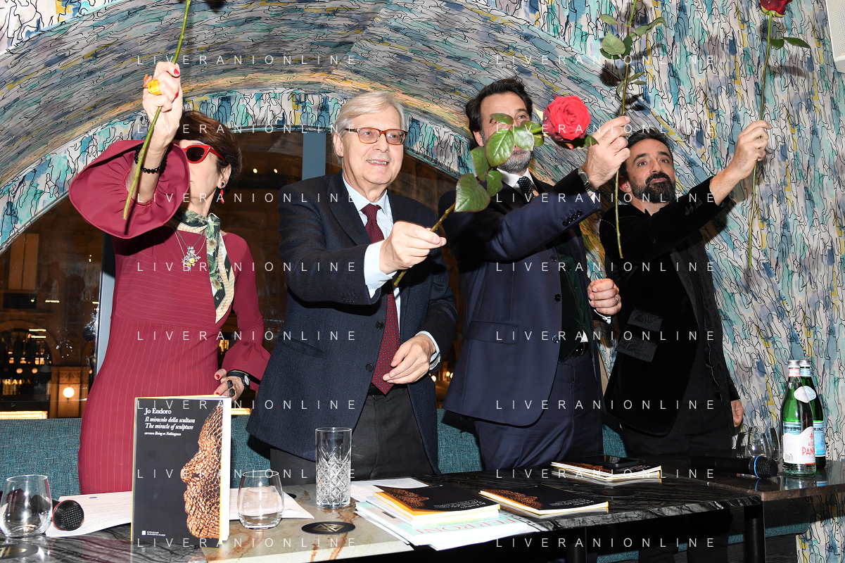 TVRG Mostra Jo Endoro nella foto da SX Elisabetta Sgarbi, Vittorio Sgarbi, Jo Endoro e Francesco Mazza Milano 16-11-2022 Inaugurazione presso la Galleria Vik di via Silvio Pellico della mostra Jo Endoro il miracolo della scultura ovvero being or nothingness foto Roberto Garavaglia/ag. Aldo Liverani sas / AGENZIA ALDO LIVERANI SAS