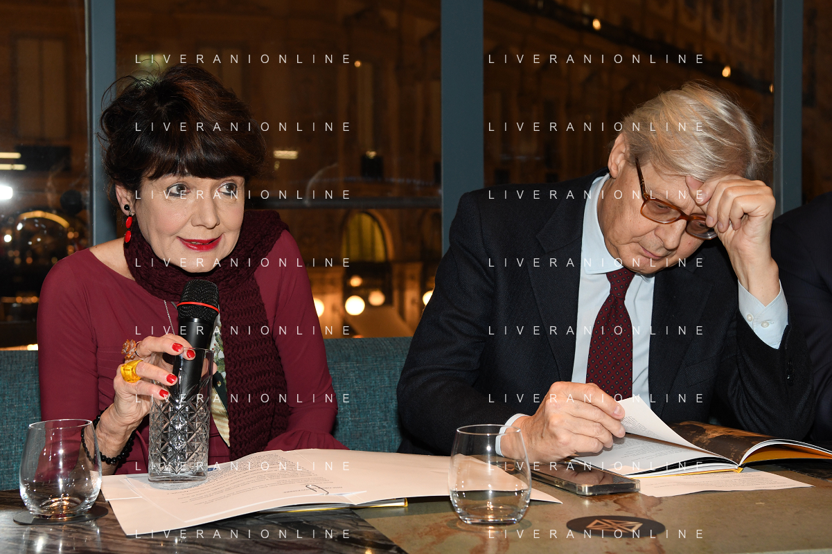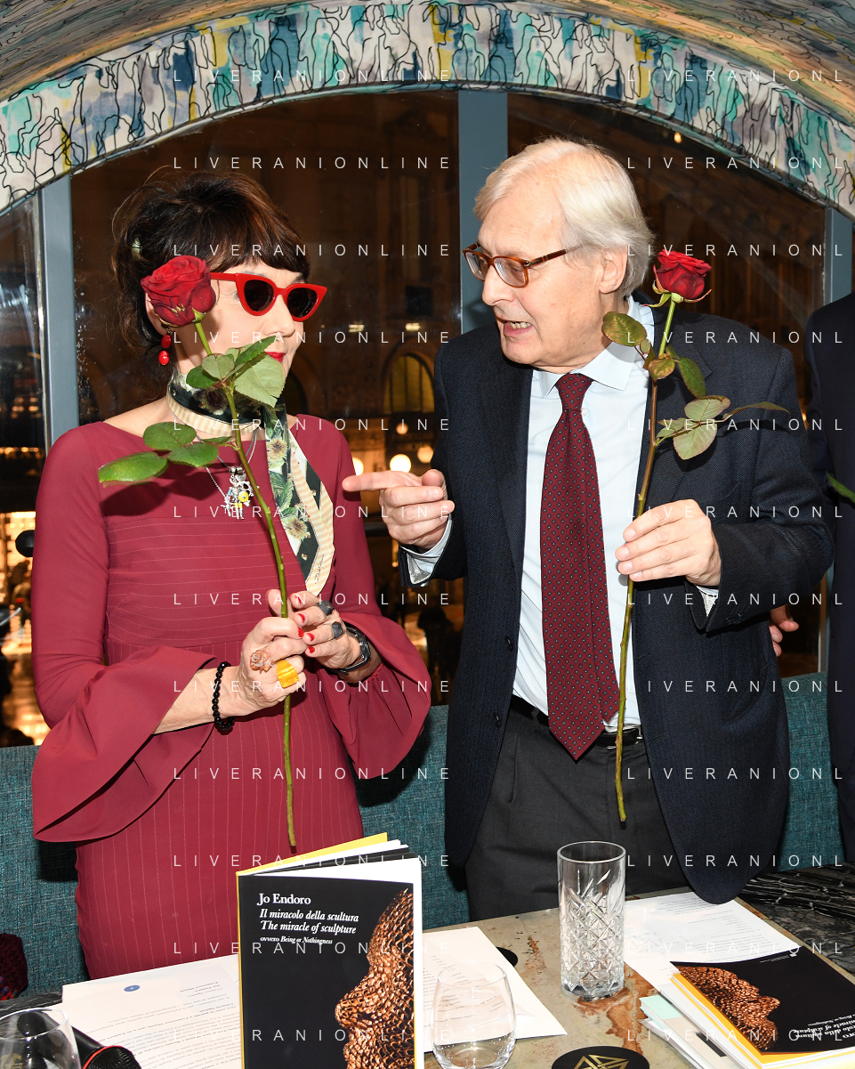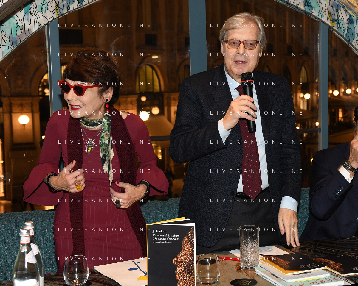 TVRG Mostra Jo Endoro nella foto Elisabetta Sgarbi e Vittorio Sgarbi Milano 16-11-2022 Inaugurazione presso la Galleria Vik di via Silvio Pellico della mostra Jo Endoro il miracolo della scultura ovvero being or nothingness foto Roberto Garavaglia/ag. Aldo Liverani sas / AGENZIA ALDO LIVERANI SAS