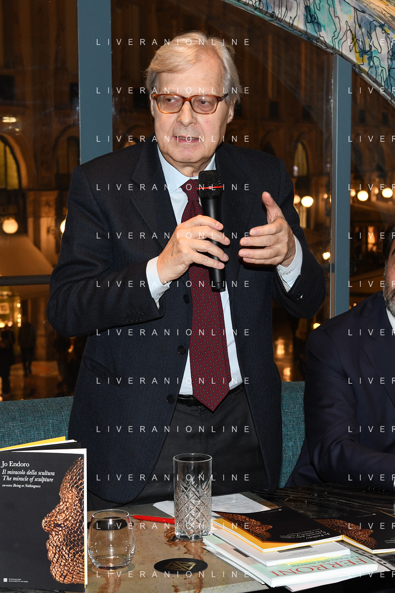 TVRG Mostra Jo Endoro nella foto Vittorio Sgarbi Milano 16-11-2022 Inaugurazione presso la Galleria Vik di via Silvio Pellico della mostra Jo Endoro il miracolo della scultura ovvero being or nothingness foto Roberto Garavaglia/ag. Aldo Liverani sas / AGENZIA ALDO LIVERANI SAS