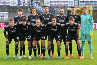 TVRG la formazionne della Juventus Next Gen, in piedi da SX Matias Soule', Martin Palumbo, Emanuele Pecorino, Fabrizio Poli, Alessandro Pio Riccio e Marco Raina; in basso da SX Michele Besaggio, Tommaso Barbieri, Simone Iocolano, Giuseppe Verduci e Nicolo' Cudrig Pro Patria vs Juventus Next Gen Busto Arsizio (VA) 19-11-2022 Stadio Carlo Speroni Campionato Serie C girone A - 14a giornata foto Roberto Garavaglia/ag. Aldo Liverani sas