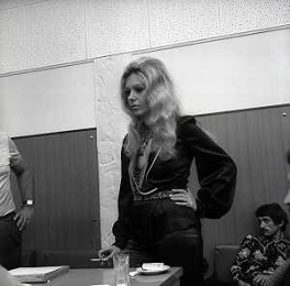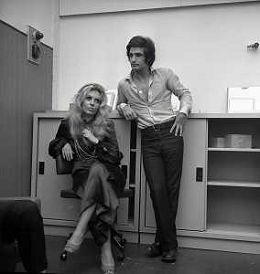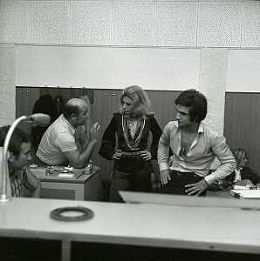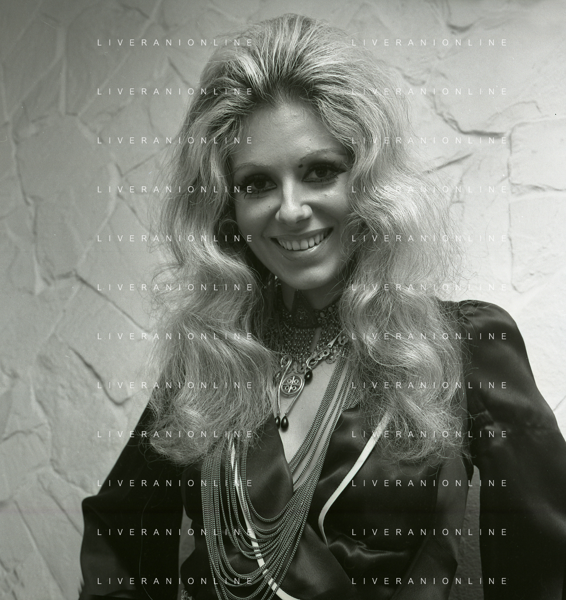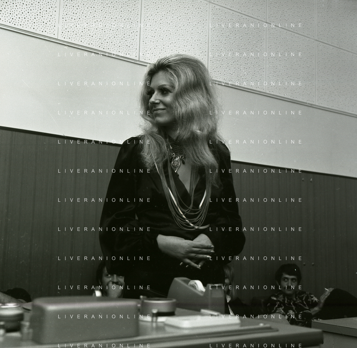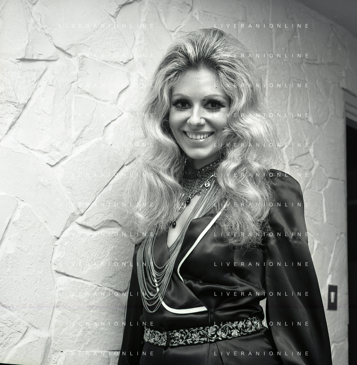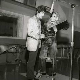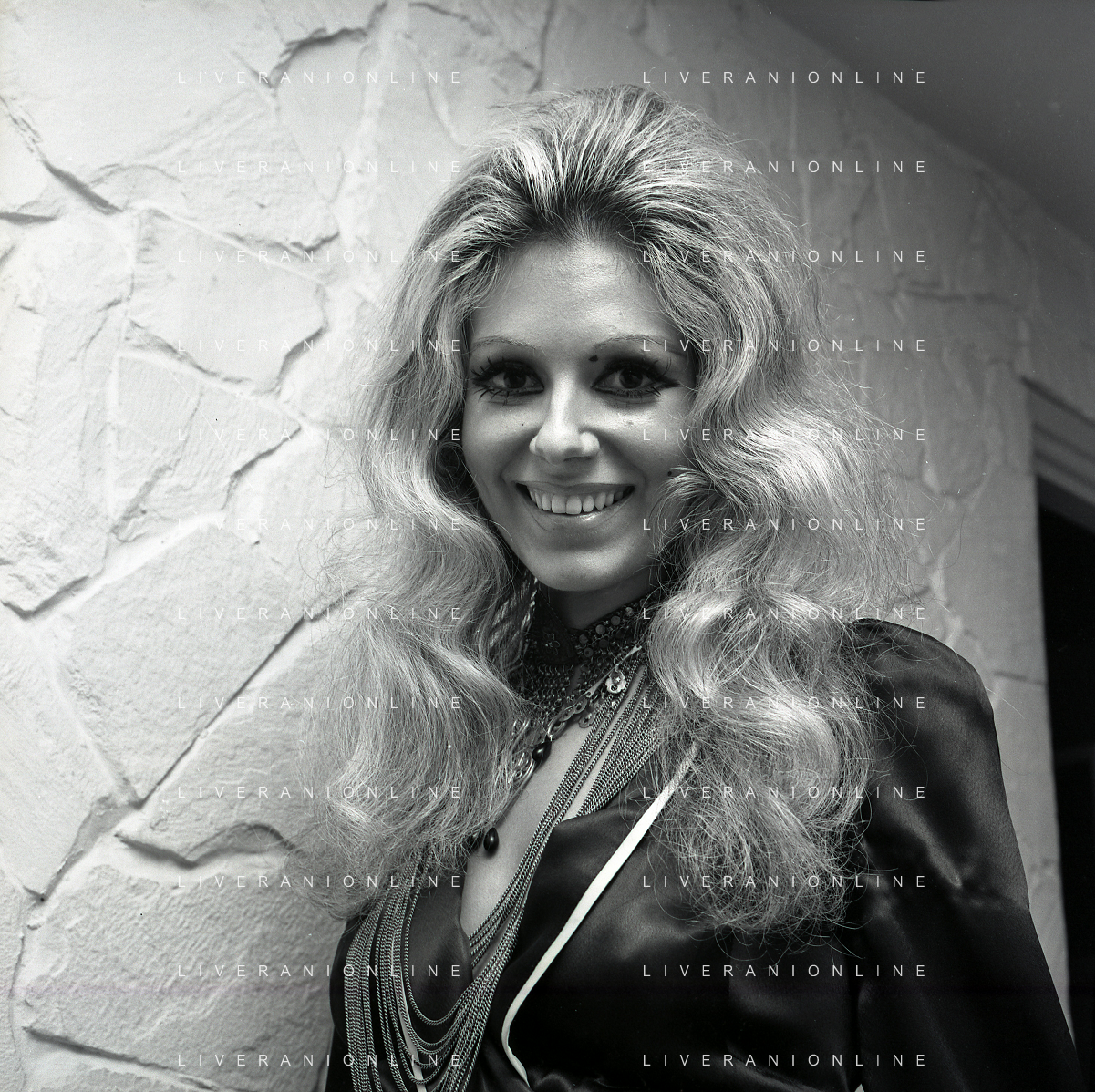 RETROSPETTIVA OMBRETTA COLLI CANTANTE E ATTRICE NELLA FOTO OMBRETTA COLLI NELL'ANNO 1969 A MILANO IN SALA D'INCISIONE CON GIORGIO GABER AG ALDO LIVERANI SAS
