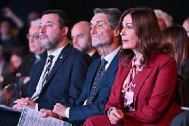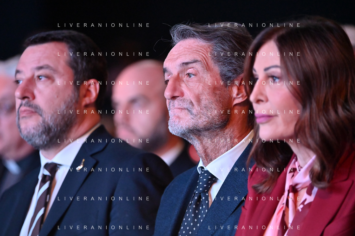 TVRG Lombardia 2030 nella foto da SX Matteo Salvini, Attilio Fontana e Daniela Santanche' Milano 28-11-2022 Convegno Lombardia 2030 presso la Pirelli Hangar Bicocca foto Roberto Garavaglia/ag. Aldo Liverani sas/ AGENZIA ALDO LIVERANI SAS