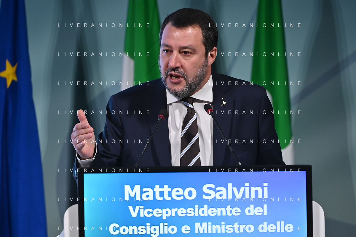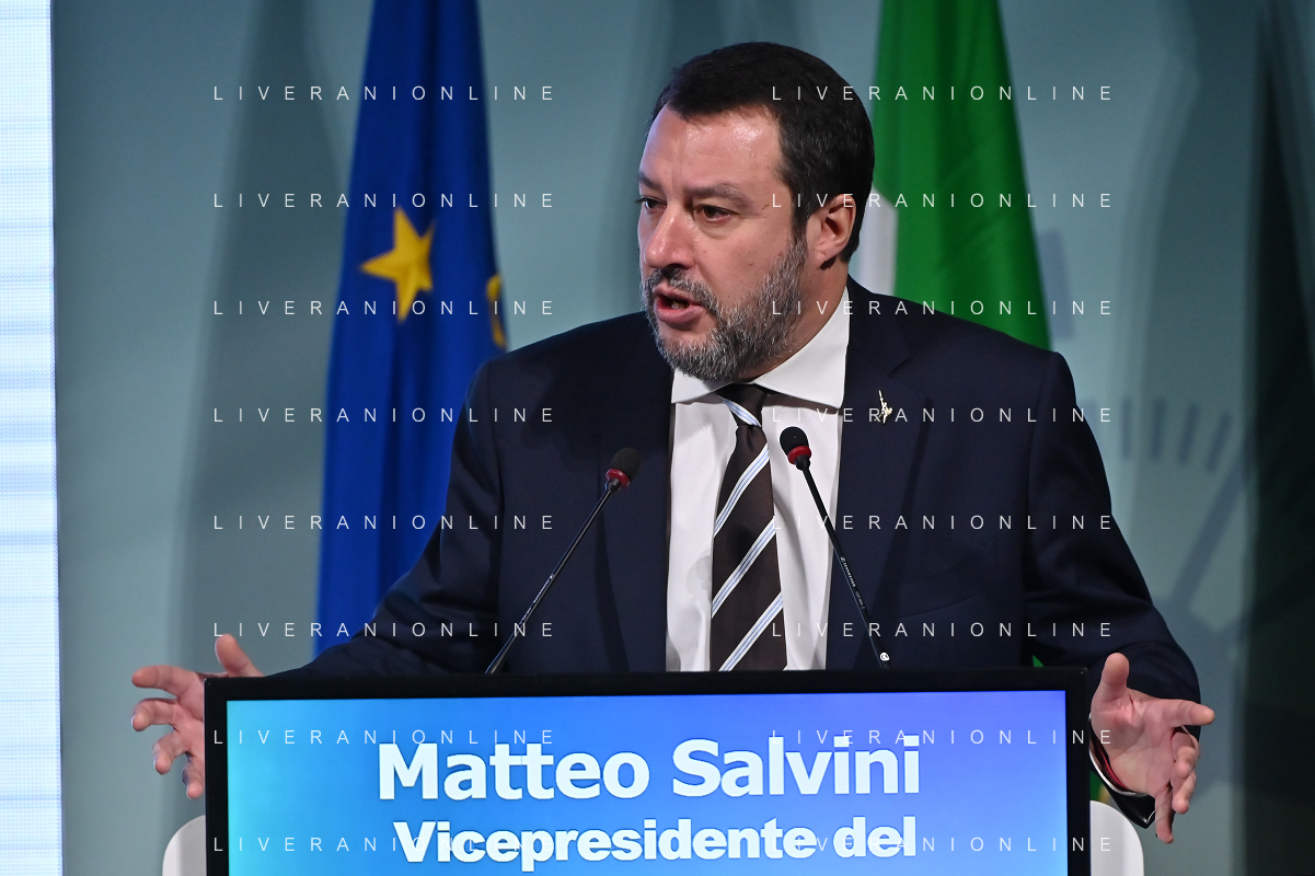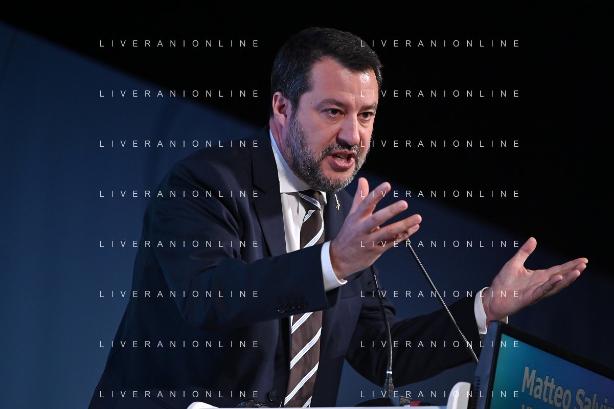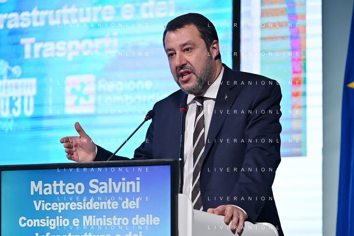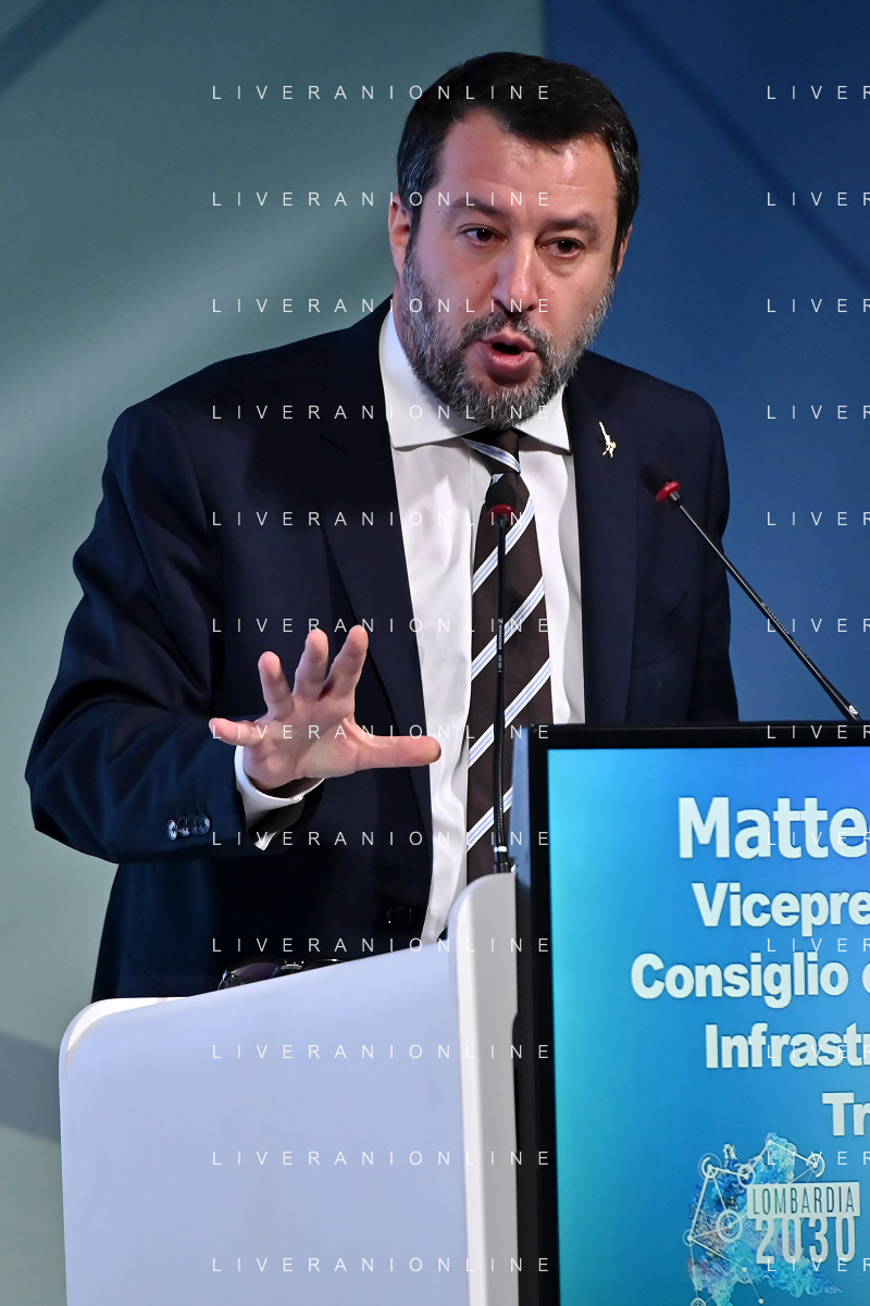 TVRG Lombardia 2030 nella foto Matteo Salvini vicepresidente del Consiglio e ministro delle infrastrutture e dei trasporti Milano 28-11-2022 Convegno Lombardia 2030 presso la Pirelli Hangar Bicocca foto Roberto Garavaglia/ag. Aldo Liverani sas/ AGENZIA ALDO LIVERANI SAS