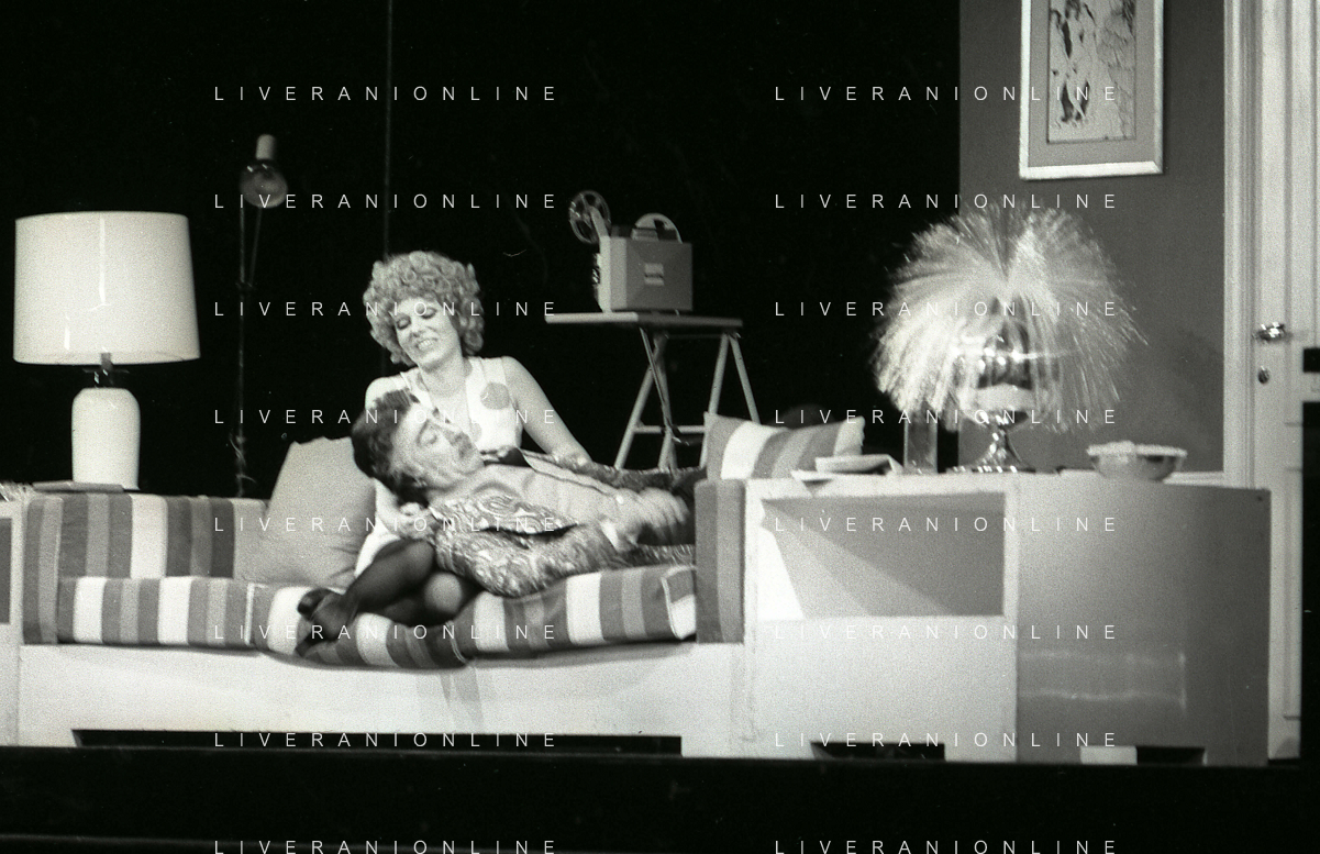 RETROSPETTIVA OMBRETTA COLLI CANTANTE E ATTRICE NELLA FOTO OMBRETTA COLLI CON GINO BRAMIERI NELL'ANNO 1973 AL TEATRO NELLA COMMEDIA“CIELO MIO MARITO“ AG ALDO LIVERANI SAS