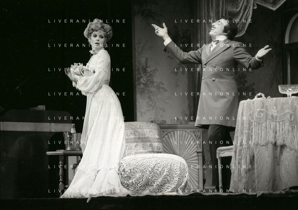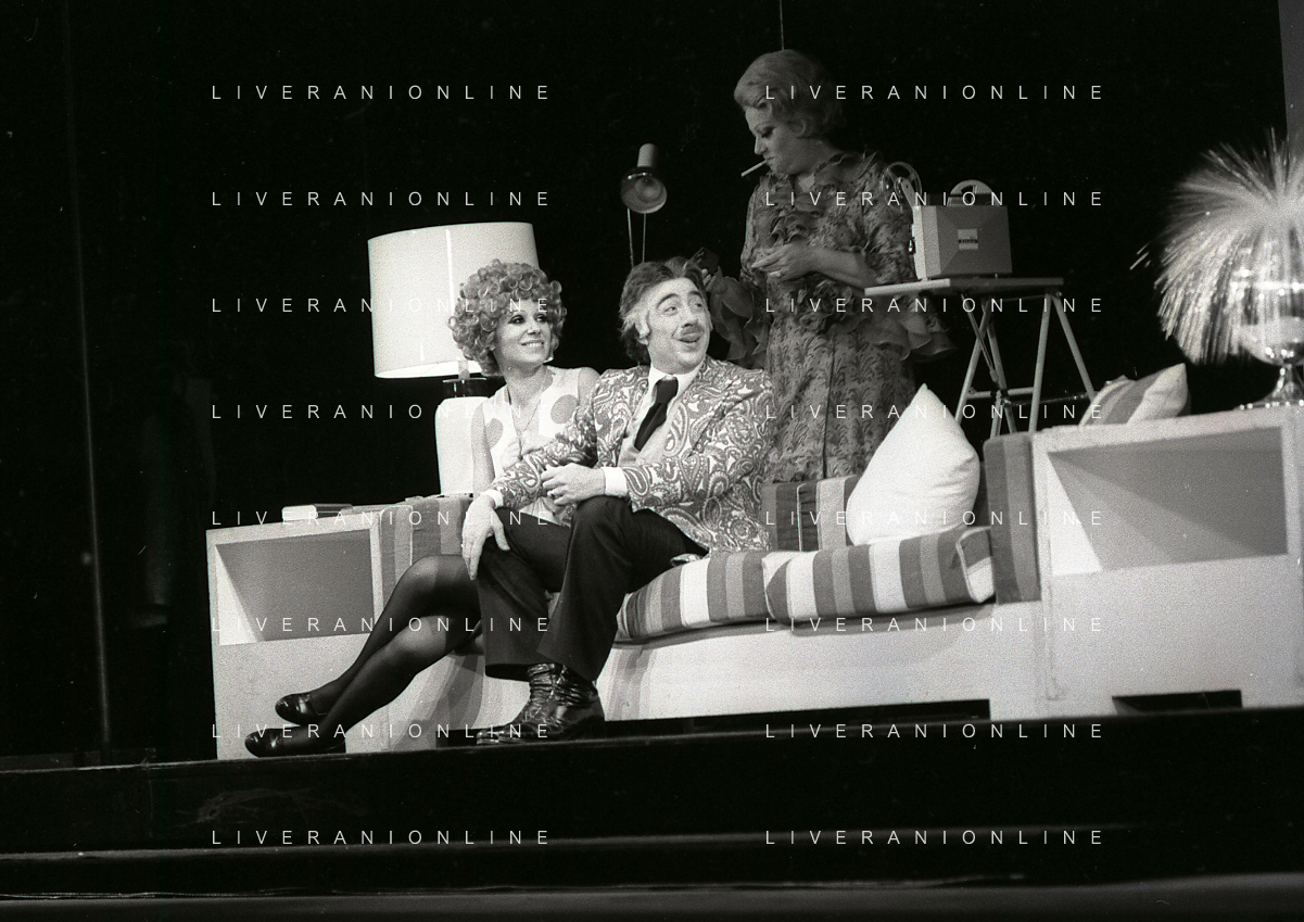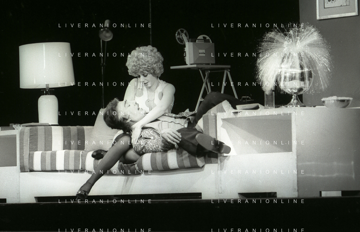 RETROSPETTIVA OMBRETTA COLLI CANTANTE E ATTRICE NELLA FOTO OMBRETTA COLLI CON GINO BRAMIERI NELL'ANNO 1973 AL TEATRO NELLA COMMEDIA“CIELO MIO MARITO“ AG ALDO LIVERANI SAS