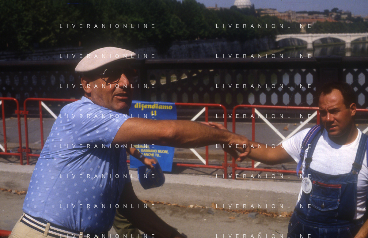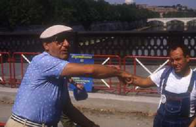 RETROSPETTIVA ALBERTO SORDI ATTORE NELLA FOTO ALBERTO SORDI A ROMA CON CARLO VERDONE SUL SET DEL FILM“IN VIAGGIO CON PAPA“ NELL'ANNO 1982 AG ALDO LIVERANI SAS
