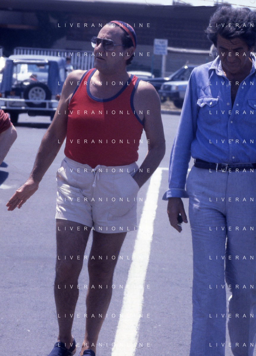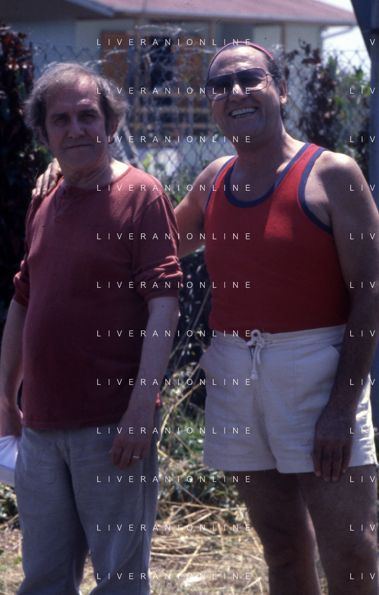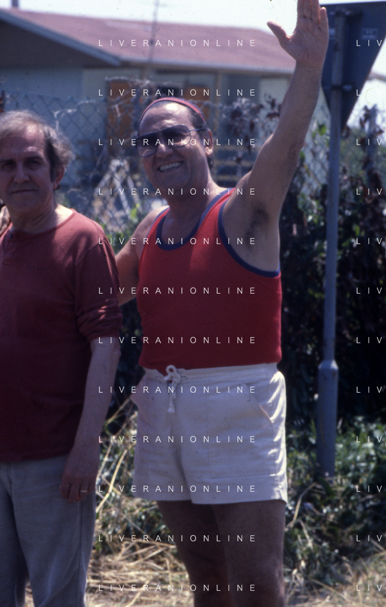RETROSPETTIVA ALBERTO SORDI ATTORE NELLA FOTO ALBERTO SORDI A FREGENE NELL'ANNO 1981 CON NANNI LOI AG ALDO LIVERANI SAS