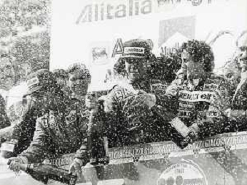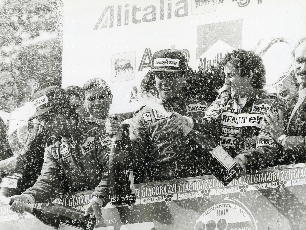 ST-RETROSPETTIVA PATRICK TAMBAY PILOTA F1 NELLA FOTO PATRICK TAMBAY CON RENE' ARNOUX E ALAIN PROST A IMOLA AG ALDO LIVERANI SAS