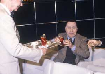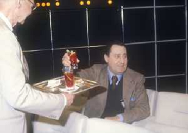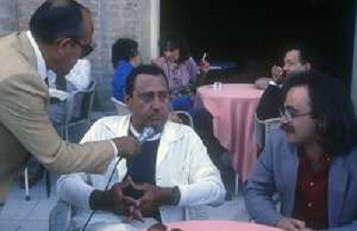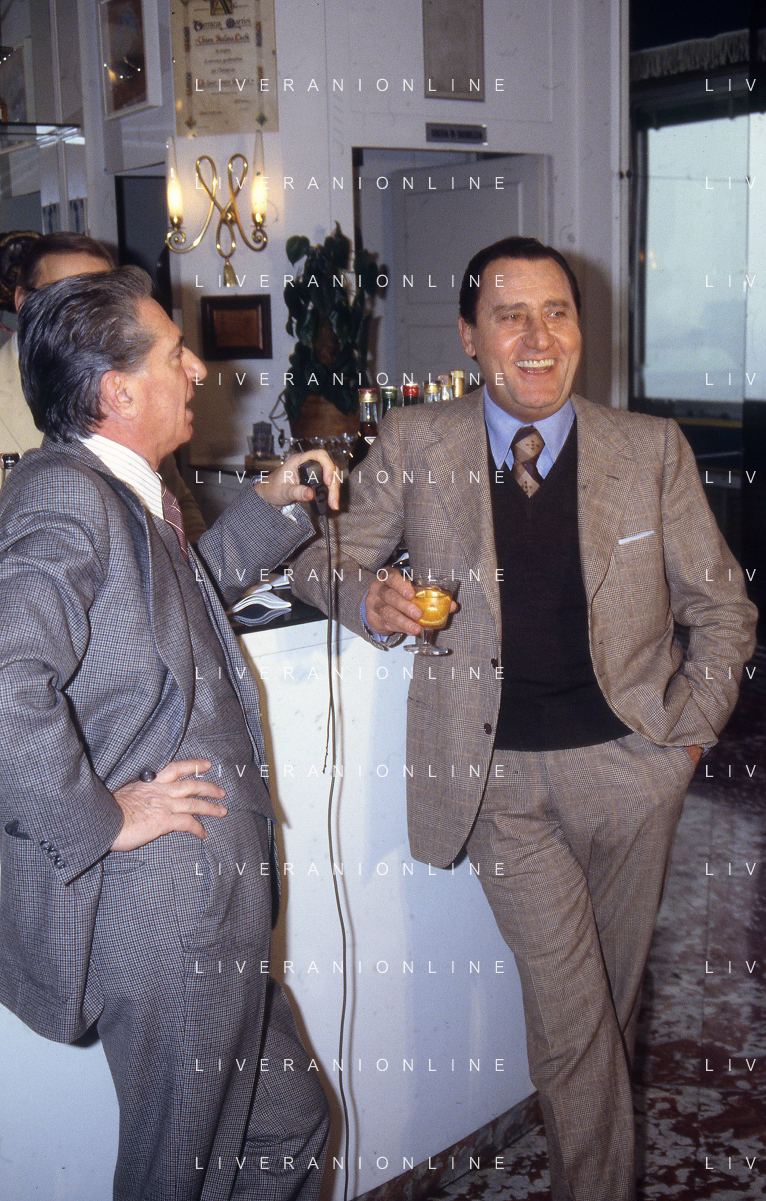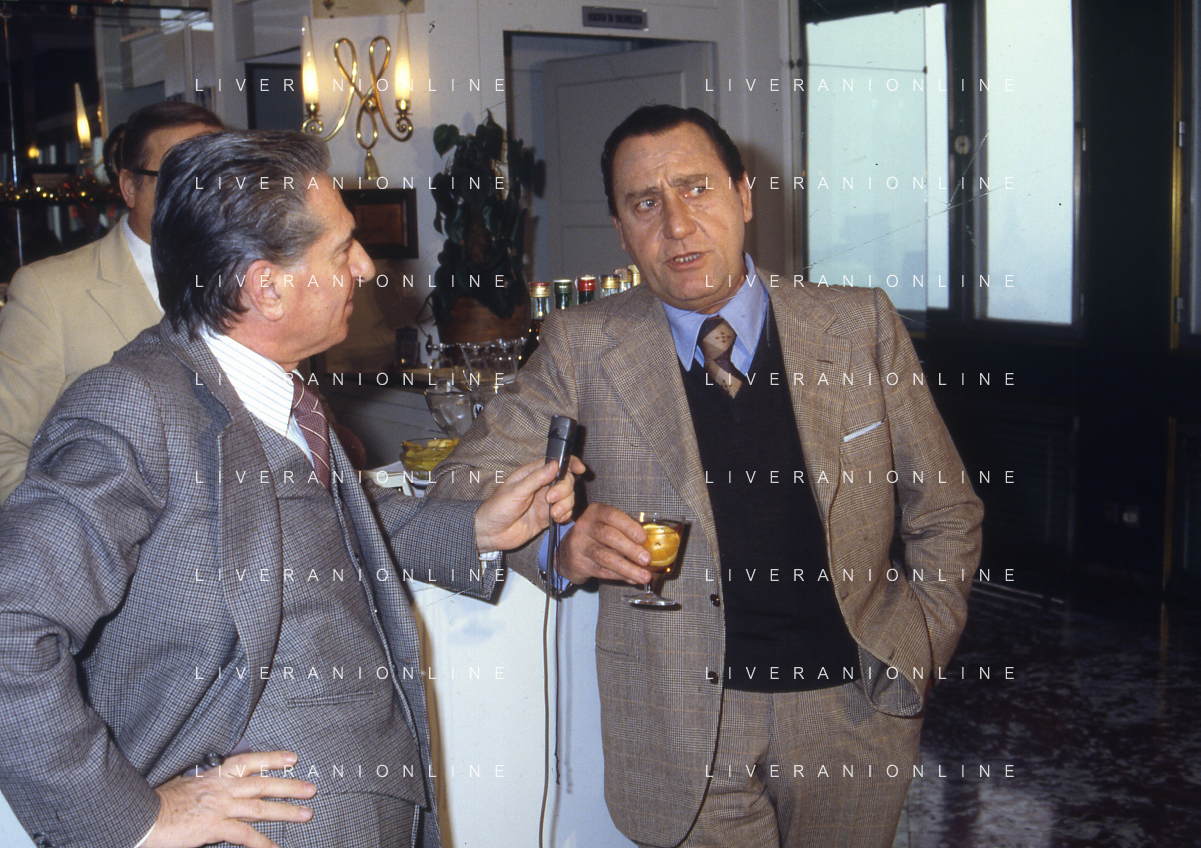 RETROSPETTIVA ALBERTO SORDI ATTORE NELLA FOTO ALBERTO SORDI CON MAURIZIO NICHETTI INTERVISTATI DAL GIORNALISTA LELLO BERSANI AG ALDO LIVERANI SAS