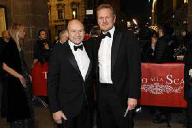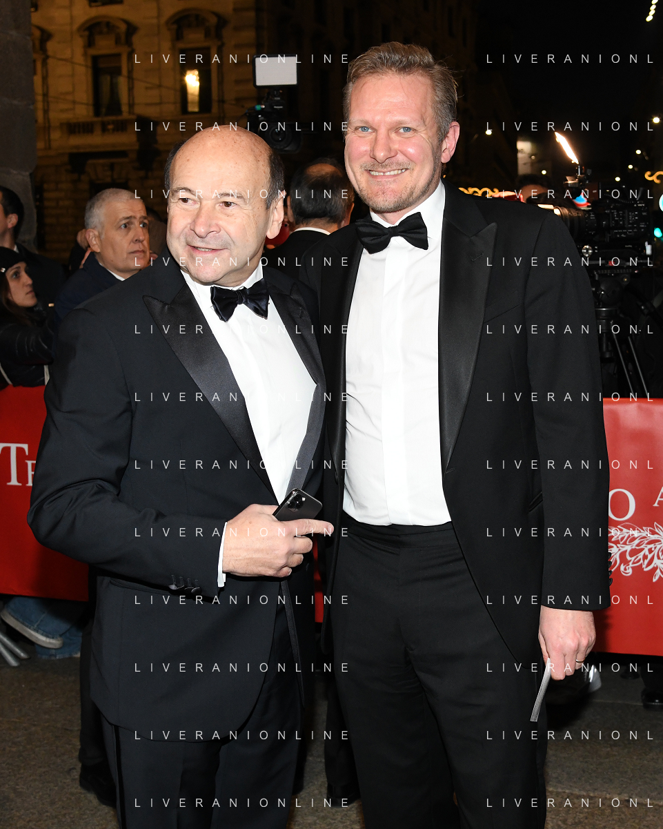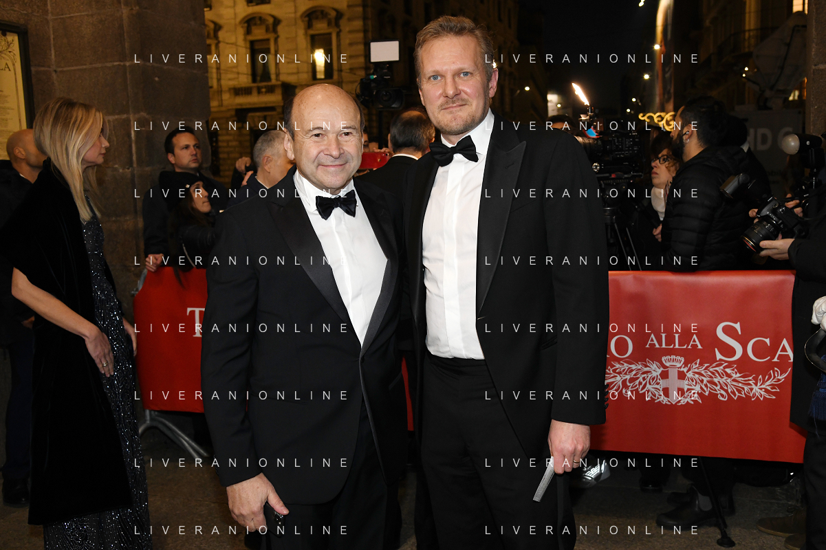 TVRG Prima alla Scala nella foto Dominique Meyer SX sovrintendente e direttore artistico del Teatro alla Scala e Kasper Holten DX regista dell'opera Milano 07-12-2022 Arrivo delle personalita' per assistere alla prima del Teatro alla Scala foto Roberto Garavaglia/ag. Aldo Liverani sas / AGENZIA ALDO LIVERANI SAS