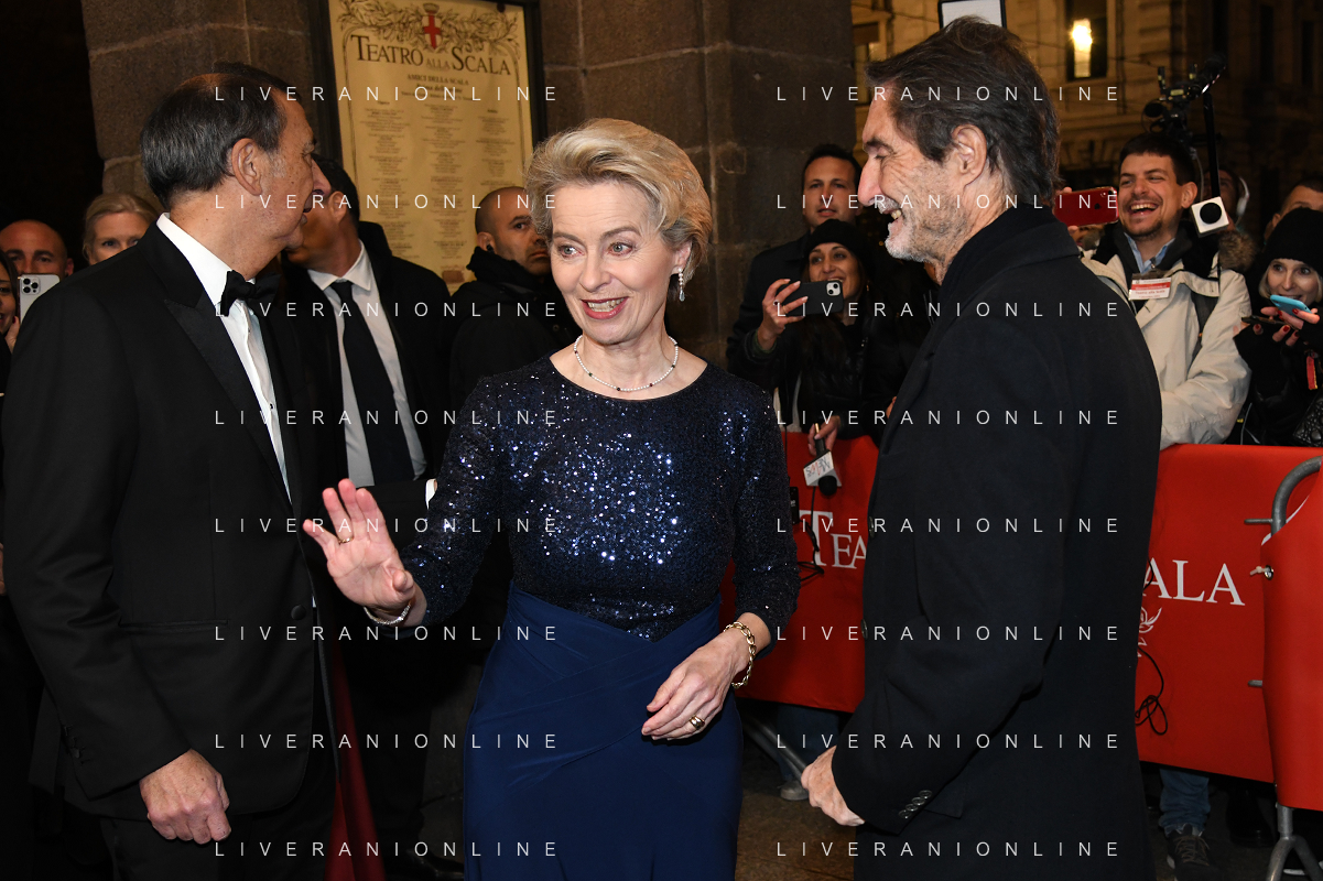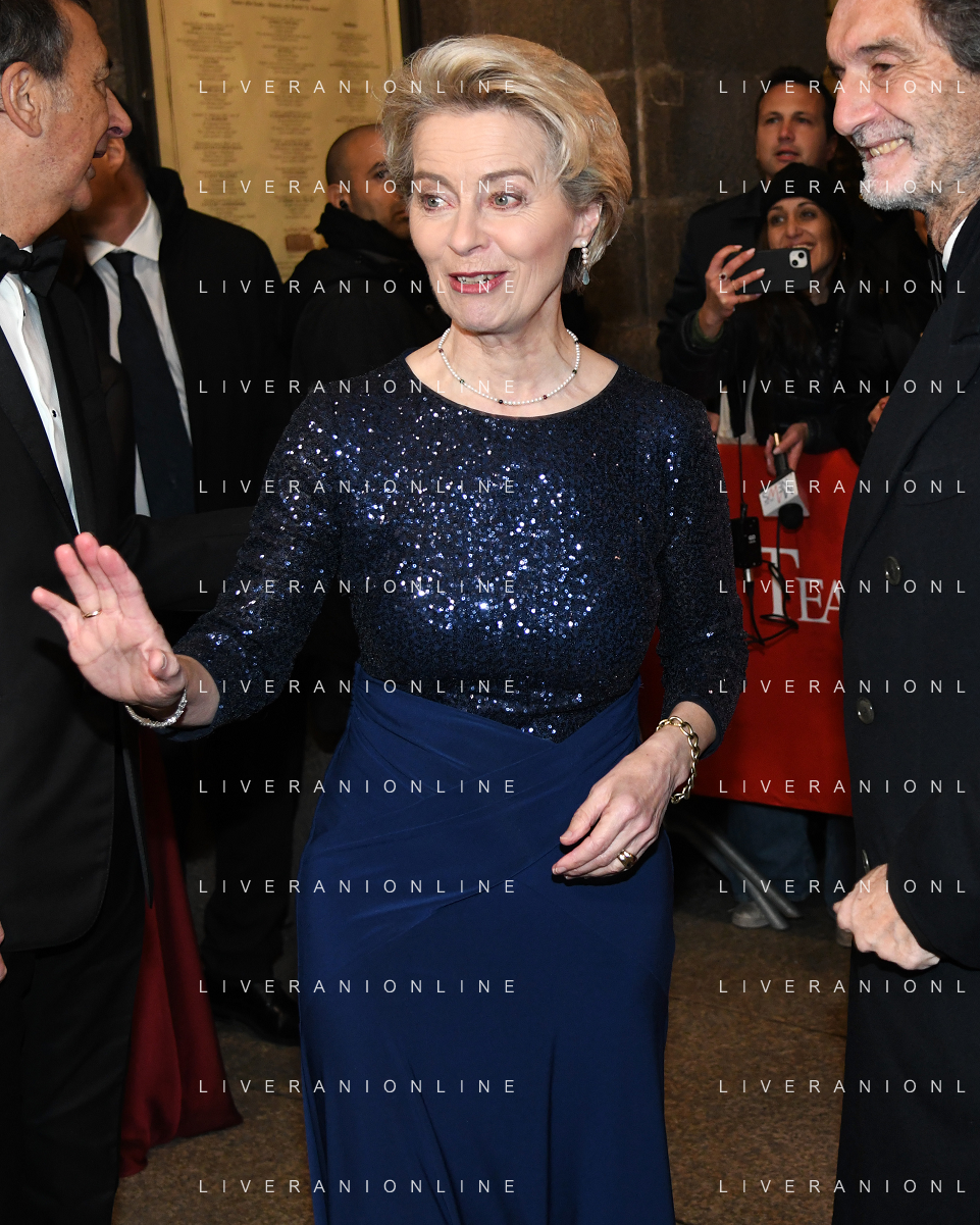 TVRG Prima alla Scala nella foto Ursula von der Leyen Presidente della Commissione europea Milano 07-12-2022 Arrivo delle personalita' per assistere alla prima del Teatro alla Scala foto Roberto Garavaglia/ag. Aldo Liverani sas / AGENZIA ALDO LIVERANI SAS