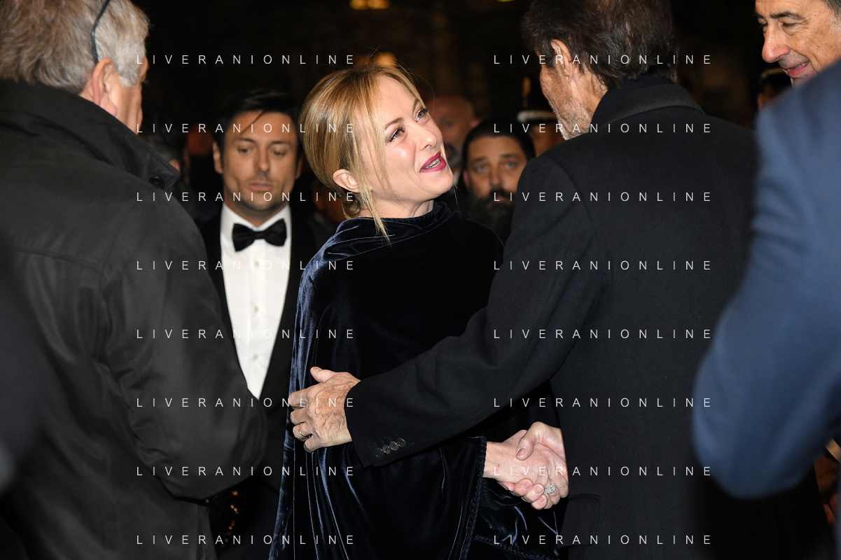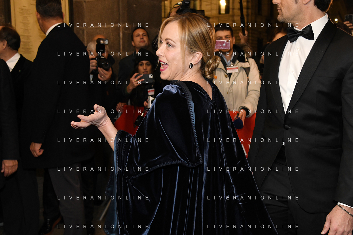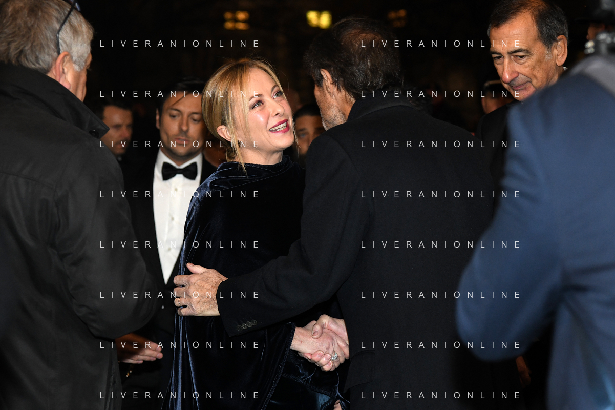 TVRG Prima alla Scala nella foto Giorgia Meloni Presidente del Consiglio Milano 07-12-2022 Arrivo delle personalita' per assistere alla prima del Teatro alla Scala foto Roberto Garavaglia/ag. Aldo Liverani sas / AGENZIA ALDO LIVERANI SAS