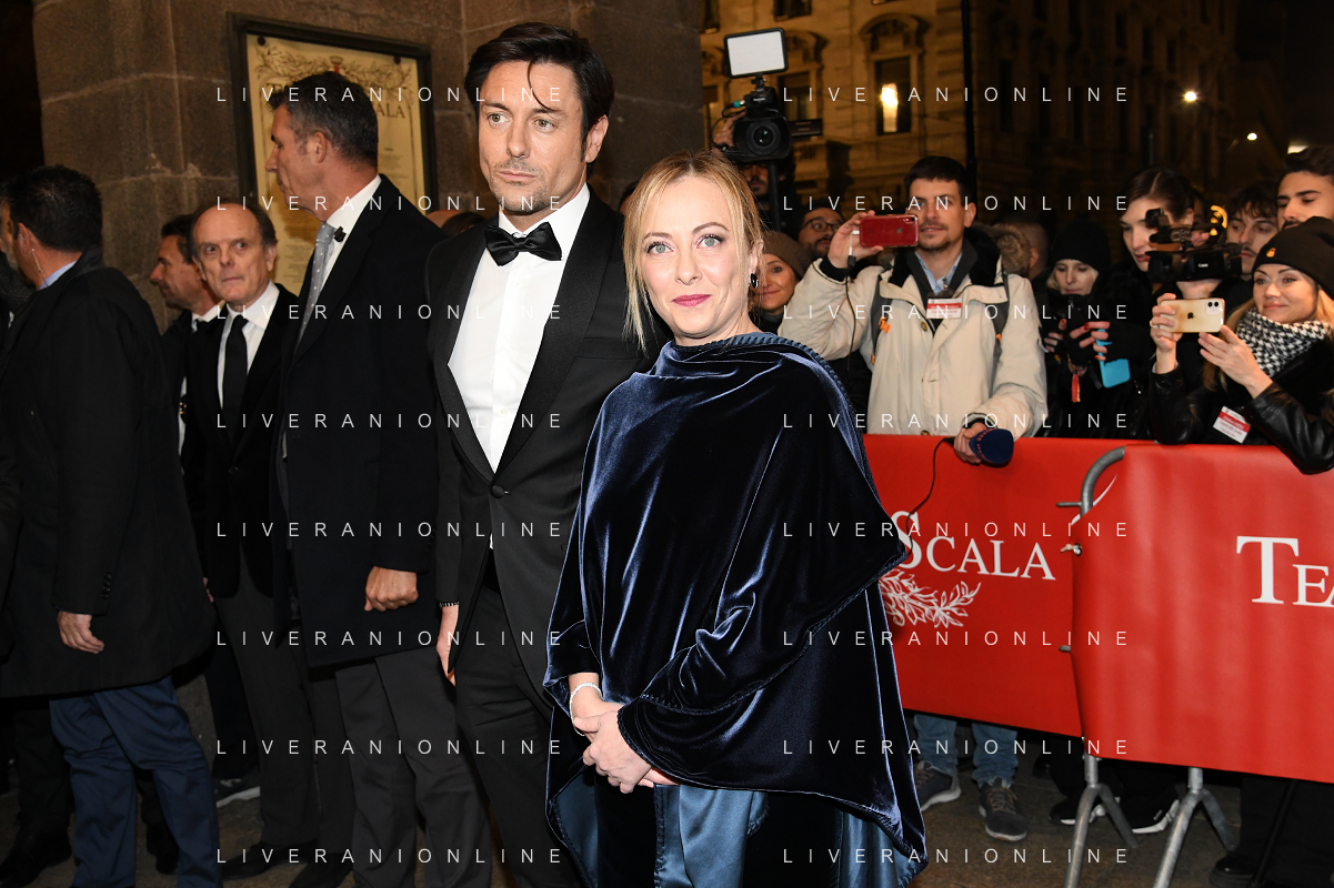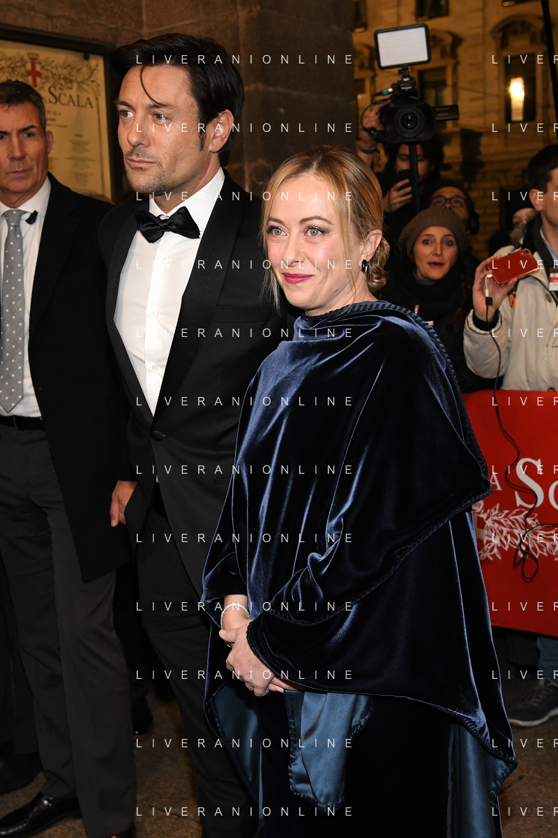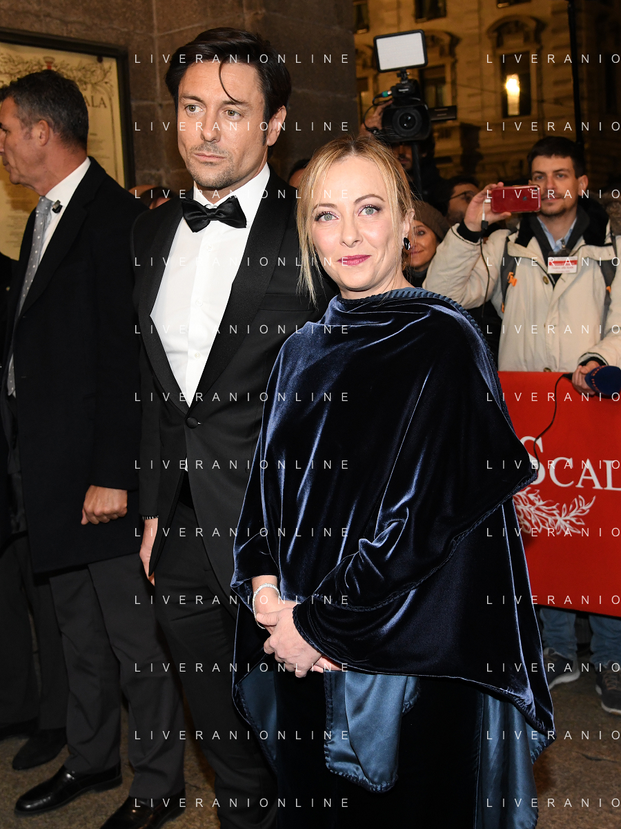 TVRG Prima alla Scala nella foto Giorgia Meloni Presidente del Consiglio con il compagno Andrea Giambruno Milano 07-12-2022 Arrivo delle personalita' per assistere alla prima del Teatro alla Scala foto Roberto Garavaglia/ag. Aldo Liverani sas / AGENZIA ALDO LIVERANI SAS