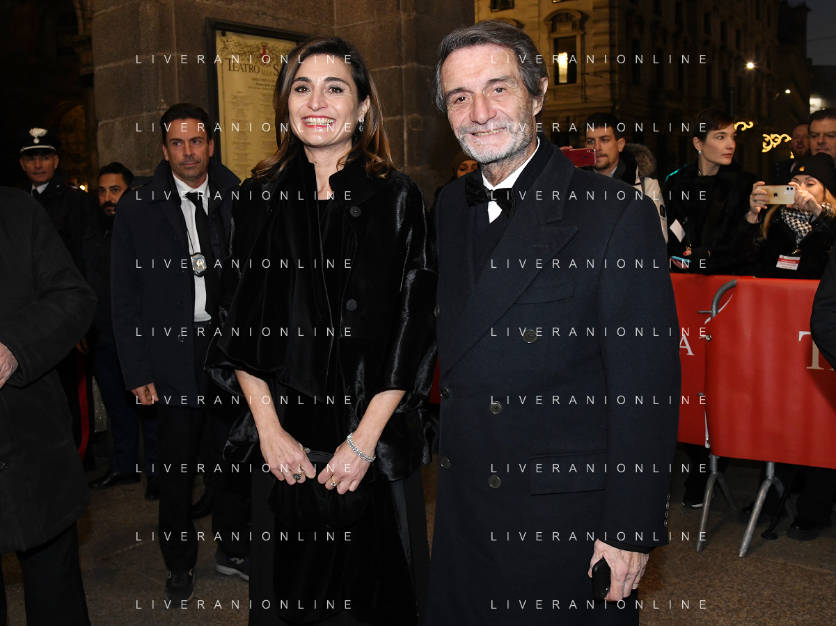 TVRG Prima alla Scala nella foto Attilio Fontana presidente di Regione Lombardia con la figlia Maria Cristina Fontana Milano 07-12-2022 Arrivo delle personalita' per assistere alla prima del Teatro alla Scala foto Roberto Garavaglia/ag. Aldo Liverani sas / AGENZIA ALDO LIVERANI SAS