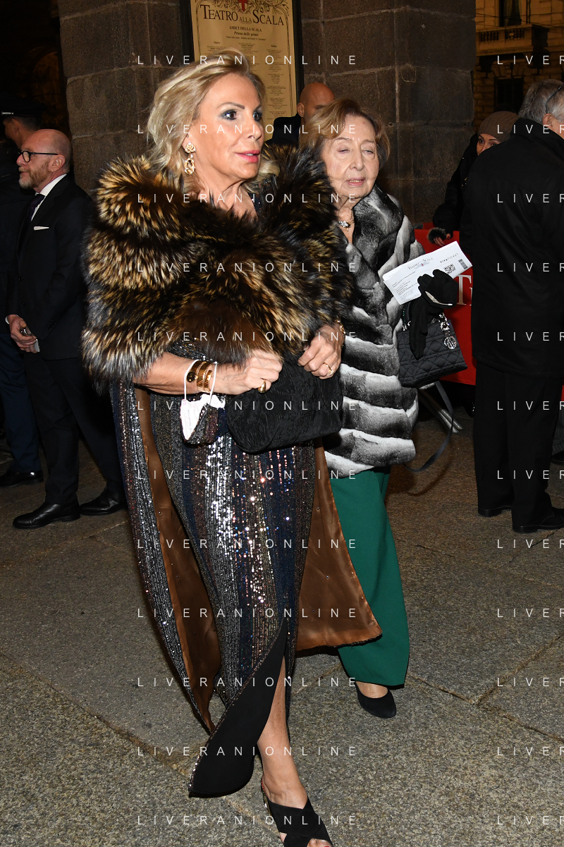 TVRG Prima alla Scala nella foto alcune ospiti entrano a teatro Milano 07-12-2022 Arrivo delle personalita' per assistere alla prima del Teatro alla Scala foto Roberto Garavaglia/ag. Aldo Liverani sas / AGENZIA ALDO LIVERANI SAS