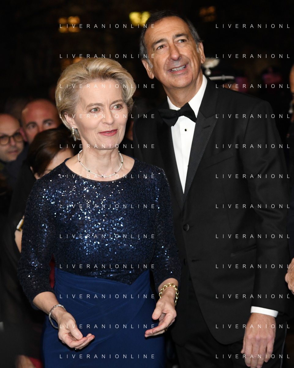 TVRG Prima alla Scala nella foto Ursula von der Leyen Presidente della Commissione europea e Giuseppe Sala sindaco di Milano Milano 07-12-2022 Arrivo delle personalita' per assistere alla prima del Teatro alla Scala foto Roberto Garavaglia/ag. Aldo Liverani sas / AGENZIA ALDO LIVERANI SAS