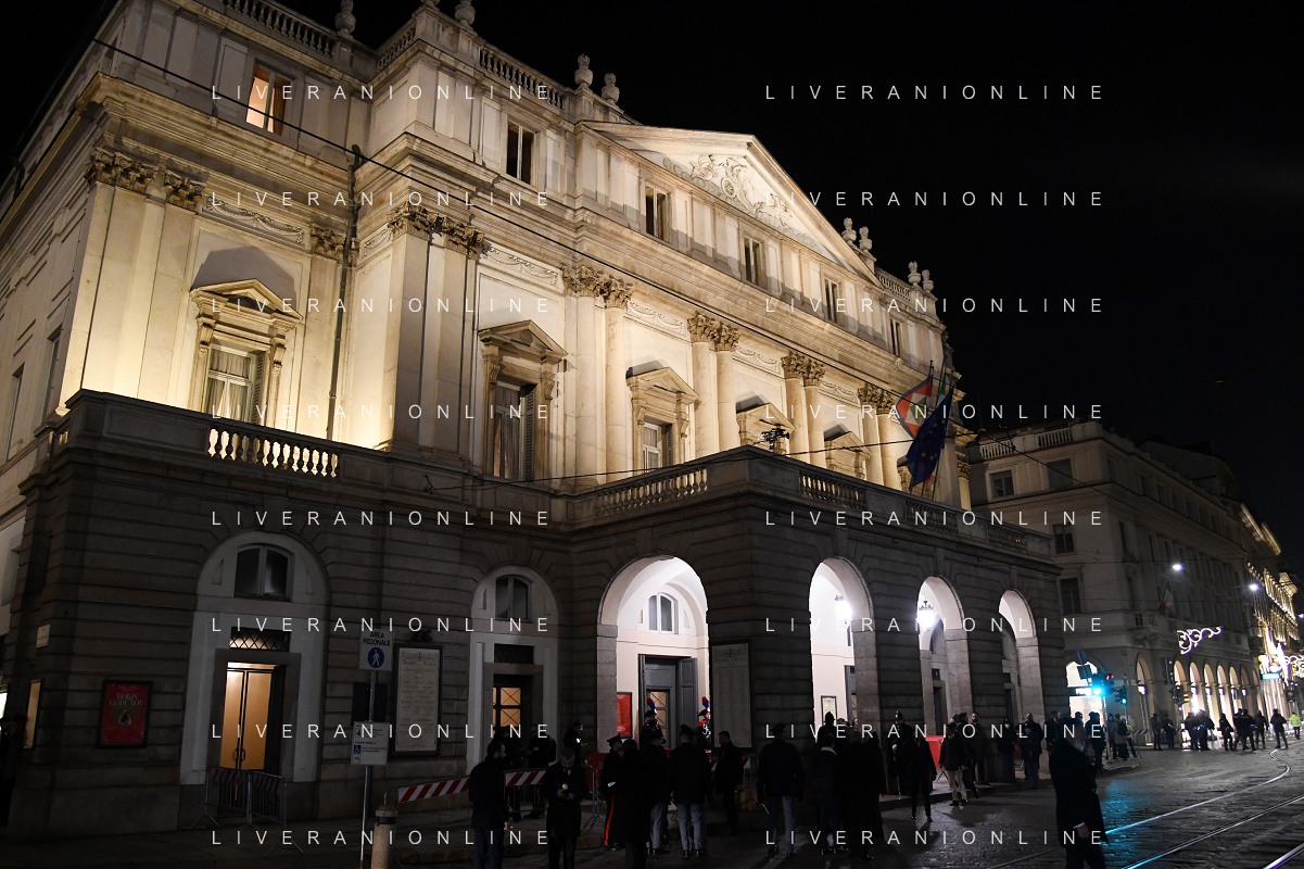TVRG Prima alla Scala nella foto Veduta esterno Teatro alla Scala Milano 07-12-2022 Arrivo delle personalita' per assistere alla prima del Teatro alla Scala foto Roberto Garavaglia/ag. Aldo Liverani sas / AGENZIA ALDO LIVERANI SAS