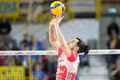 Palleggio di Antoine Brizard - Gas Sales Bluenergy Volley Piacenza durante la partita tra WithU Verona e Gas Sales BlueEnergy Piacenza Volley valida per gli ottavi di finale della DelMonte Coppa Italia di Volley 2023, Verona Italia, 29 Dicembre 2022 presso il pala AGSM-AIM di Verona. ©Roberto Tommasini /Agenzia Aldo Liverani Sas