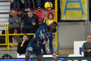 Noumory Keita - WithU Verona al servizio durante la partita tra WithU Verona e Emma Villas Aubay Siena valida per la decima giornata del campionato italiano di volley maschile serie A Superlega, Verona Italia, 4 Dicembre 2022 presso il pala AGSM-AIM di Verona. ©Roberto Tommasini /Agenzia Aldo Liverani Sas