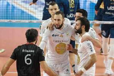 Esultanza di Nemanja Petric - Emma Villas Aubay Siena durante la partita tra WithU Verona e Emma Villas Aubay Siena valida per la decima giornata del campionato italiano di volley maschile serie A Superlega, Verona Italia, 4 Dicembre 2022 presso il pala AGSM-AIM di Verona. ©Roberto Tommasini /Agenzia Aldo Liverani Sas