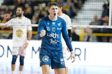 Esultanza di Luca Spirito - WithU Verona durante la partita tra WithU Verona e Emma Villas Aubay Siena valida per la decima giornata del campionato italiano di volley maschile serie A Superlega, Verona Italia, 4 Dicembre 2022 presso il pala AGSM-AIM di Verona. ©Roberto Tommasini /Agenzia Aldo Liverani Sas