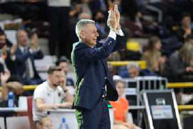Esultanza di Radostin Stoytchev - Head Coach of WithU Verona durante la partita tra WithU Verona e Emma Villas Aubay Siena valida per la decima giornata del campionato italiano di volley maschile serie A Superlega, Verona Italia, 4 Dicembre 2022 presso il pala AGSM-AIM di Verona. ©Roberto Tommasini /Agenzia Aldo Liverani Sas