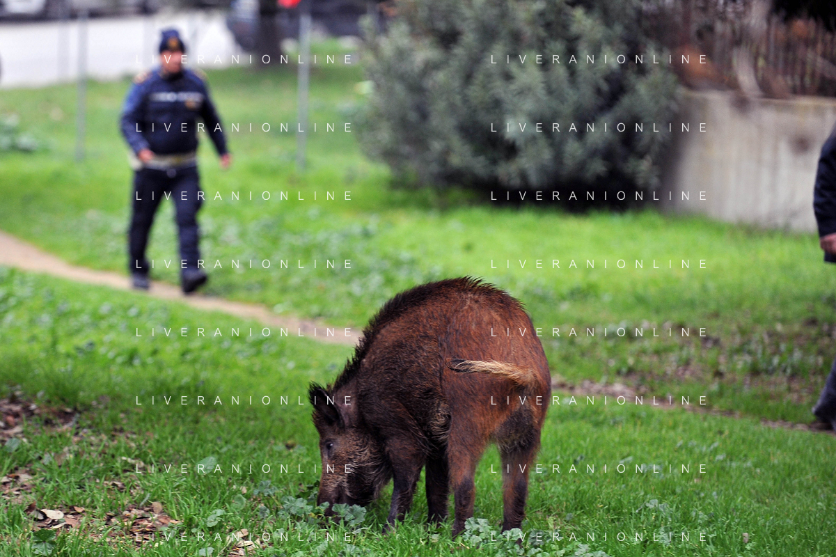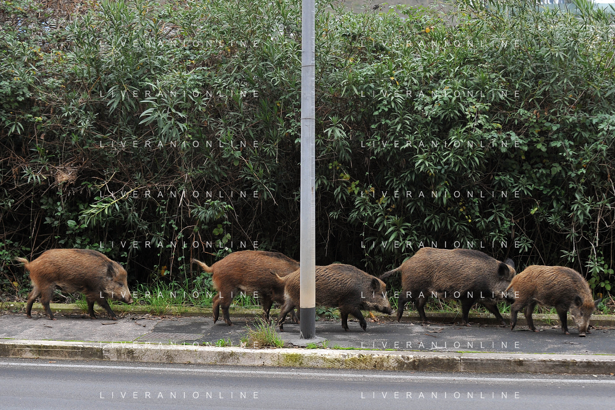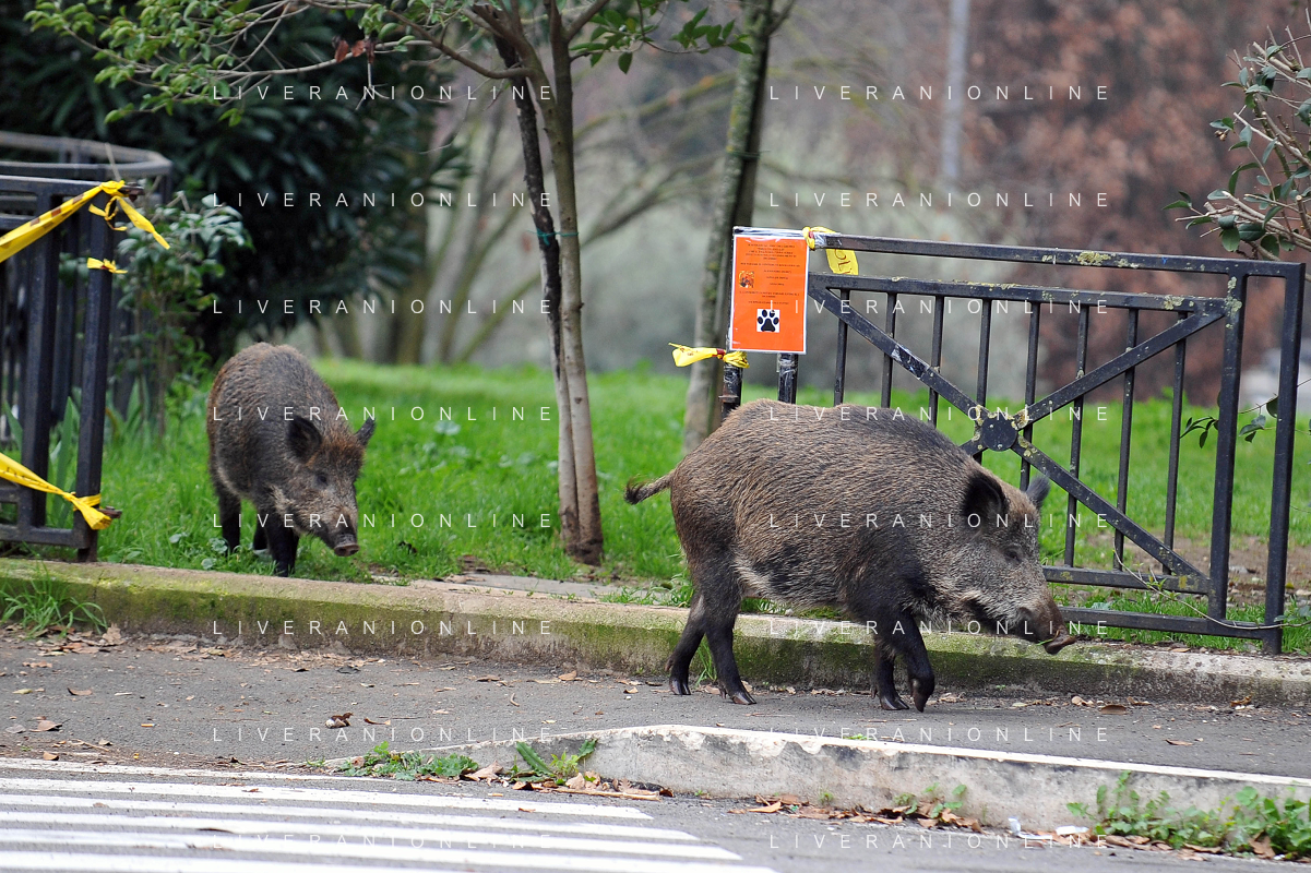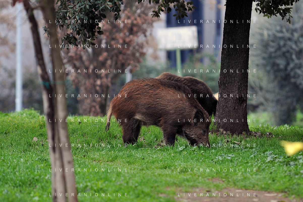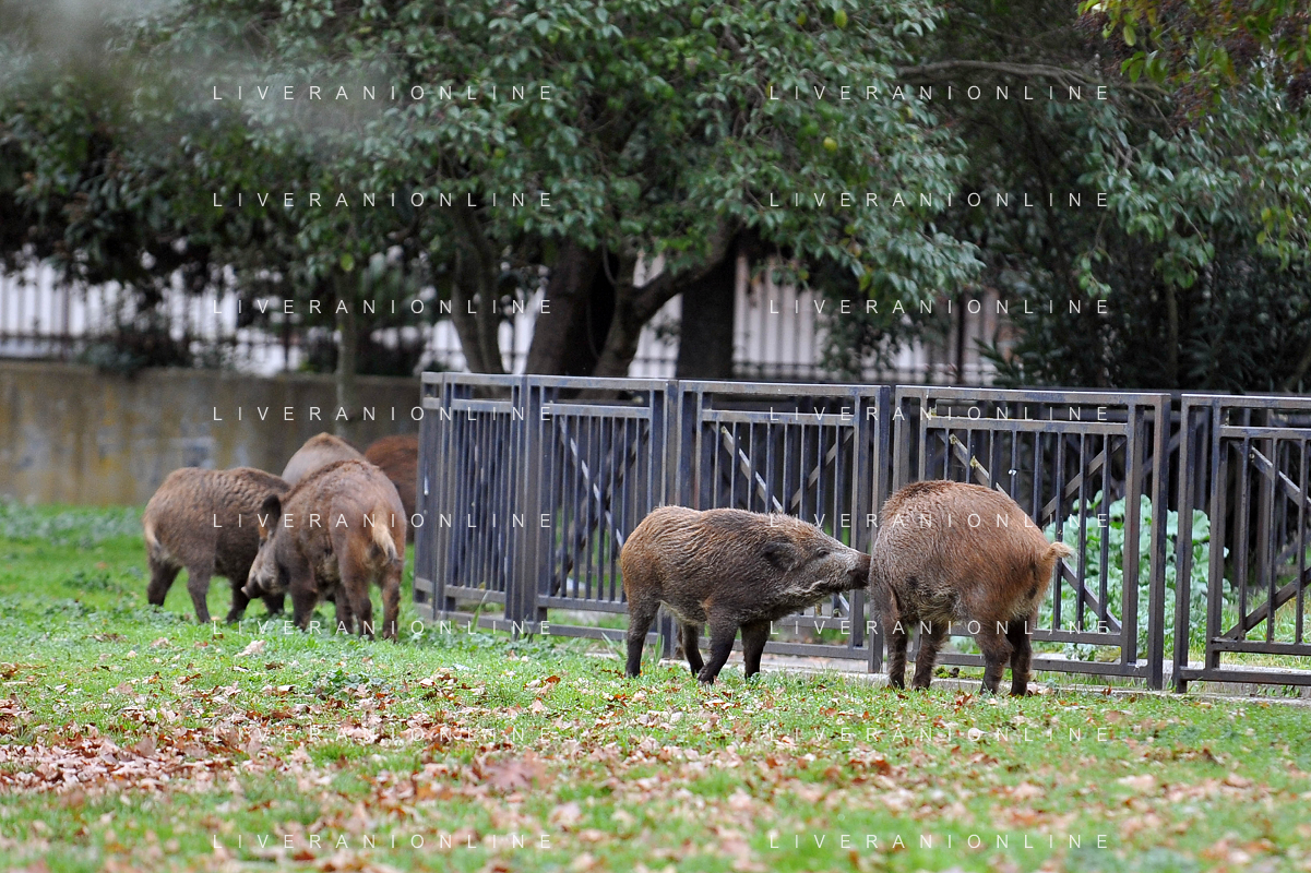 Cinghiali a Roma 02-01-2023 nella foto Cinghiali in città FOTO FEDERICO GAETANO-AG ALDO LIVERANI SAS